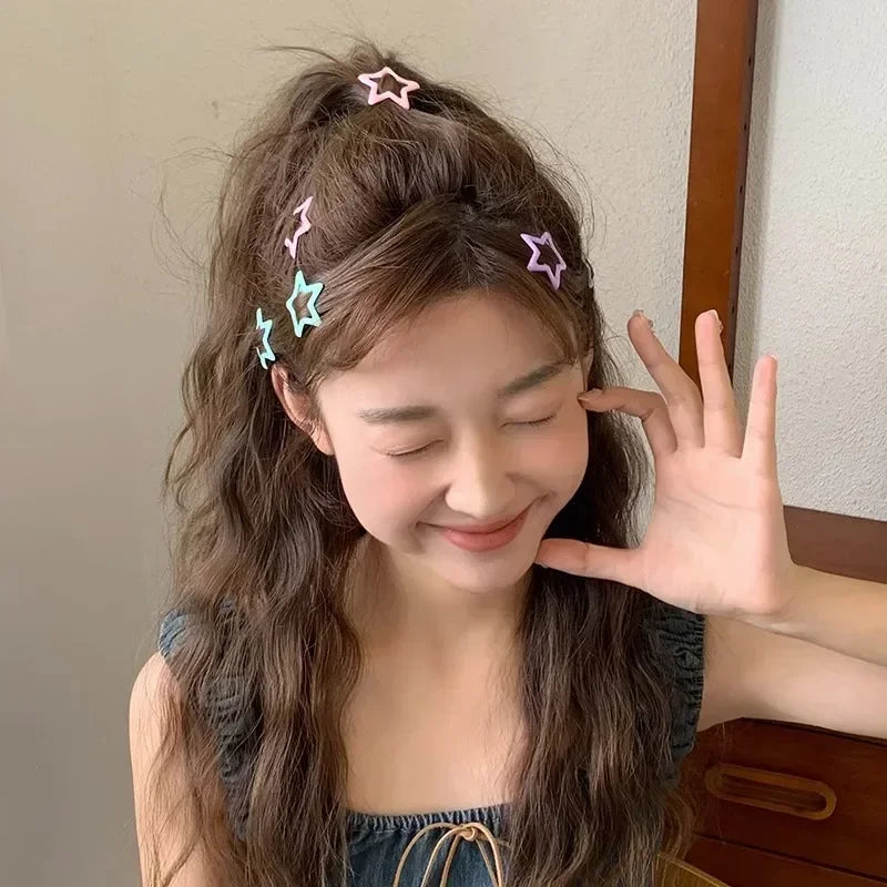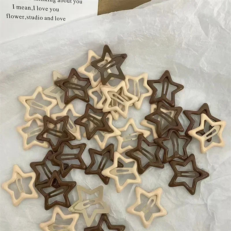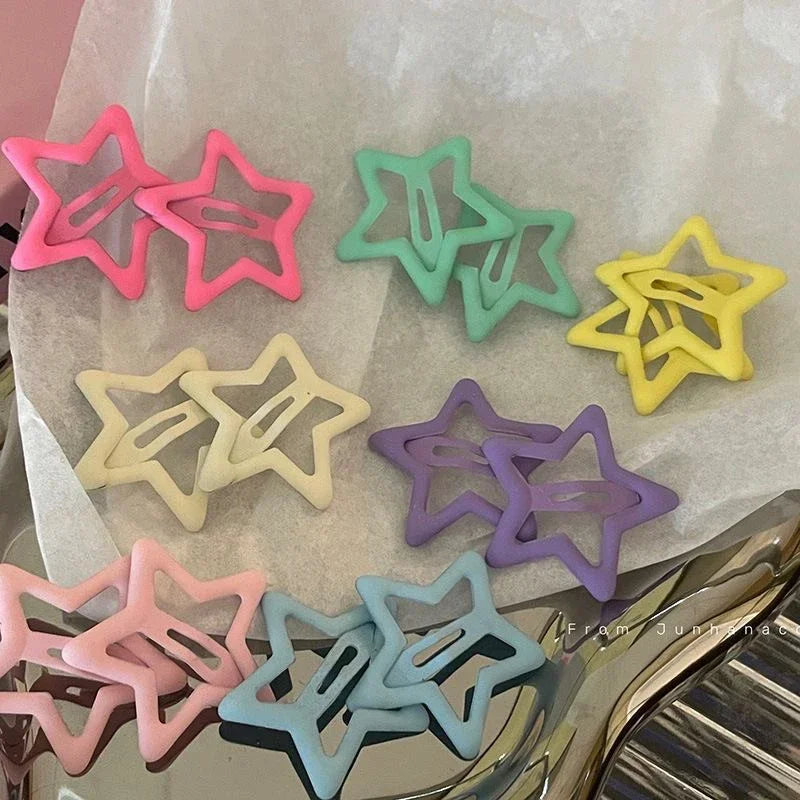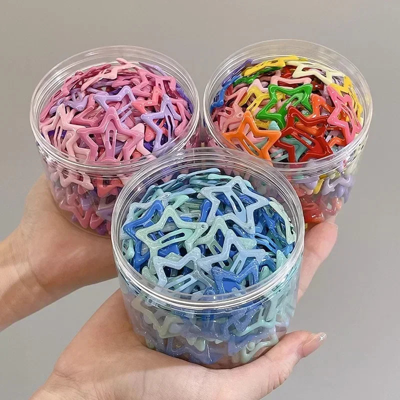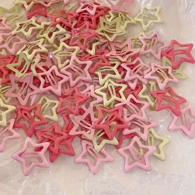 10/50pcs Colorful Kawaii Star Barrettes Y2K Sweet Girls BB Solid Star Hairclips Metal Snap Clip, Hair Jewelry Gifts