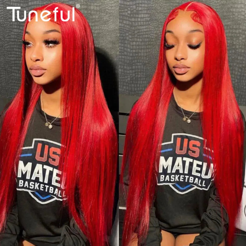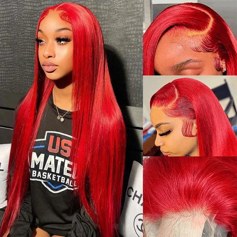10A 13x6 Hot Christmas Red Colored Human Hair Wigs Tuneful HD Lace Front Human Hair Wigs Brazilian Straight HD Lace Frontal Wigs