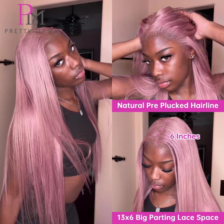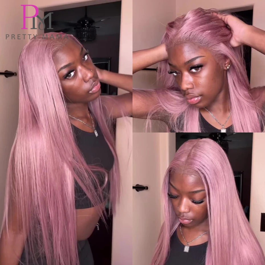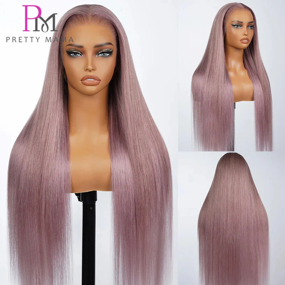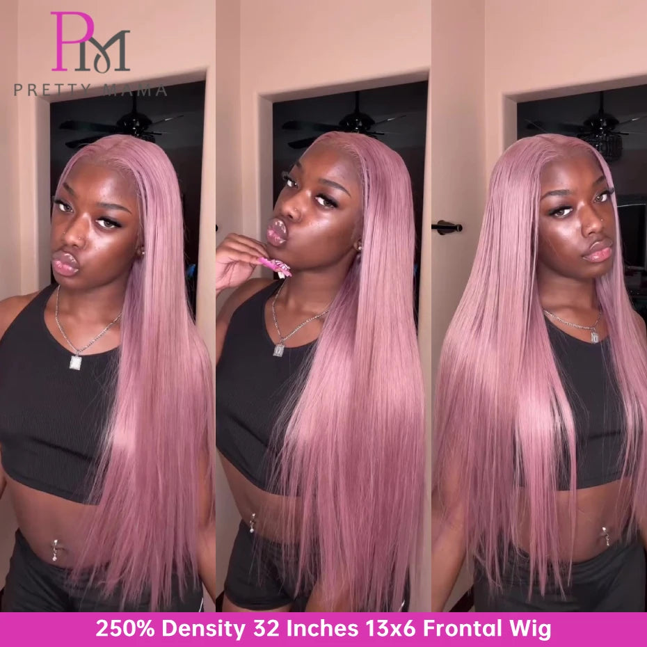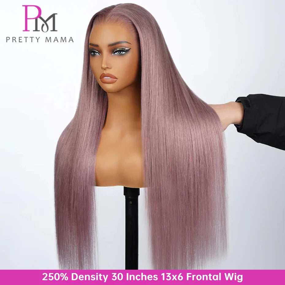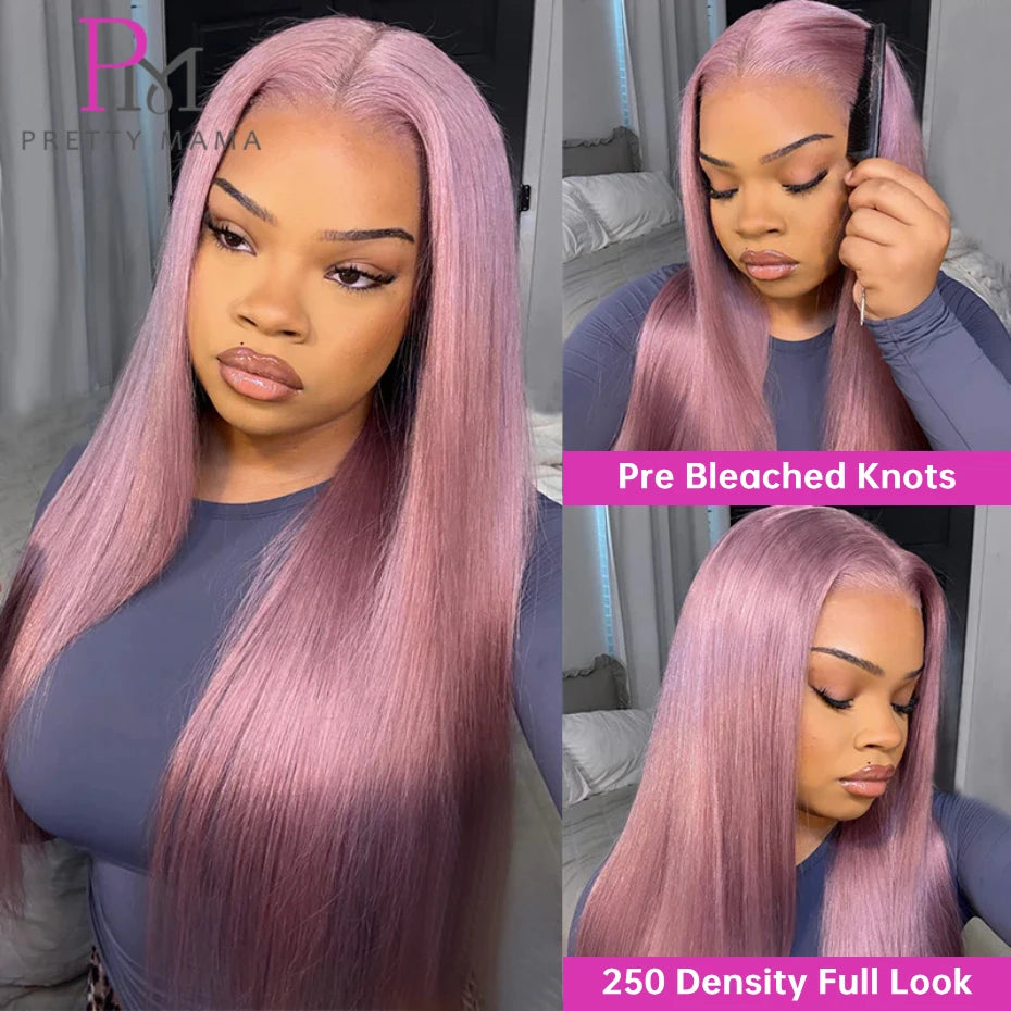 13x6 Ash Purple Pink Human Hair Wig 250 Density Lace Frontal Wig Bone Straight Lace Front Wig Human Hair Rose Gold Colored Wigs
