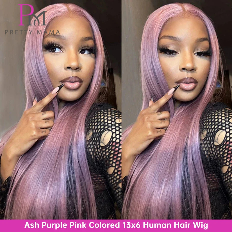 Ash Purple Pink Colored 13x6 Frontal Wig