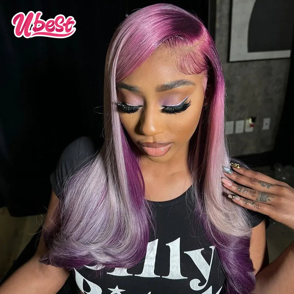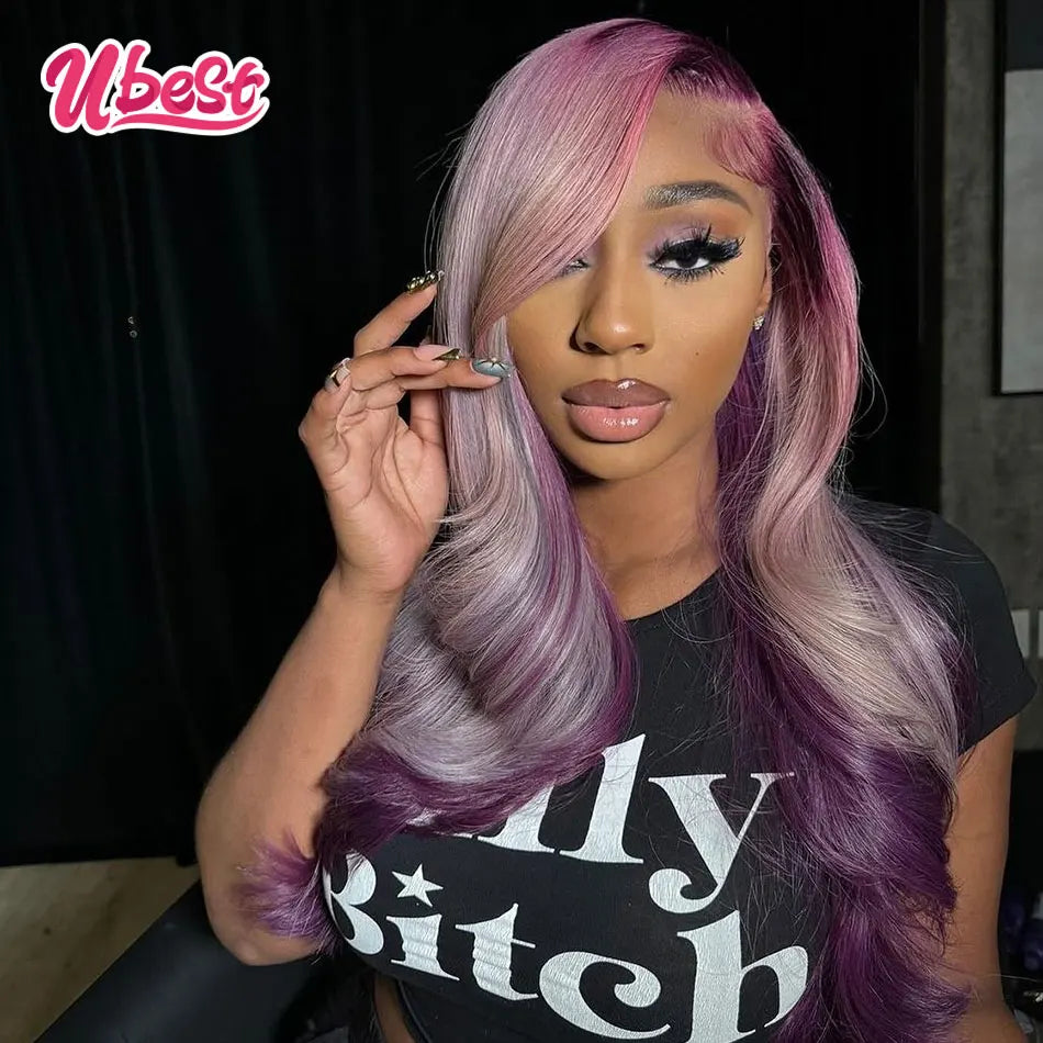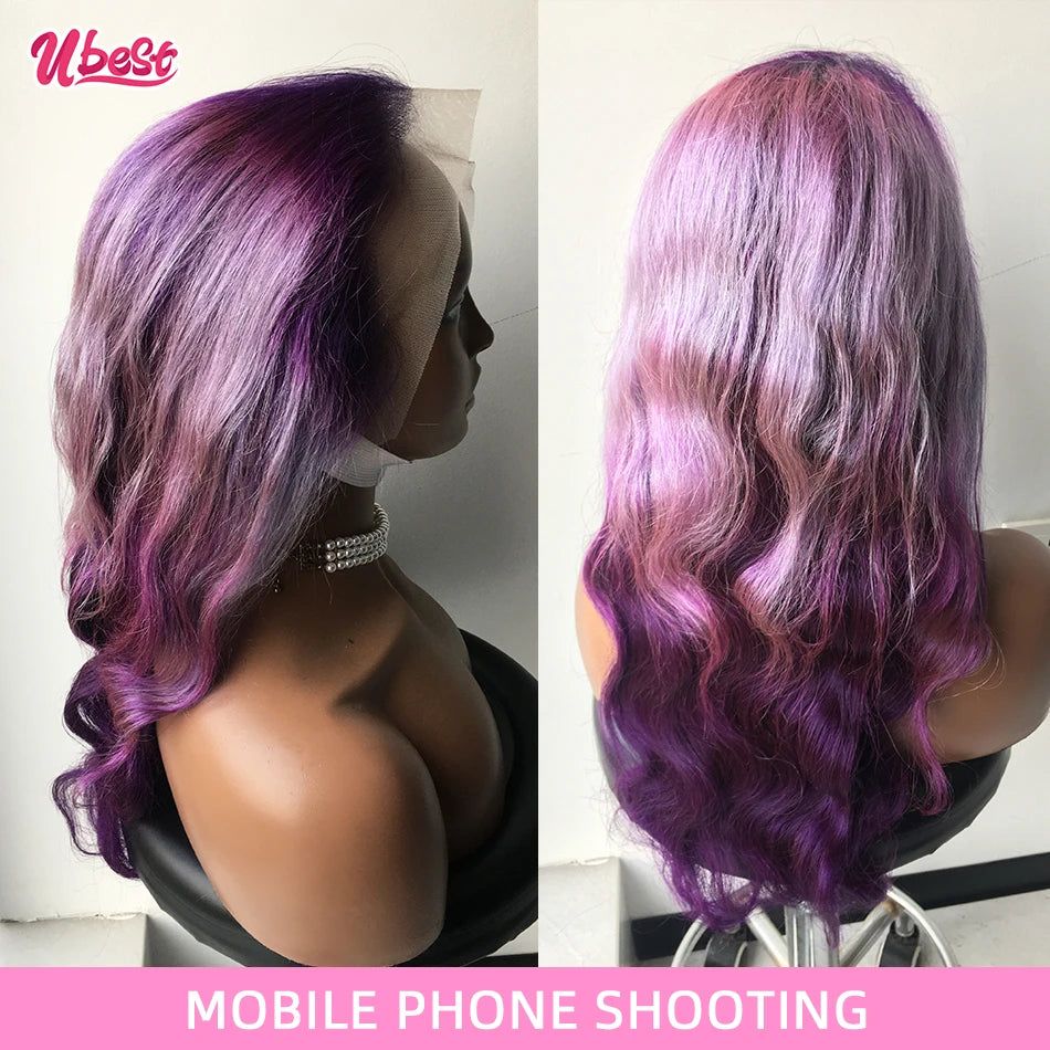 13x6 Ombre Purple 613 Color Body Wave Lace Front Human Hair Wigs 180% Brazilian Body Wave Transparen Lace Frontal Wigs For Women