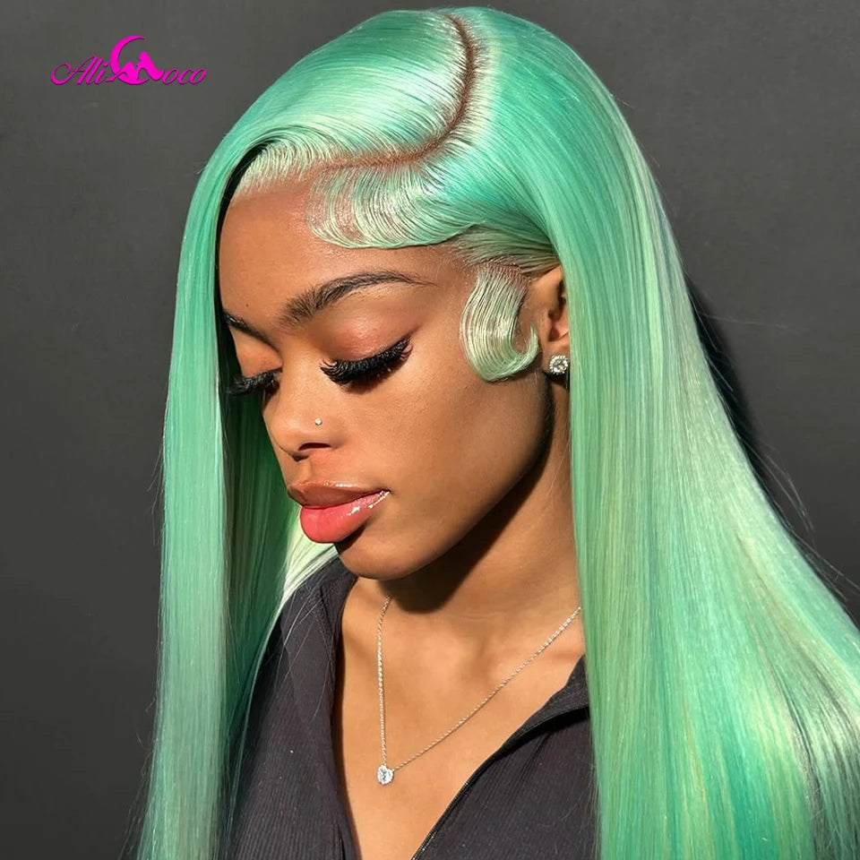 13x6 Straight 613 Mint Green Lace Frontal Human Hair Wig 180 Density Brazilian Color 13x4 Lace Front Wigs For Women Pre Plucked