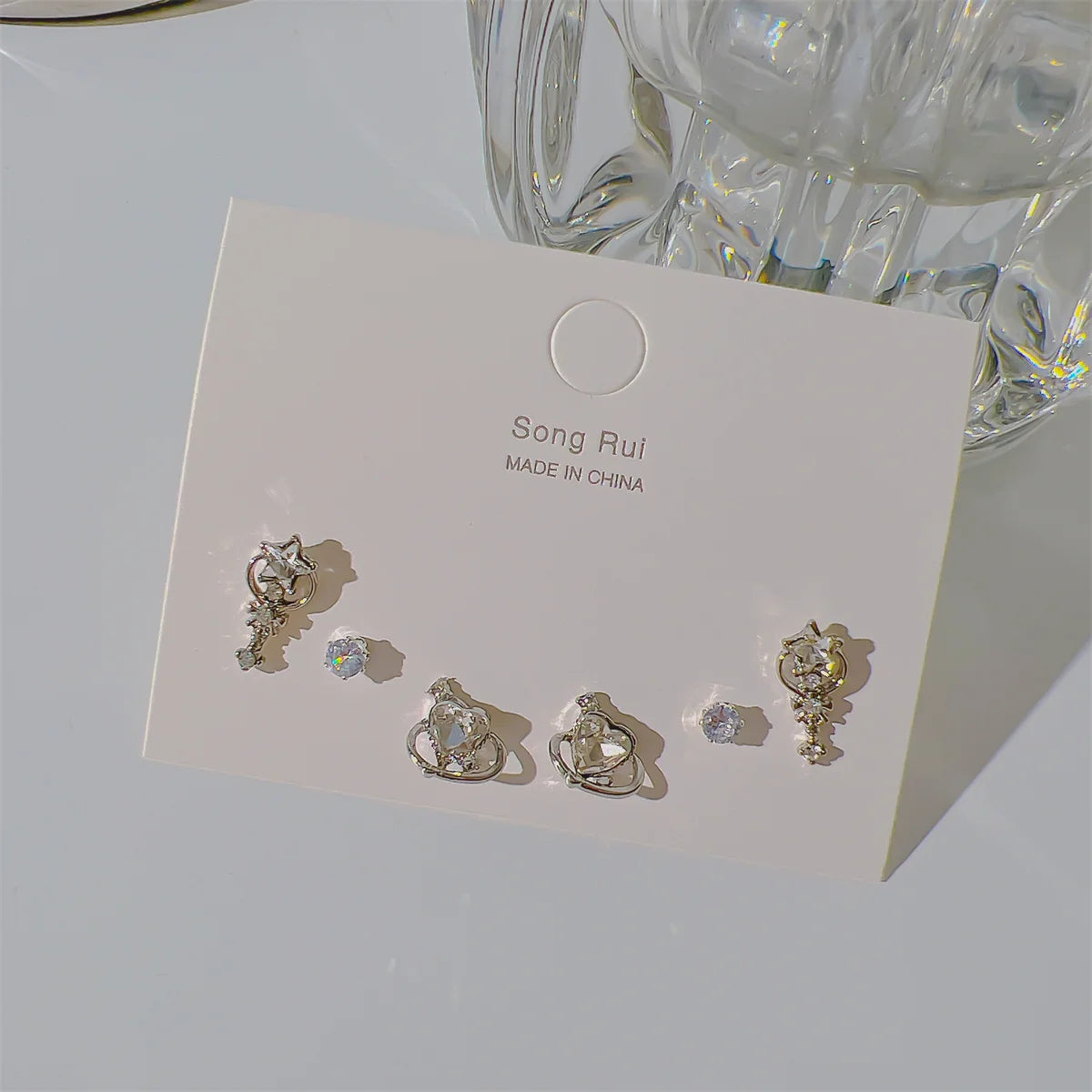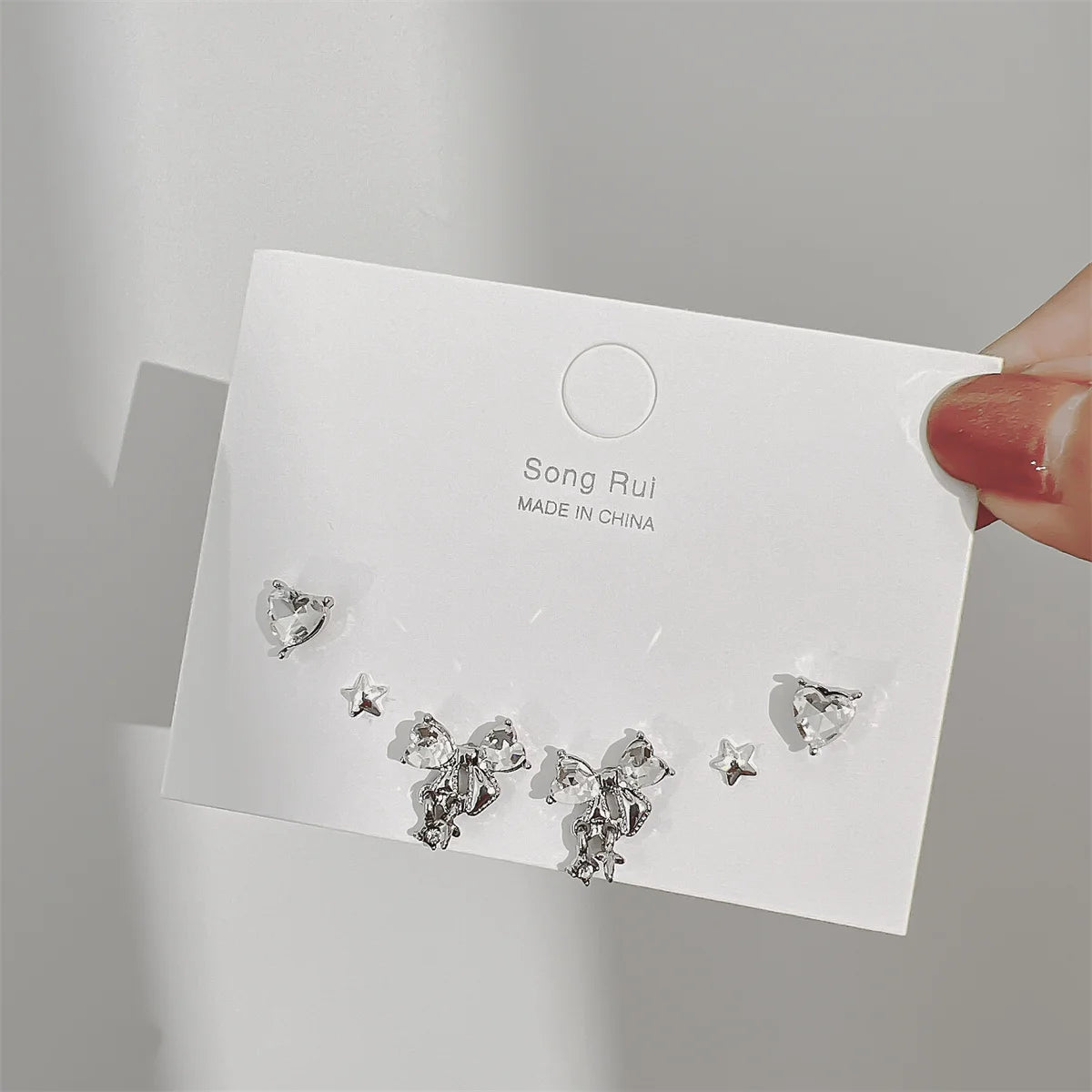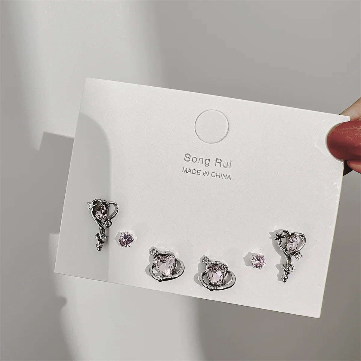 17KM INS Y2K Pink Heart Stud Earrings for Women Girls Korean Bow Dangle Earring Set Sweet Crystal Drop Earring Fashion Jewelry