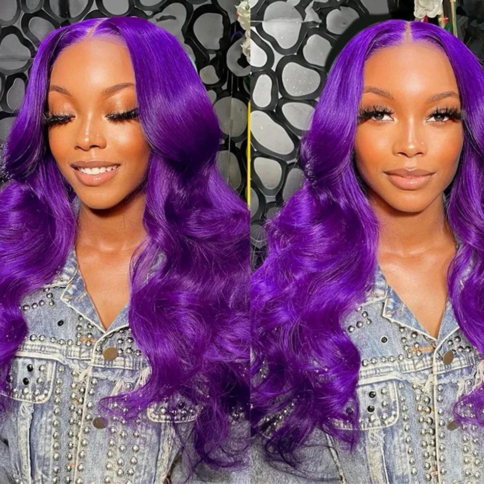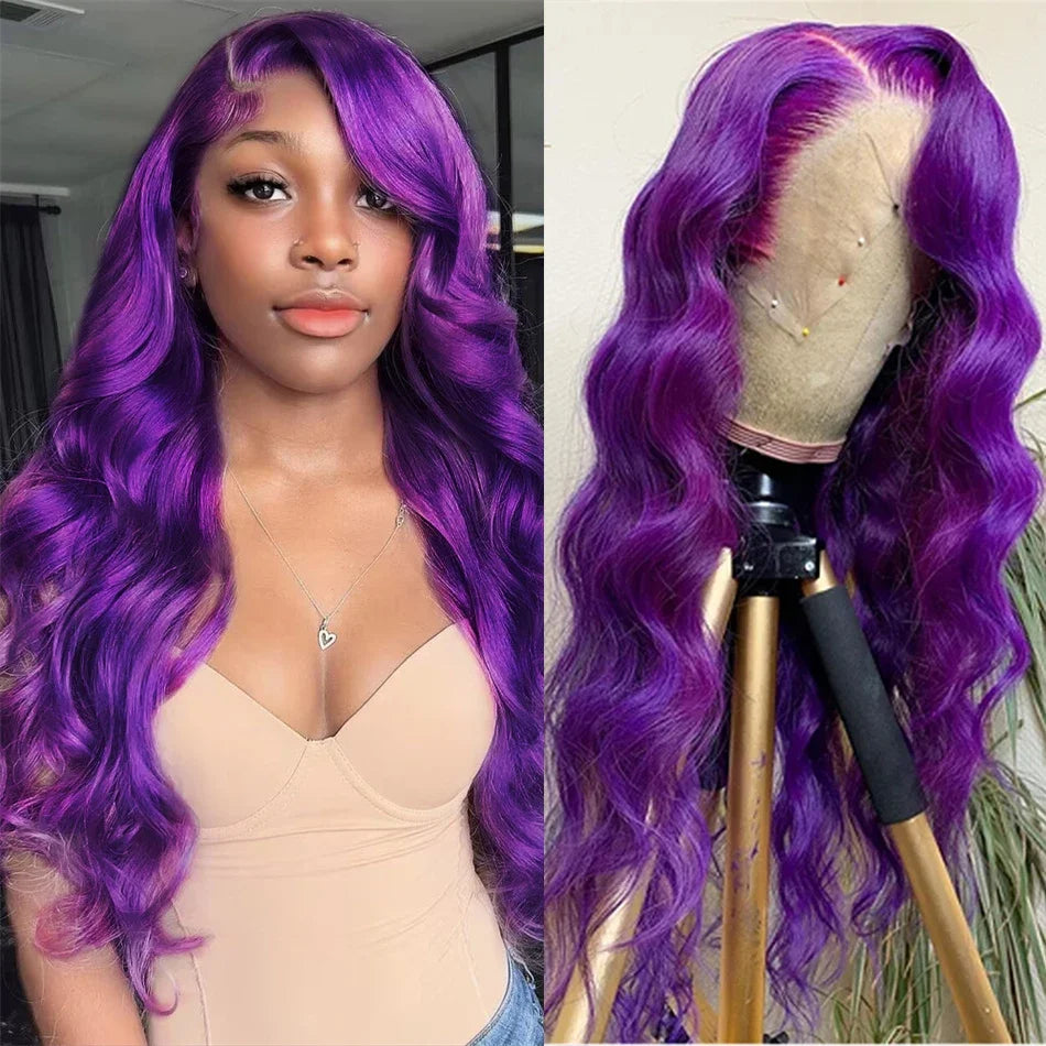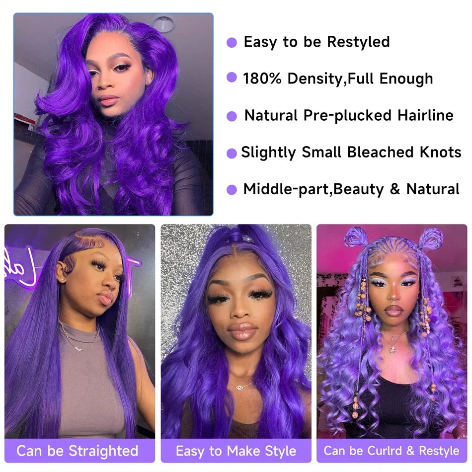 180% Purple Colored Lace Front Wig Transparent 13x4 Lace Front Human Hair Wigs Pre Plucked Body Wave Lace Frontal Wig For Woman
