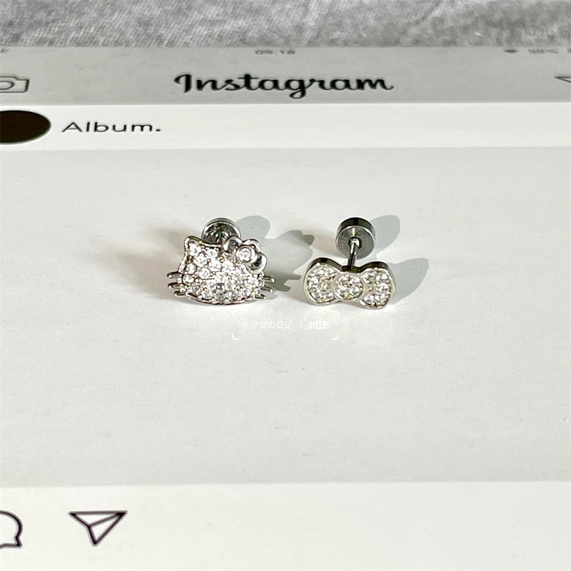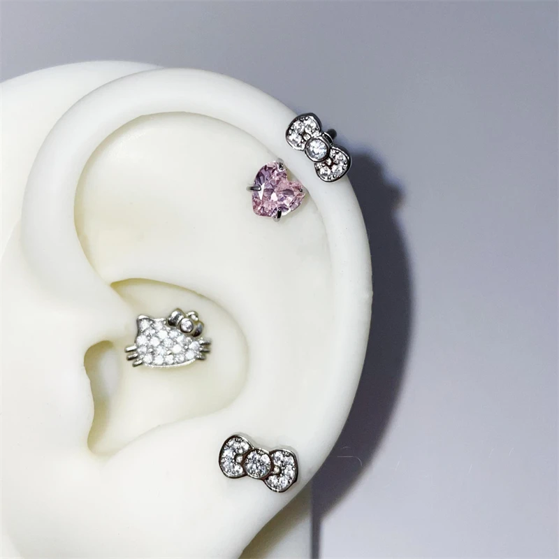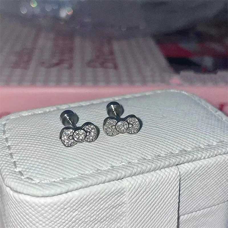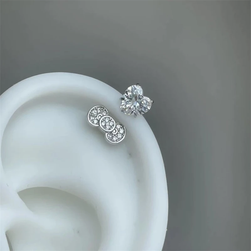 1PCS 1.2mm Bowknot Ring Stainless Steel Ear Bone Nail Shiny Screws Earrings Y2K Hottie Cochlea Piercing Body Jewelry