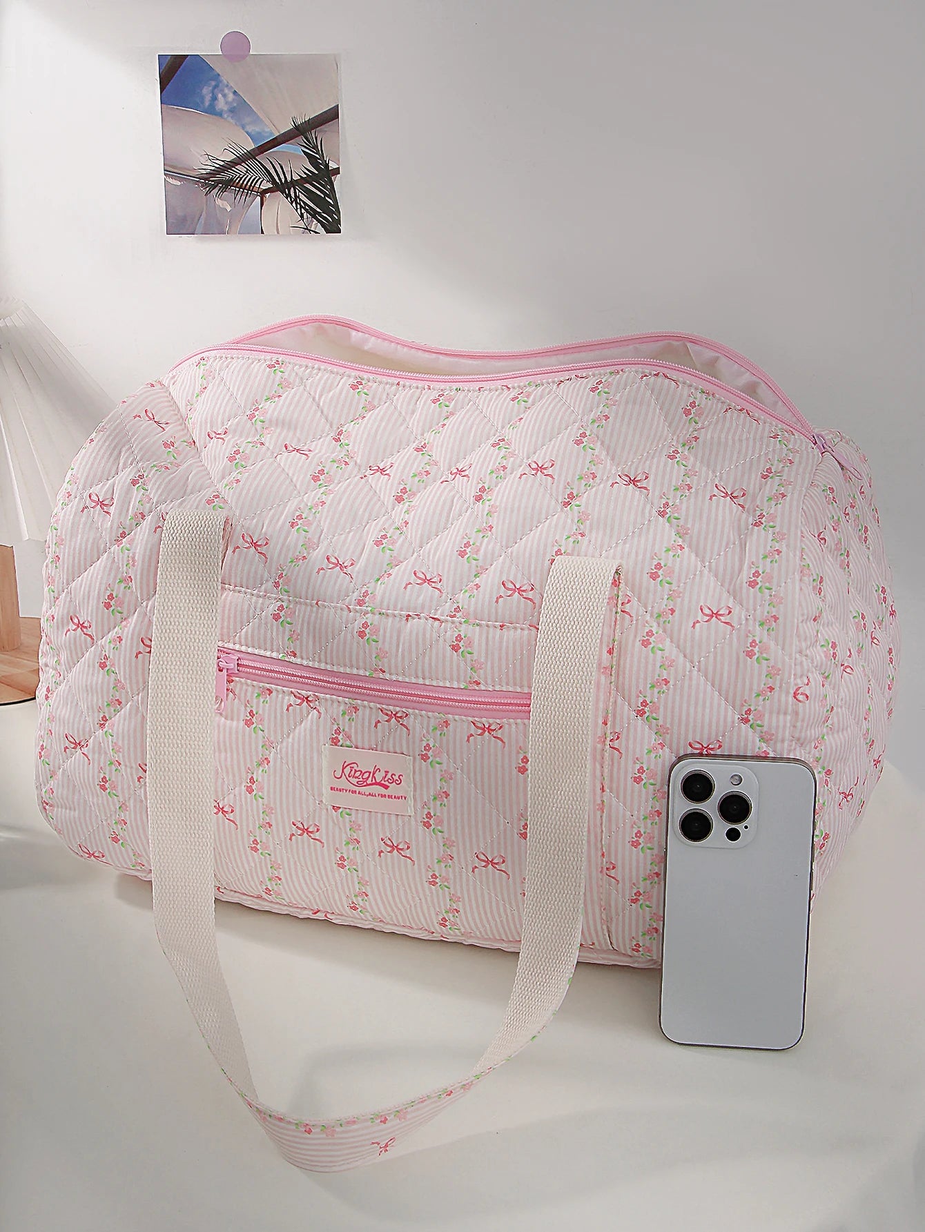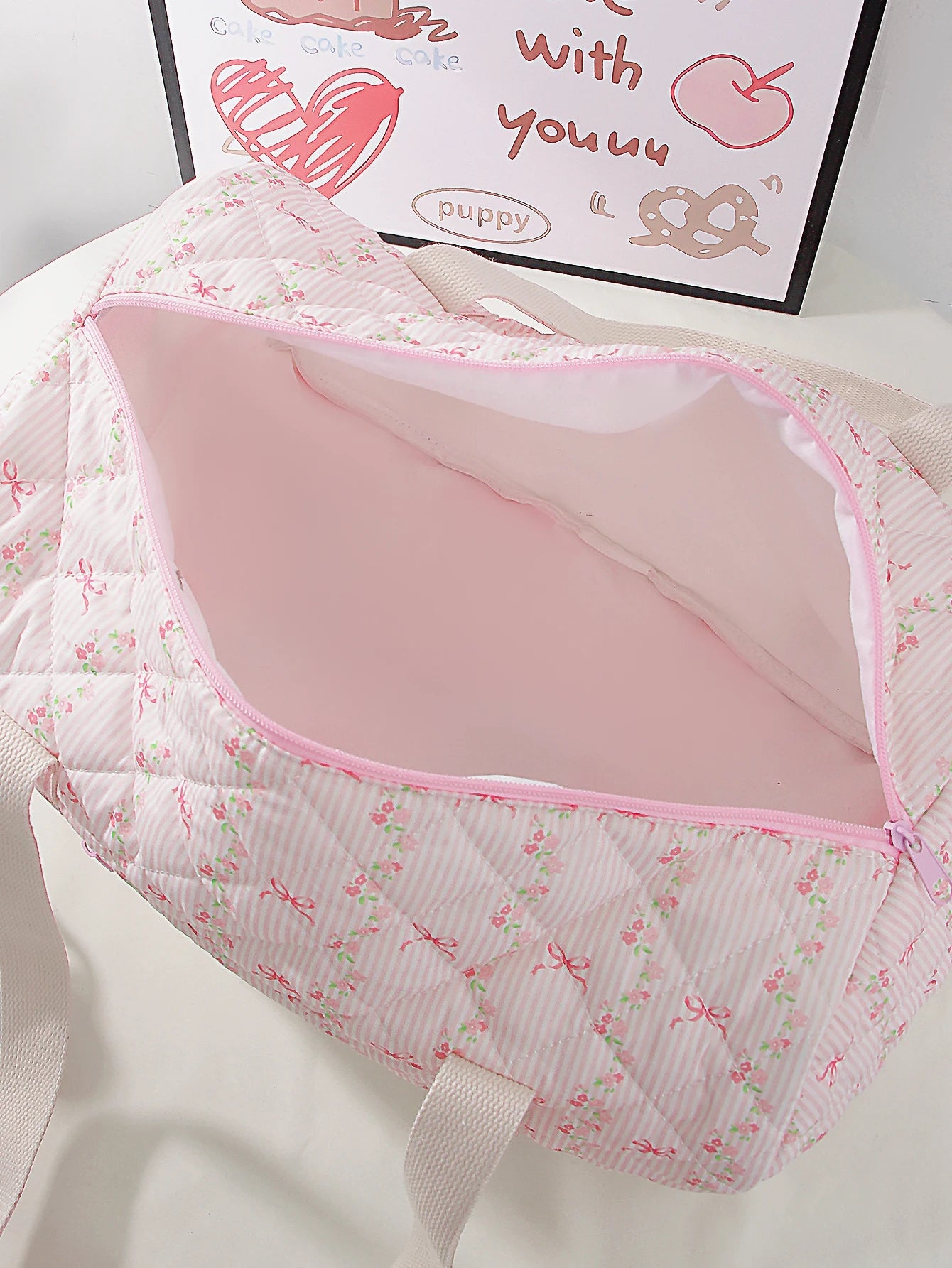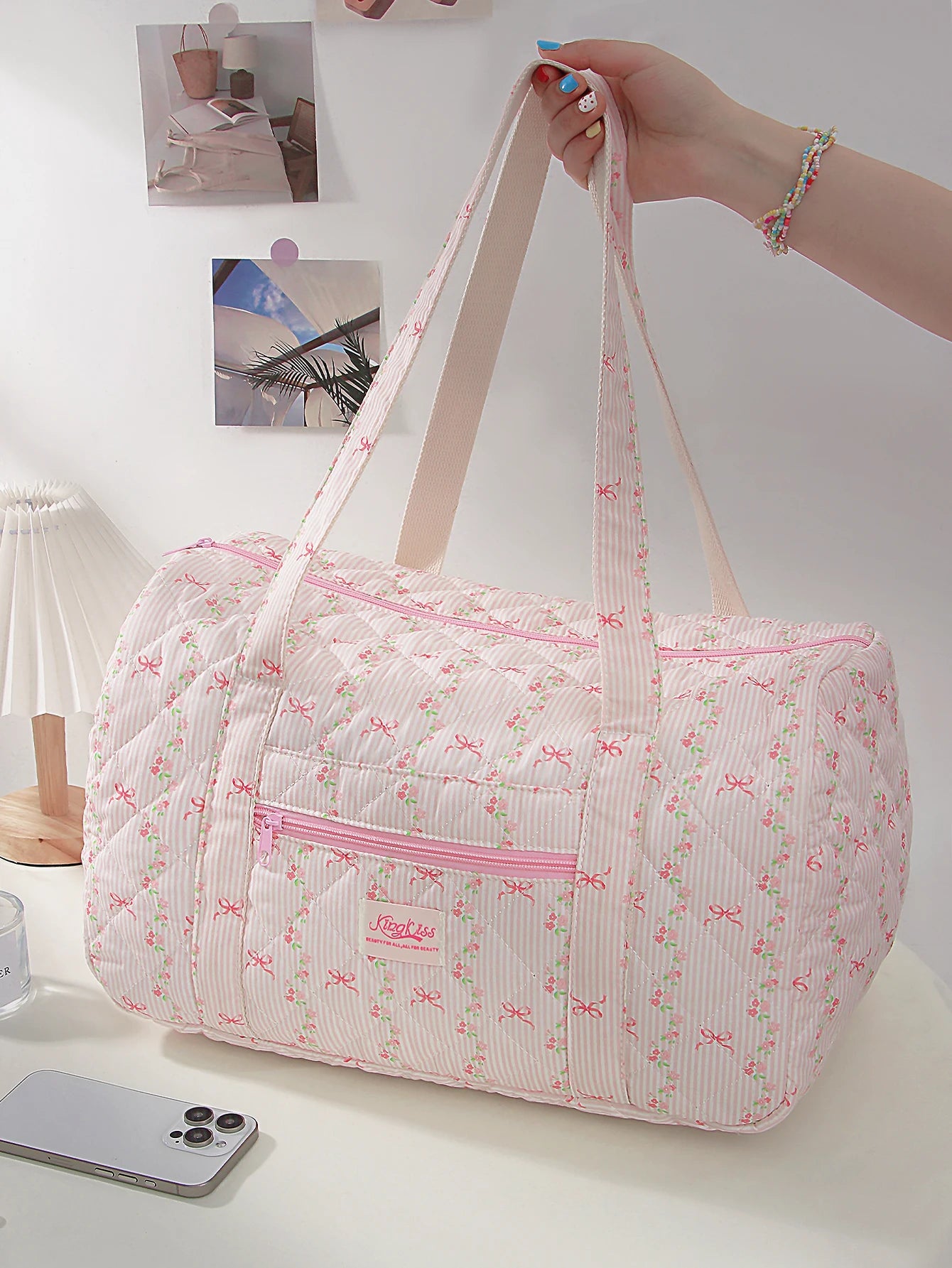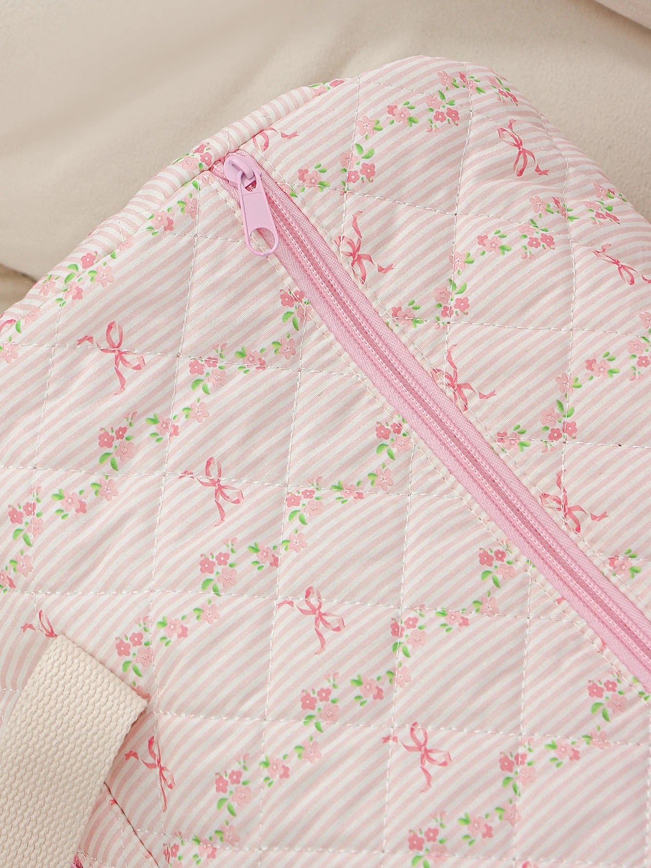 1pcs pink striped travel makeup bag,fashionable and casual portable makeup bag, large capacity cute travel toiletry bag