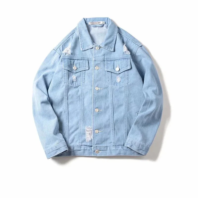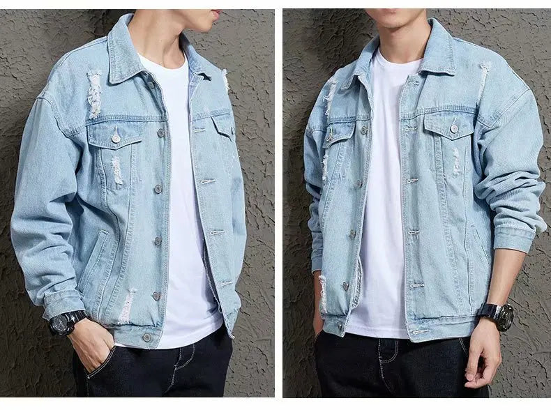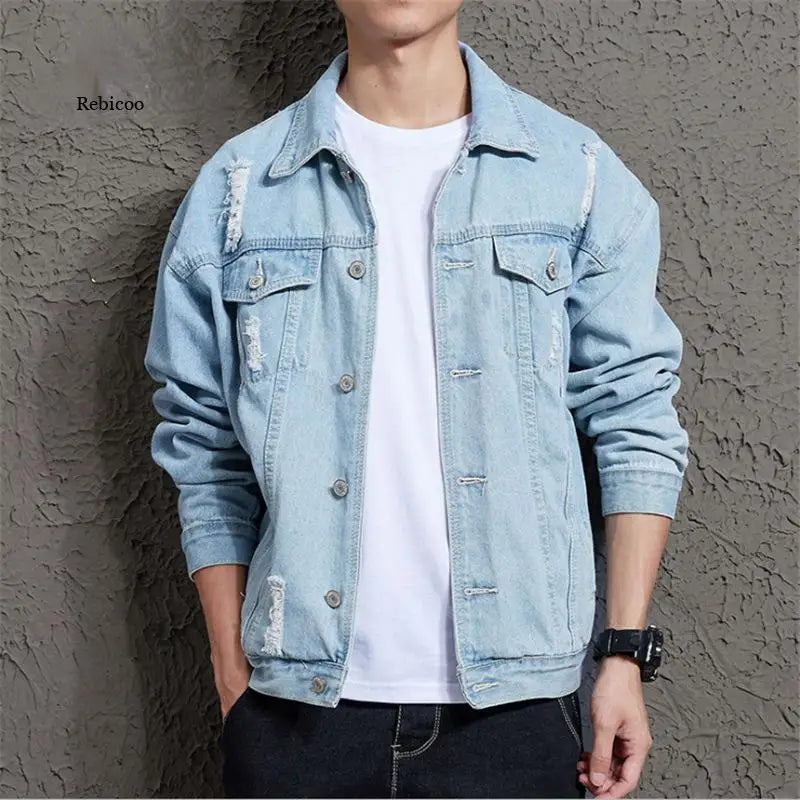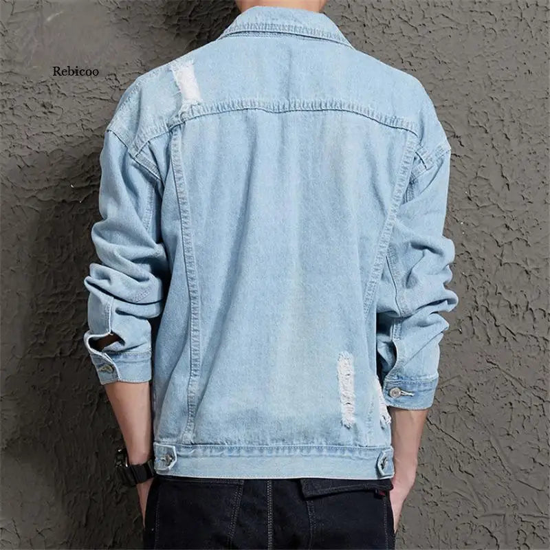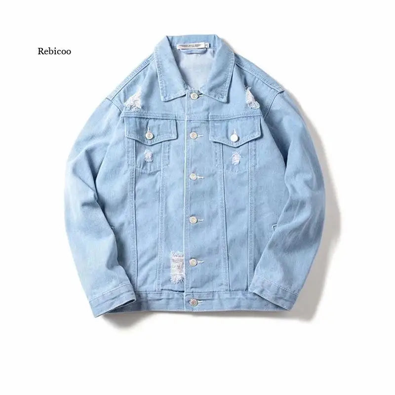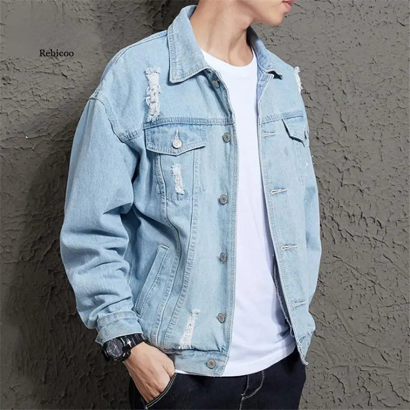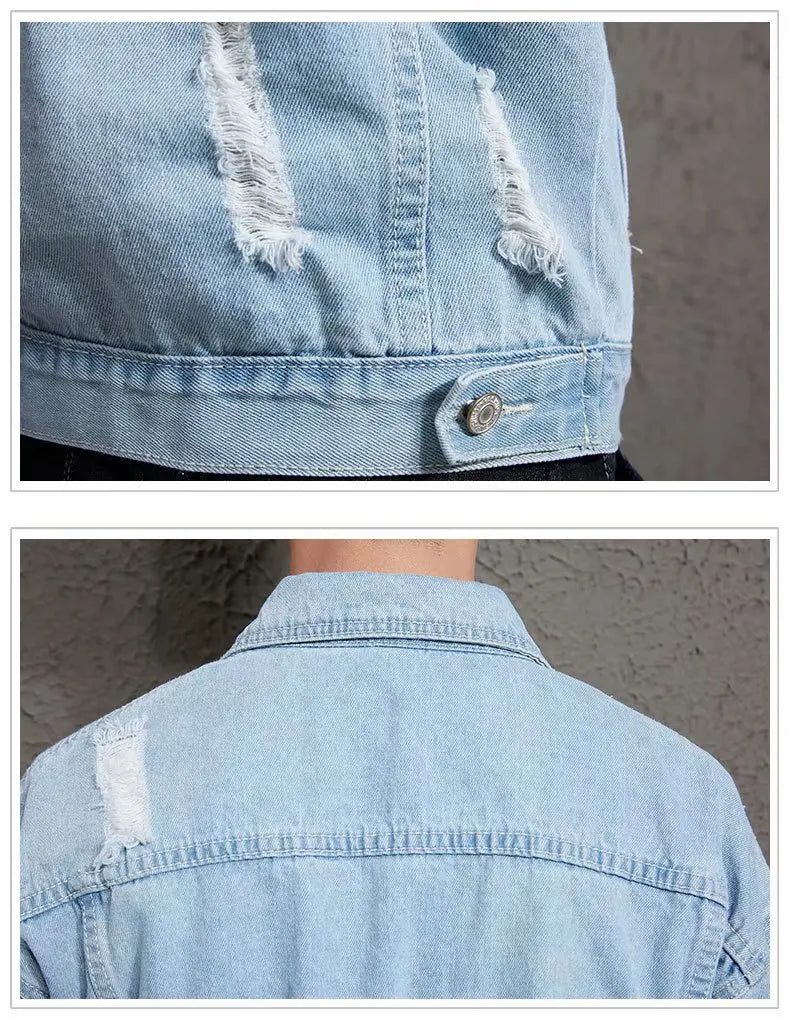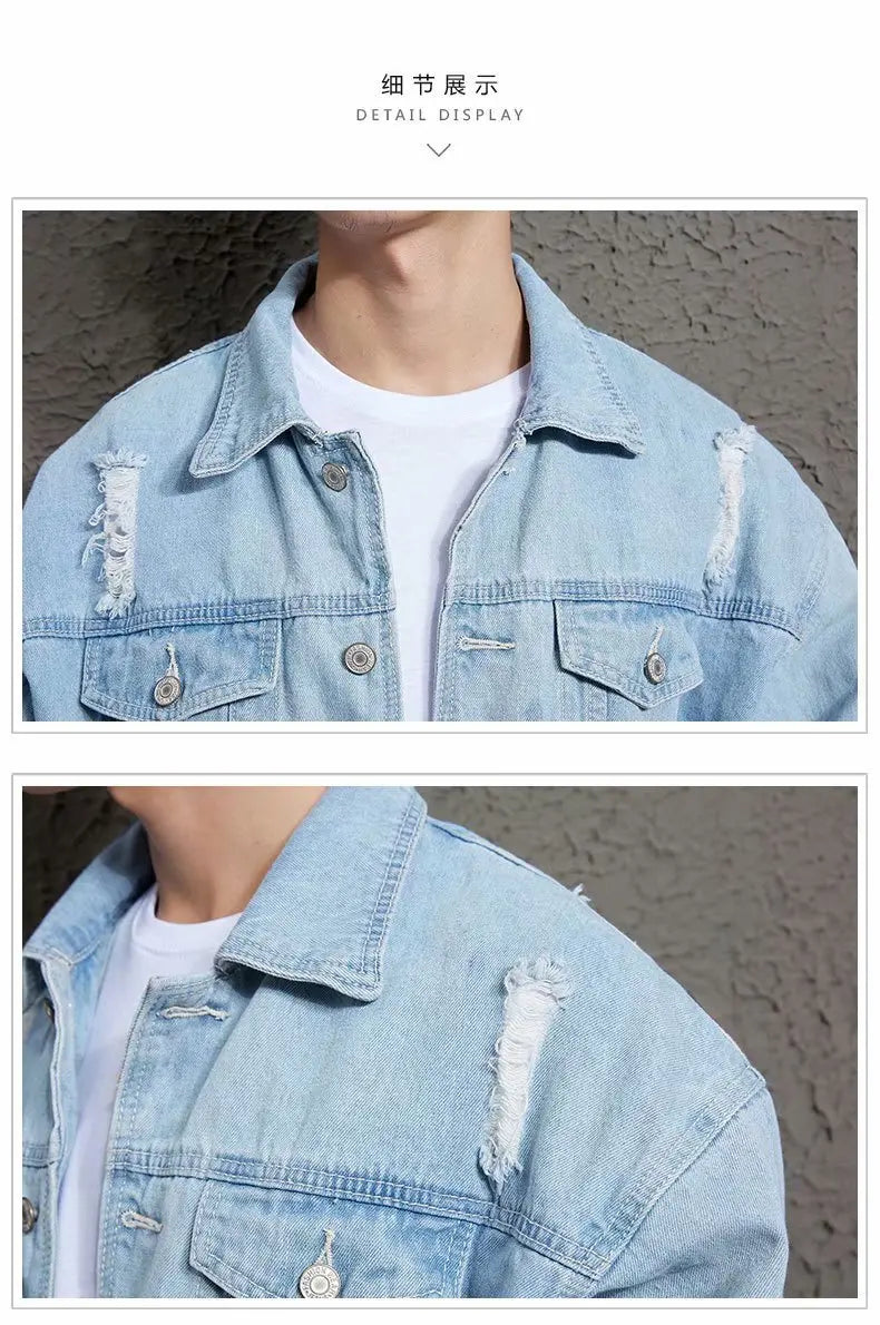 2021 Autumn Solid Casual Slim Mens Denim Jacket Bomber Jacket Men Tearing Hole Cowboy Men's Jean Jacket Chaqueta Hombre