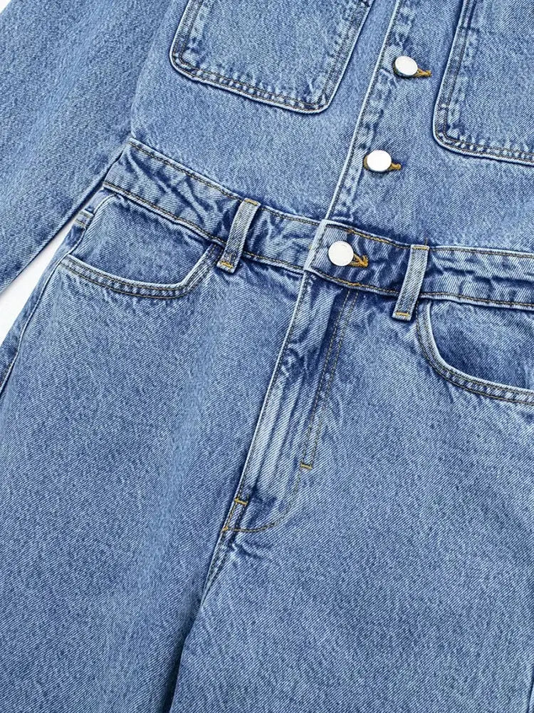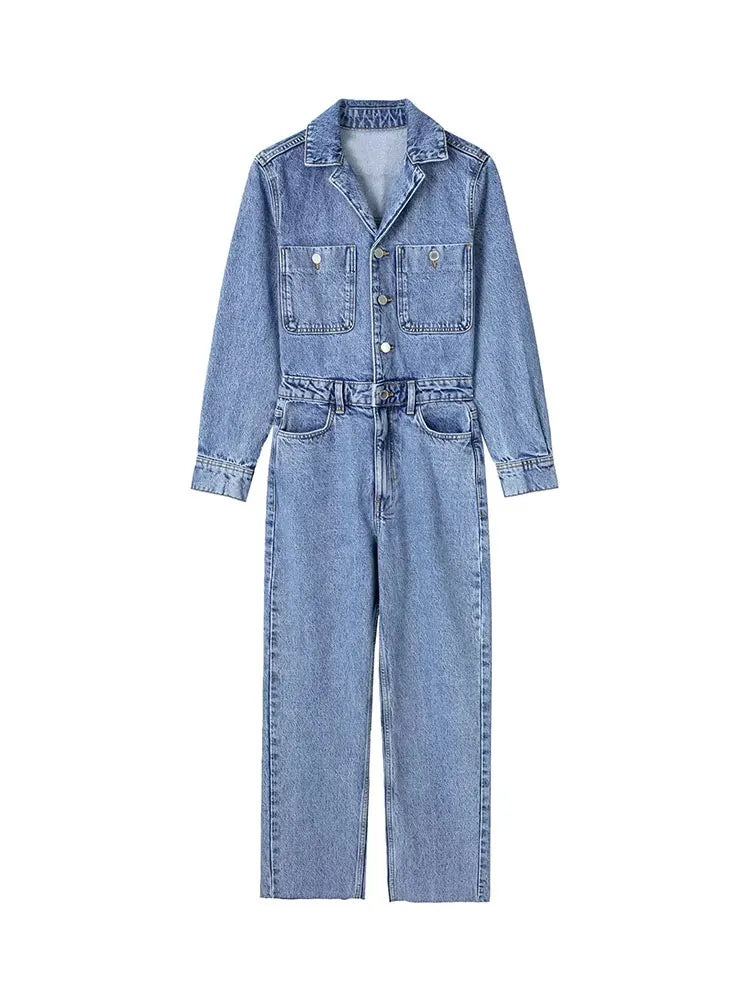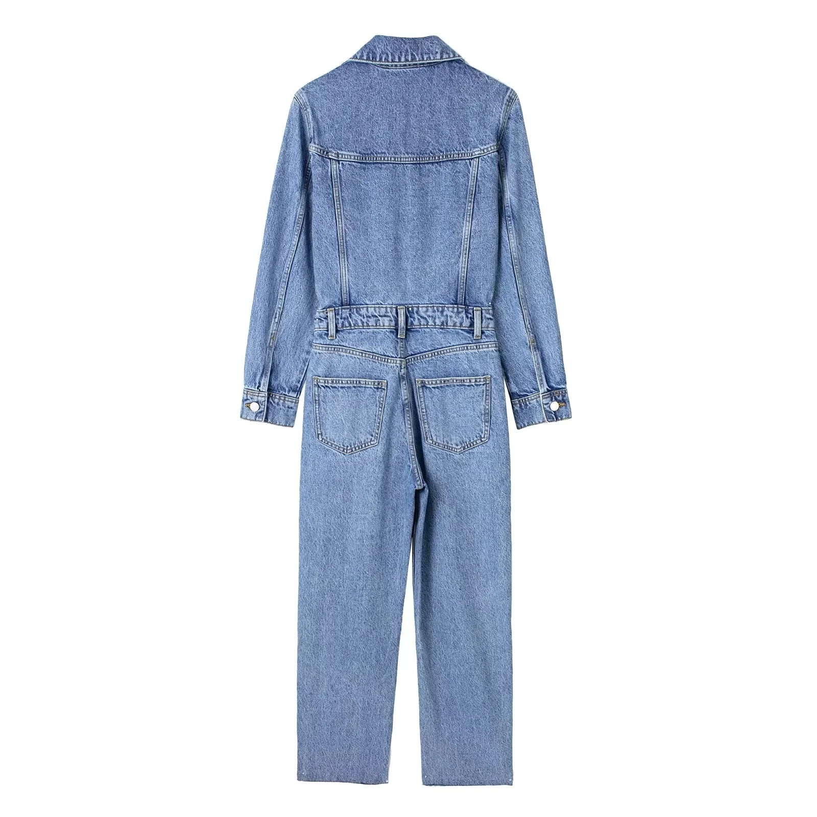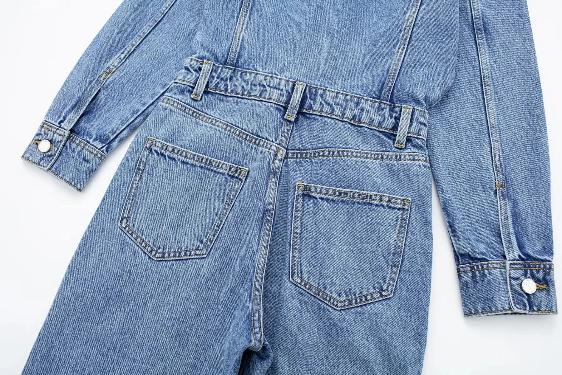 2023 New Woman Jeans Jumpsuit Long Sleeves High Waist jeans Bodysuit Notched Fashion Playsuit Jumpsuits