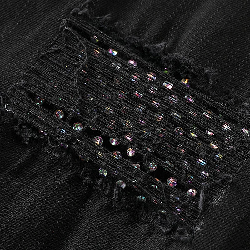 2024 spring and summer hot selling men's white distressed hot drilling jeans slim fit stylish American high street trendy jeans