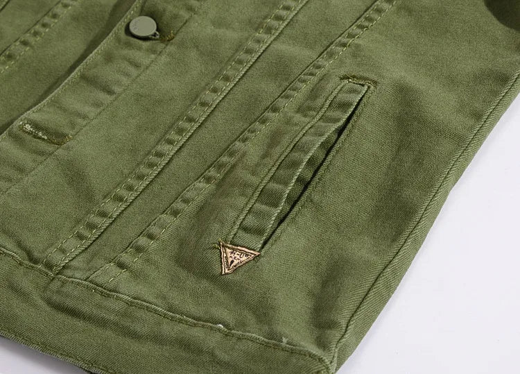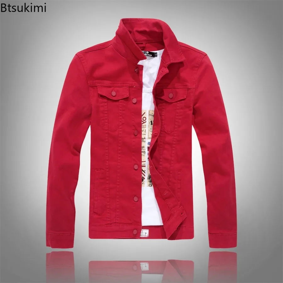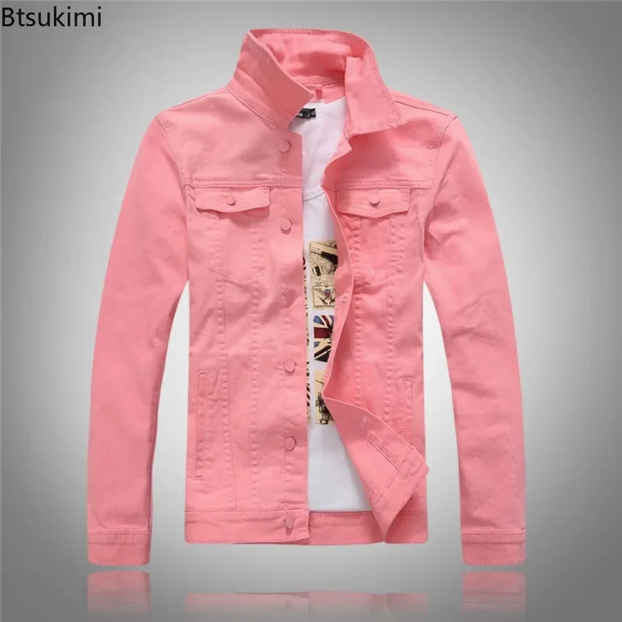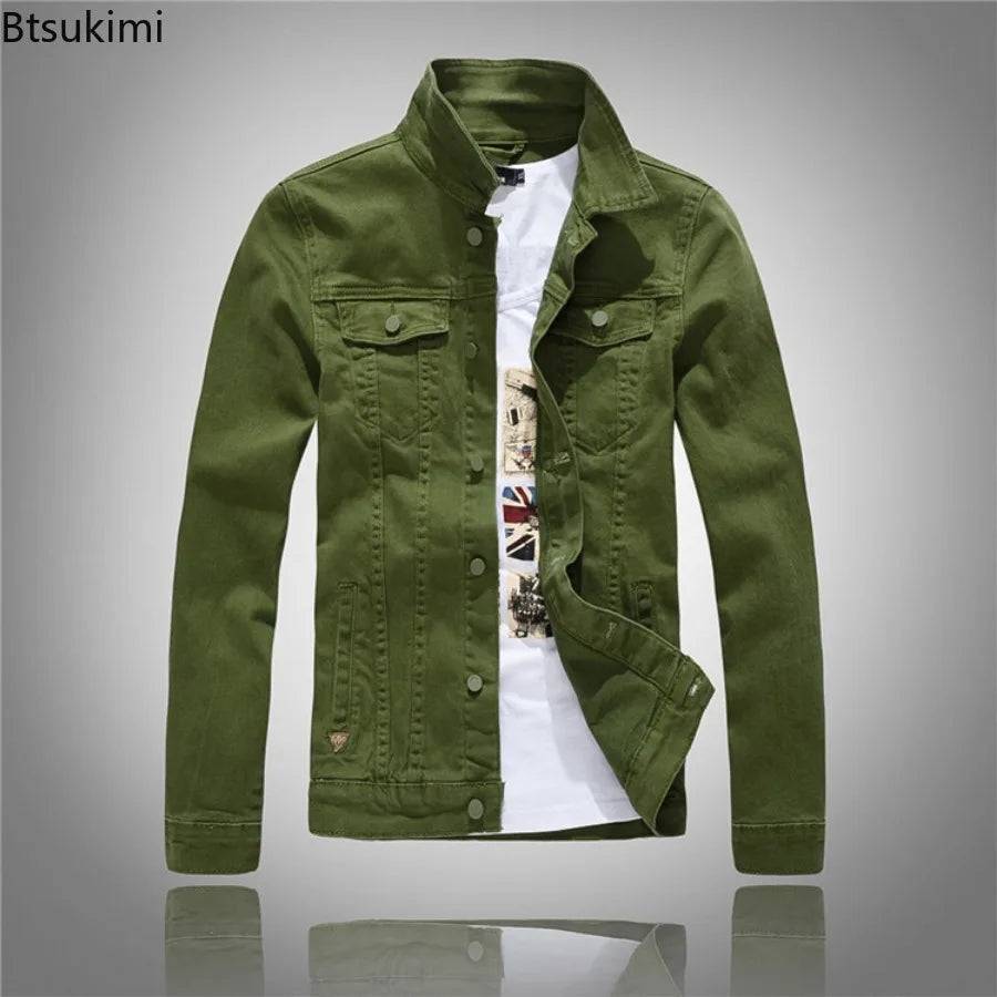 2025 Denim Jackets Men Solid Color Jacket Slim Fit Denim Coat Fashion Military Jacket Yellow Black Green White Top for Men