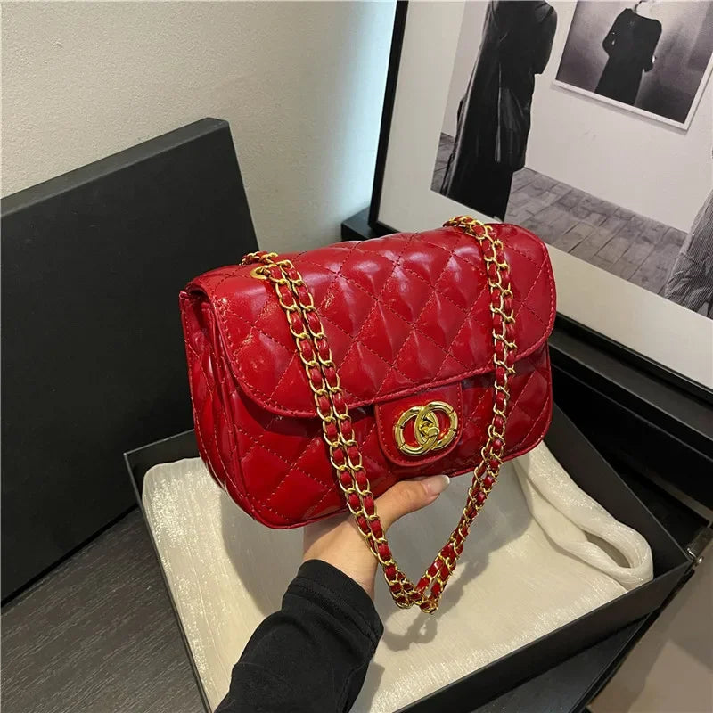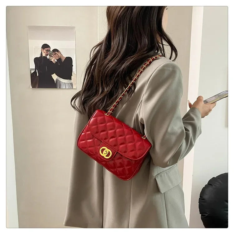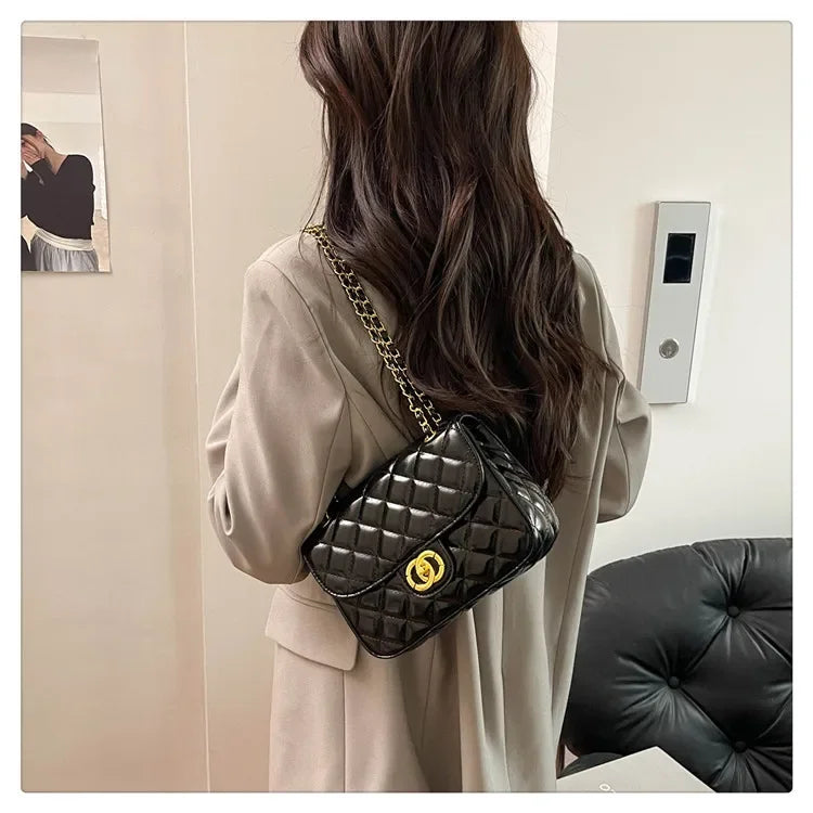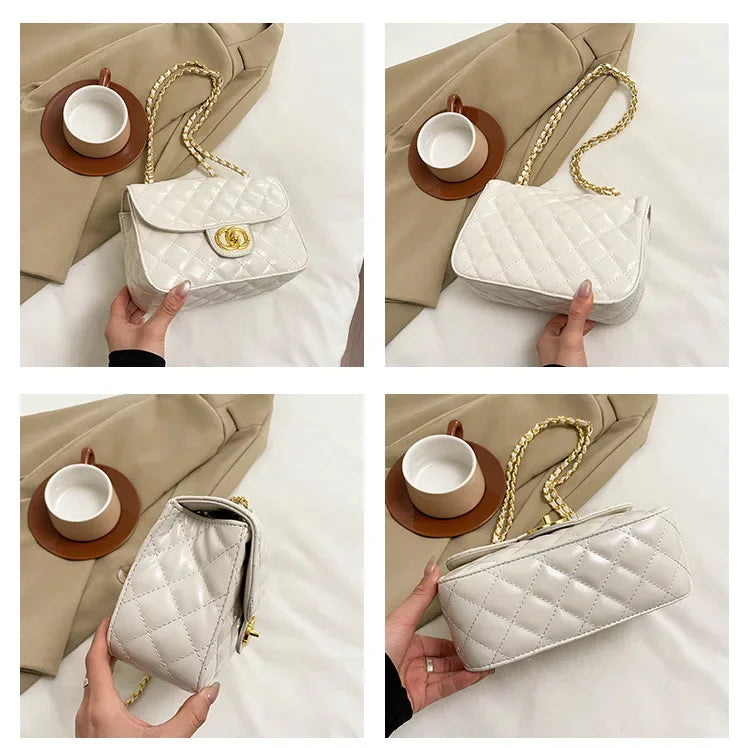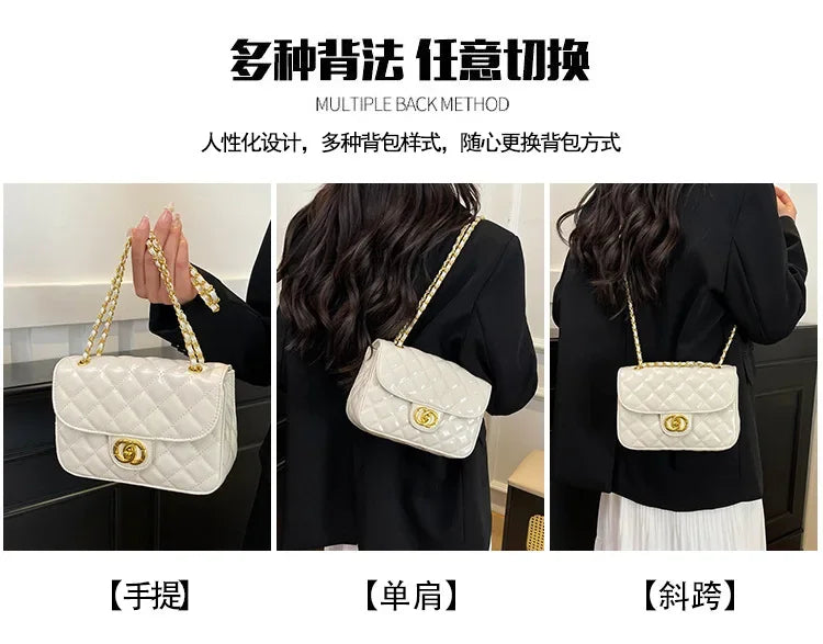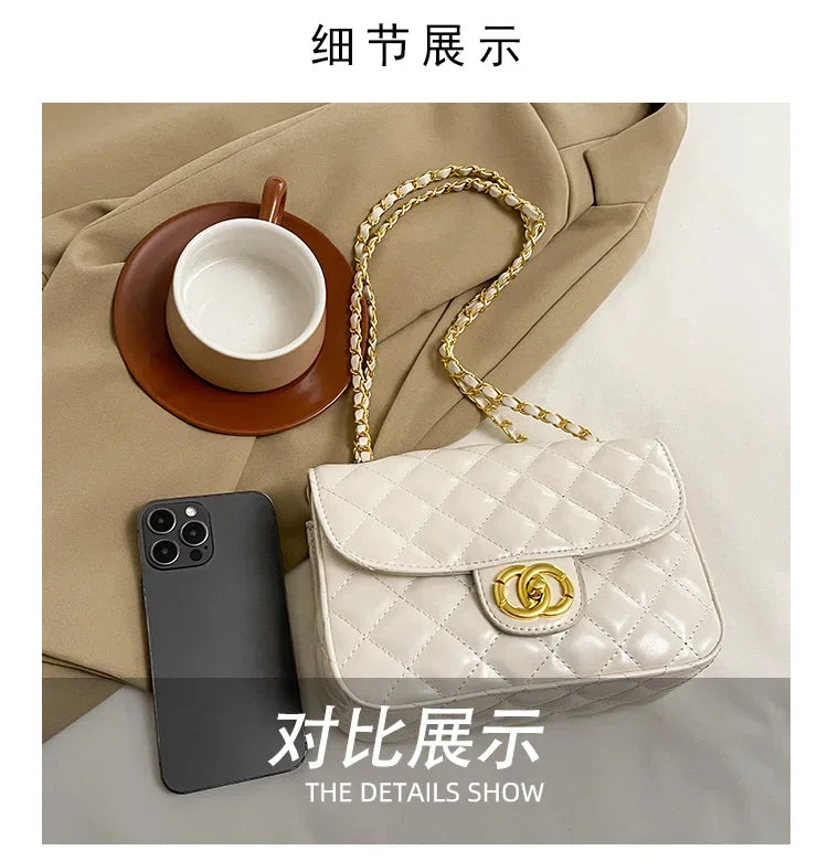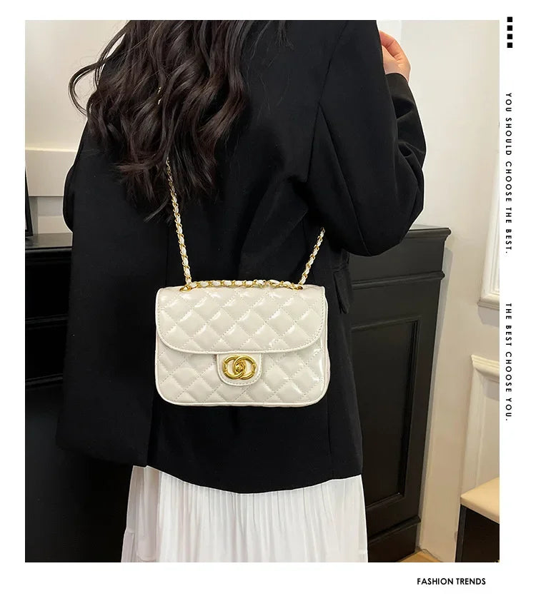 2025 New Women's Light Luxury Chain Square Bag Trendy Crossbody Shoulder Design | Versatile Handy Small Purse for Daily/Evening