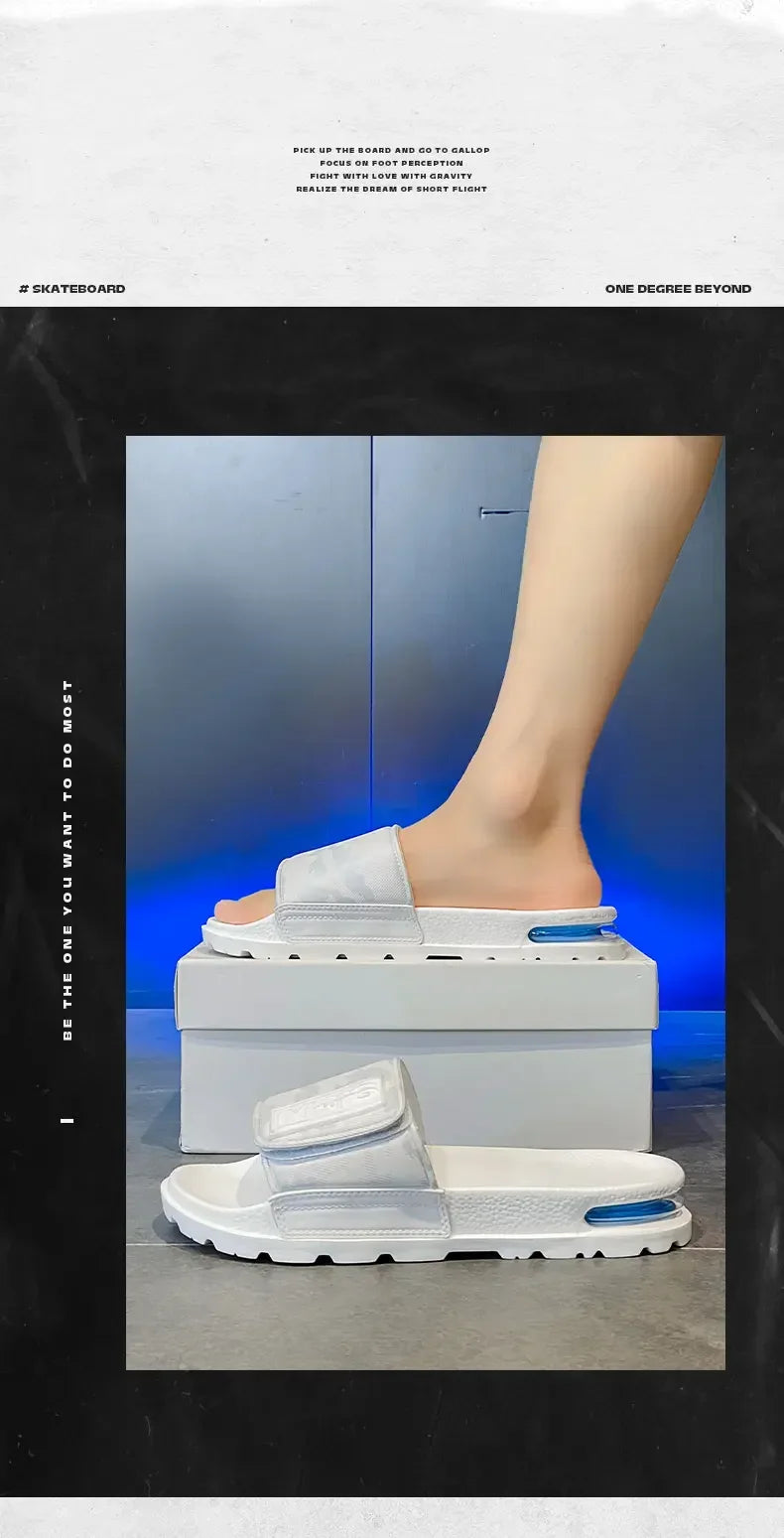 2025 Spring and Summer Trend Fashion Wear Super Soft Slippers Men's Velcro Air Cushion Personality All Casual One Word Slides