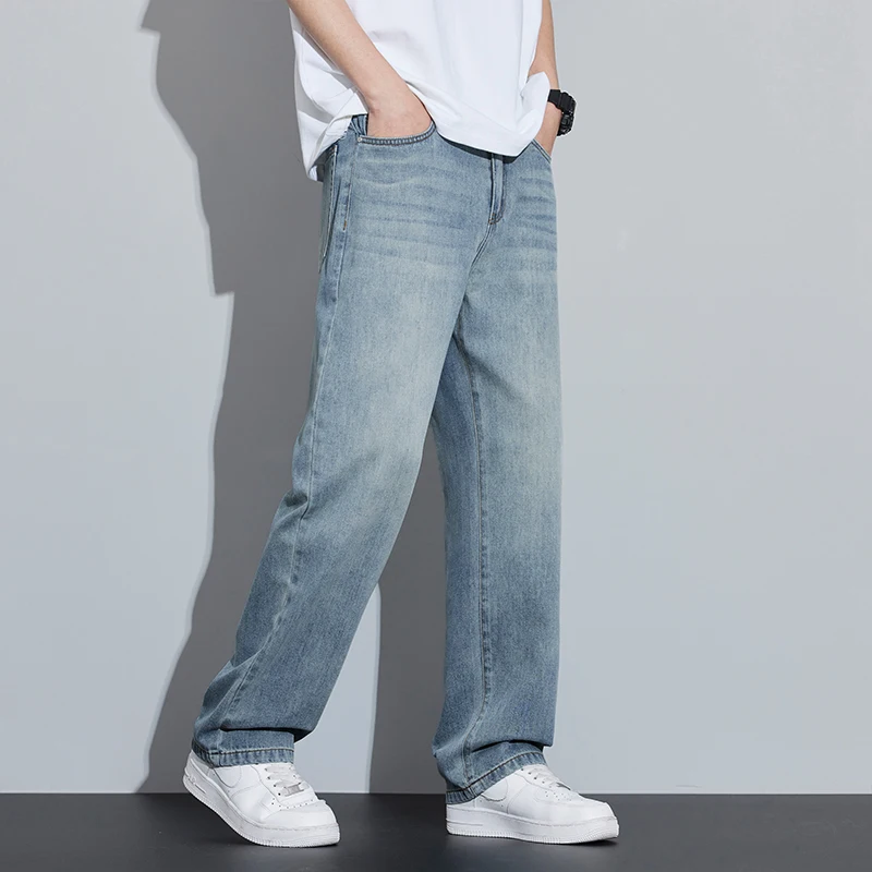 2025 Spring/Summer New Men's Lyocell Loose Jeans Summer Thin Breathable Straight denim Retro Business Casual Fashion Korean M