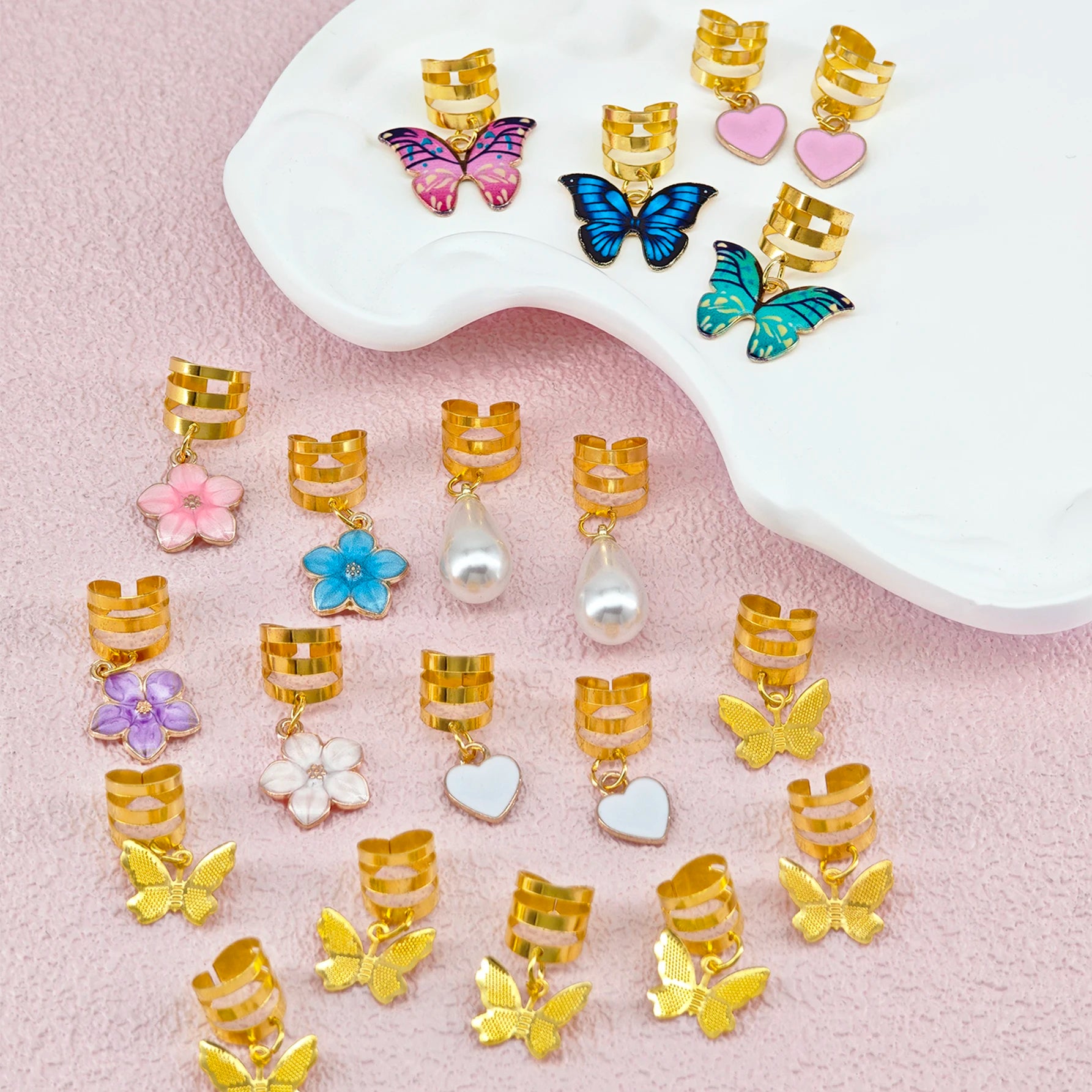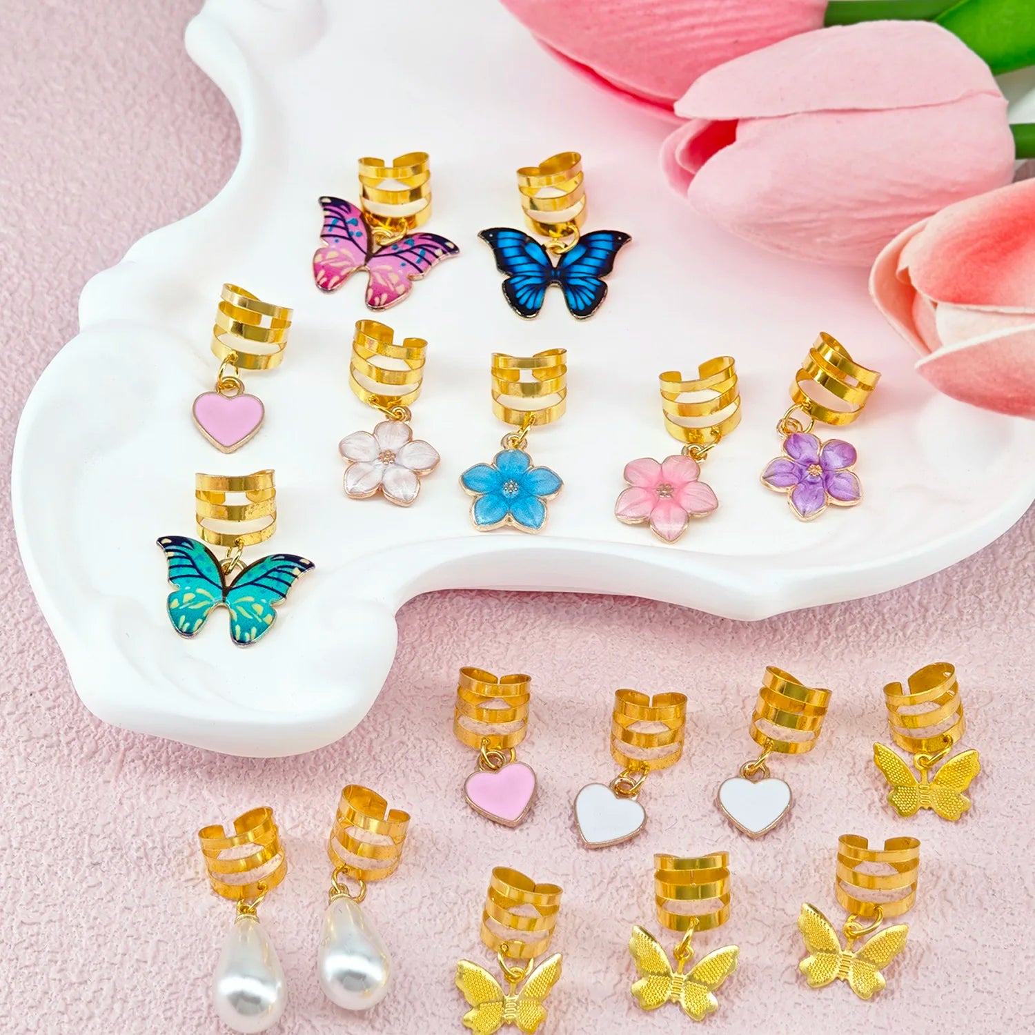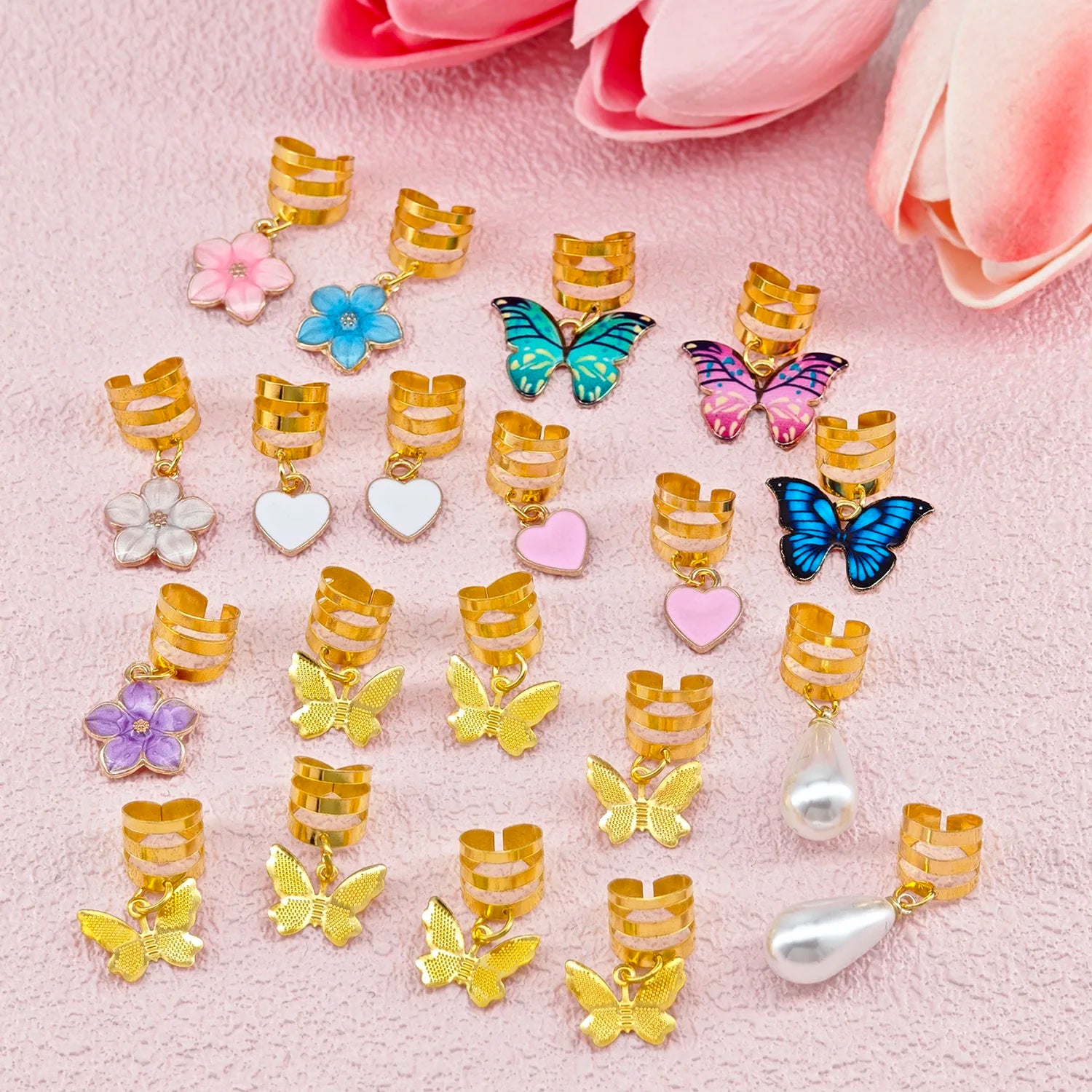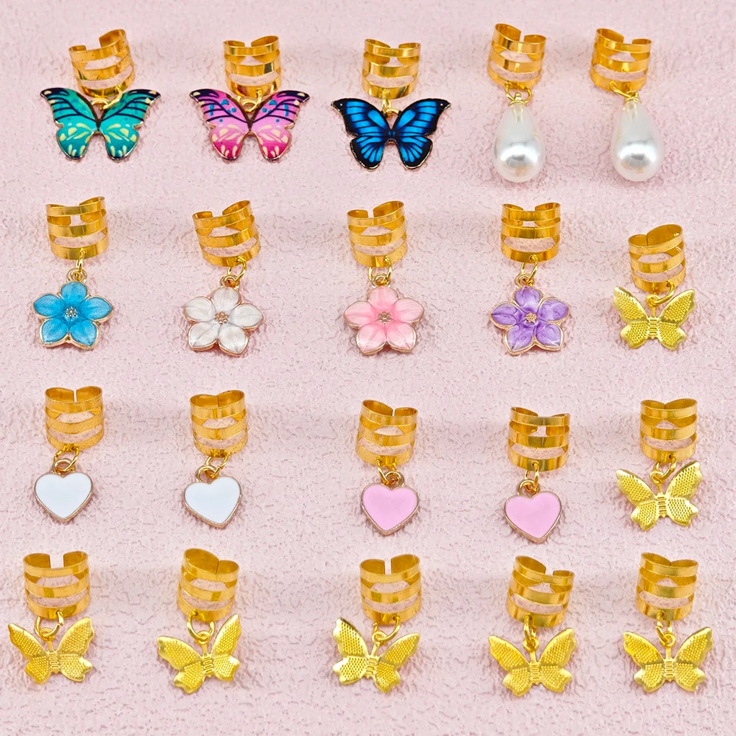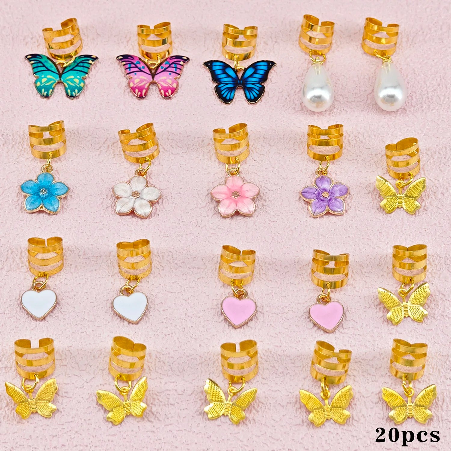 20Pcs Butterfly Braid Clips Crystal Dreadlock Hair Accessories Colorful Butterflies Pendant Charms Pearl Shiny Hair Jewelry