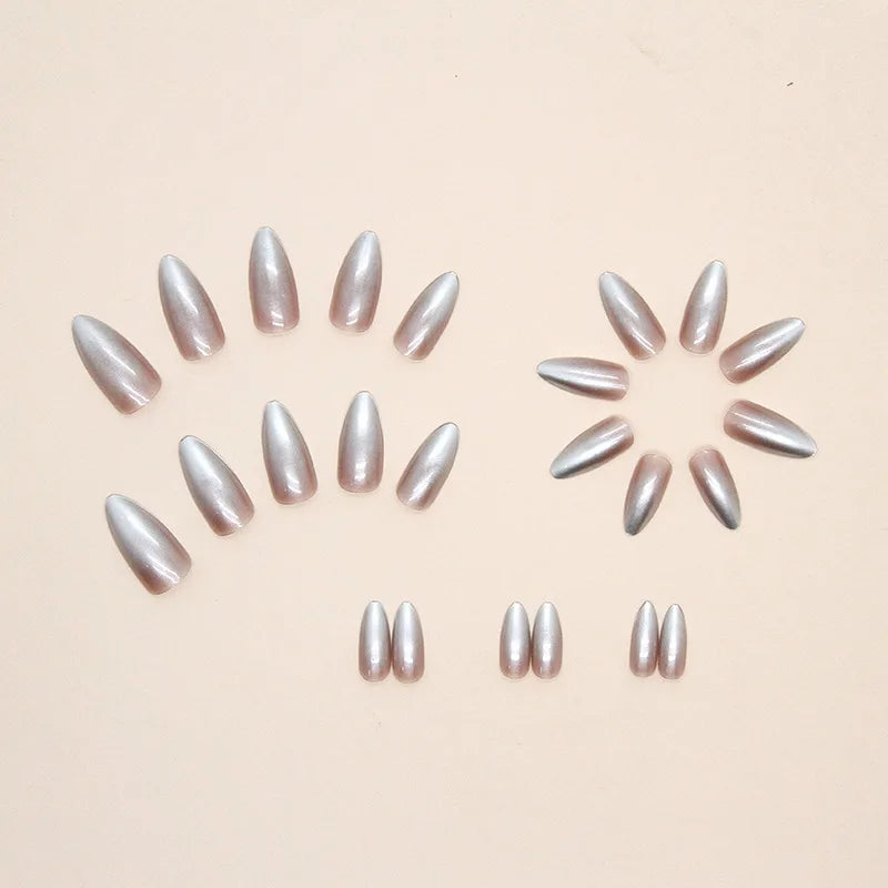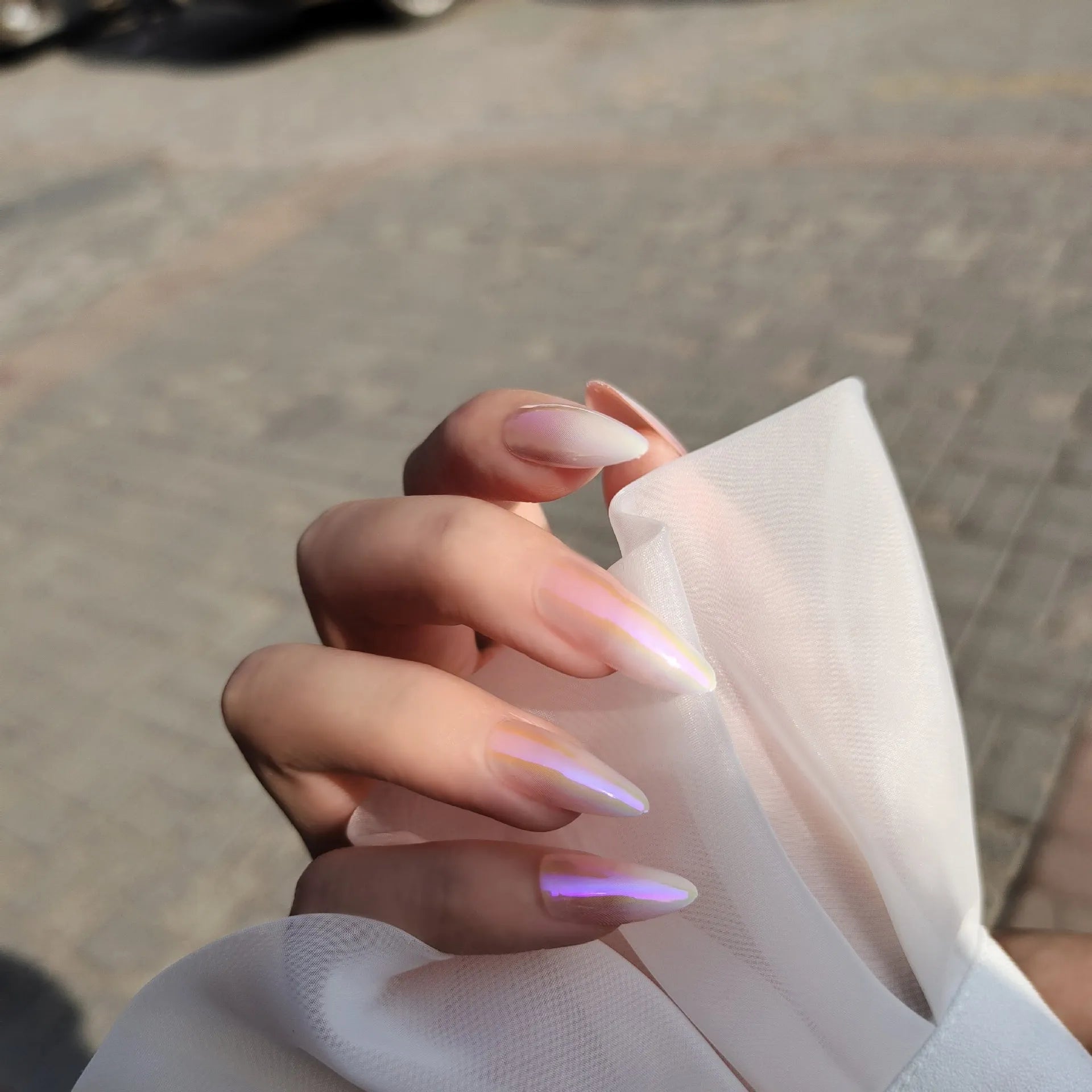 24pcs Aurora Stiletto False Nail Tips Glitter Gradient Color Fake Nails Wearable Full Cover Pointed Head Acrylic Nail Tips