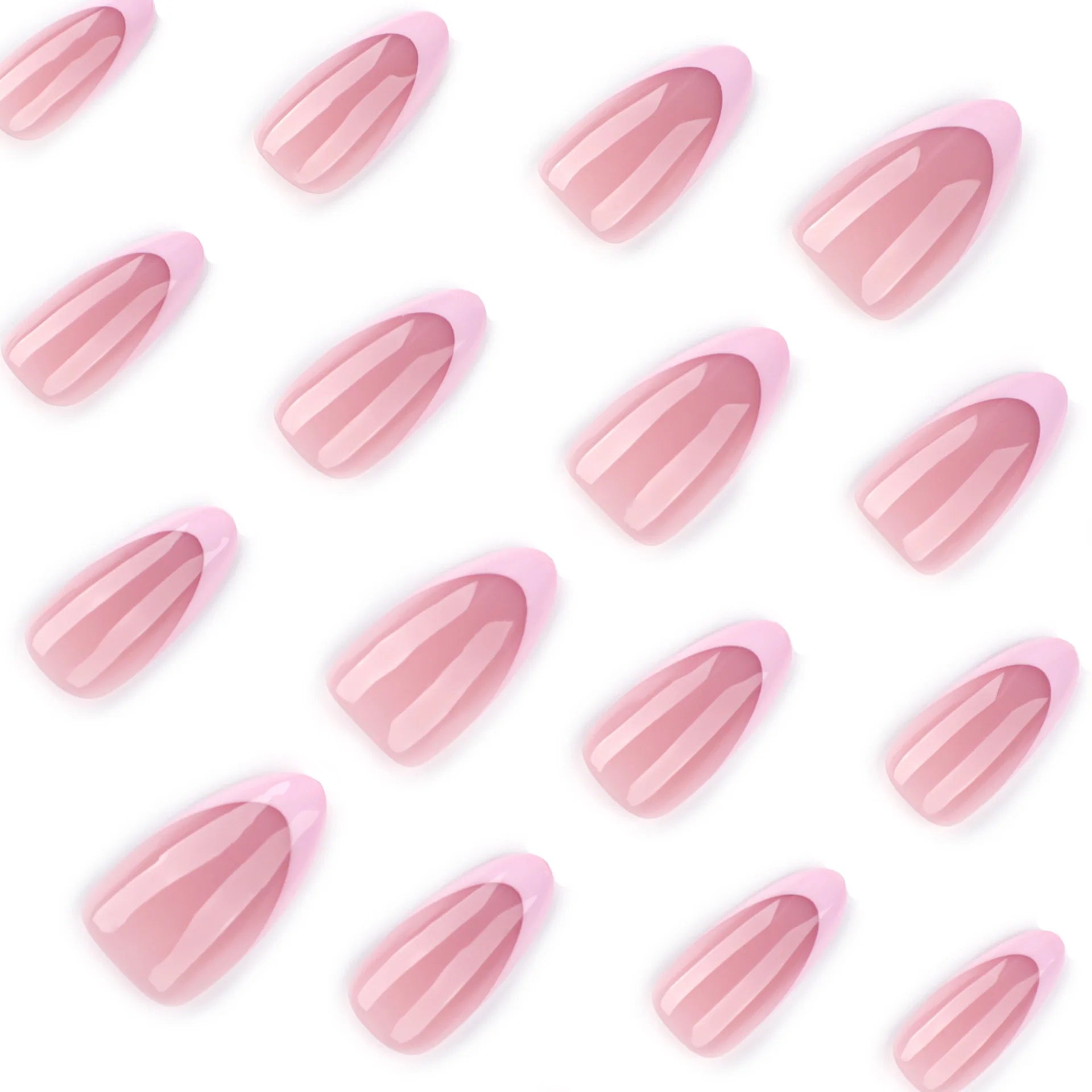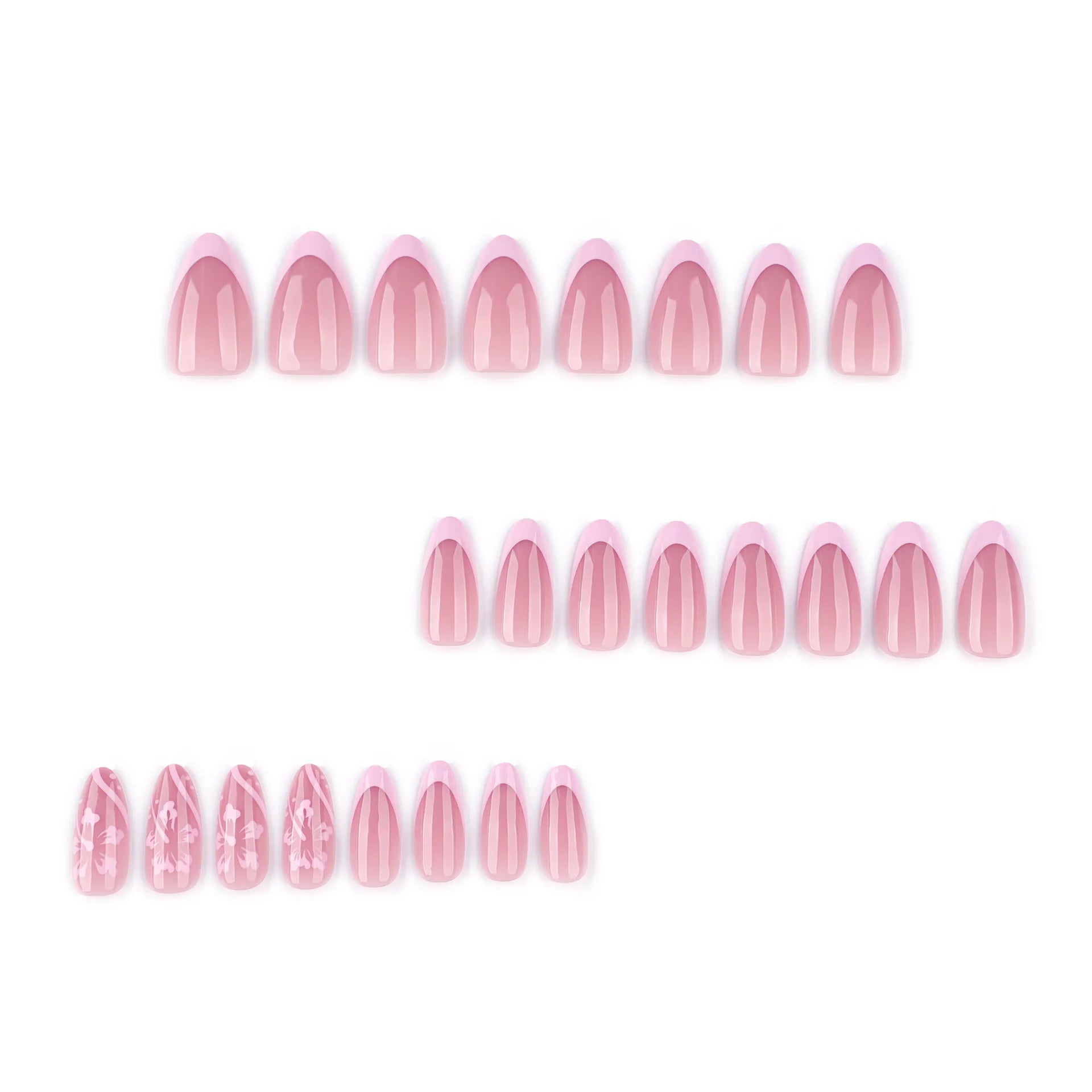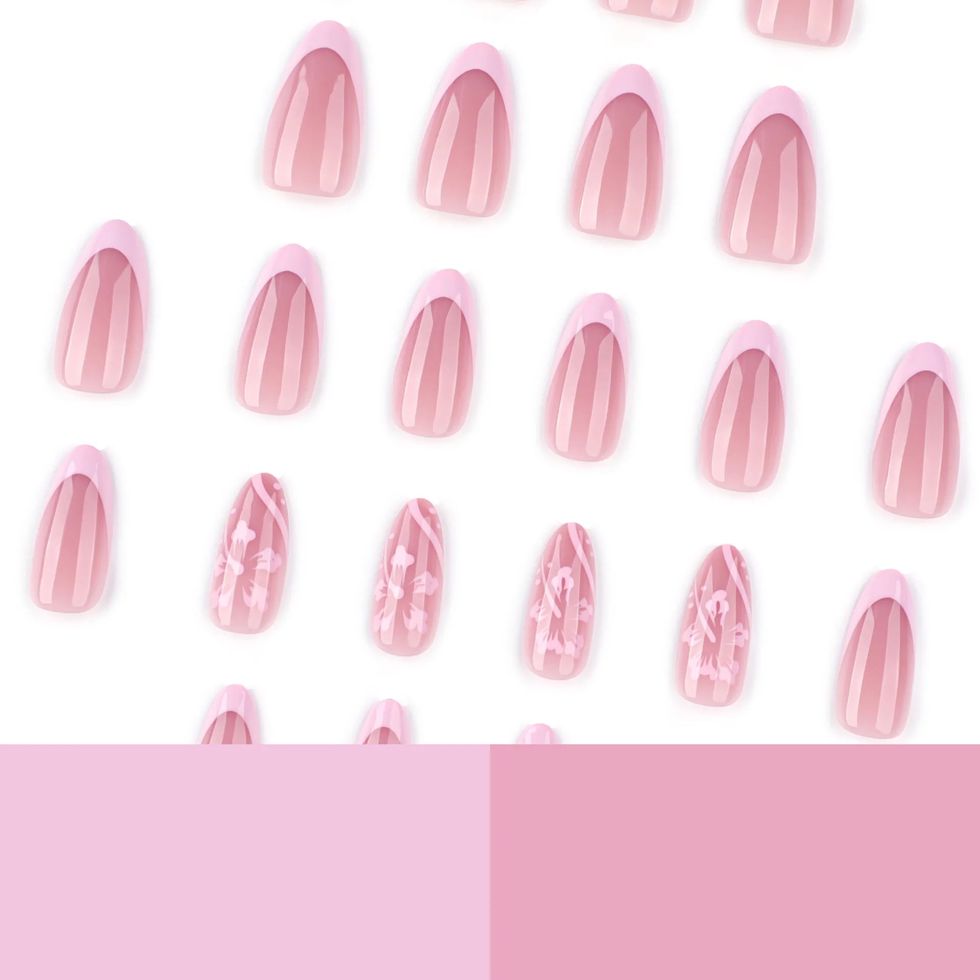 24pcs Petal Print Press on Nail Pink French Almond False Nails Wearable Detachable Ins Simple Fake Nails for Women Girls