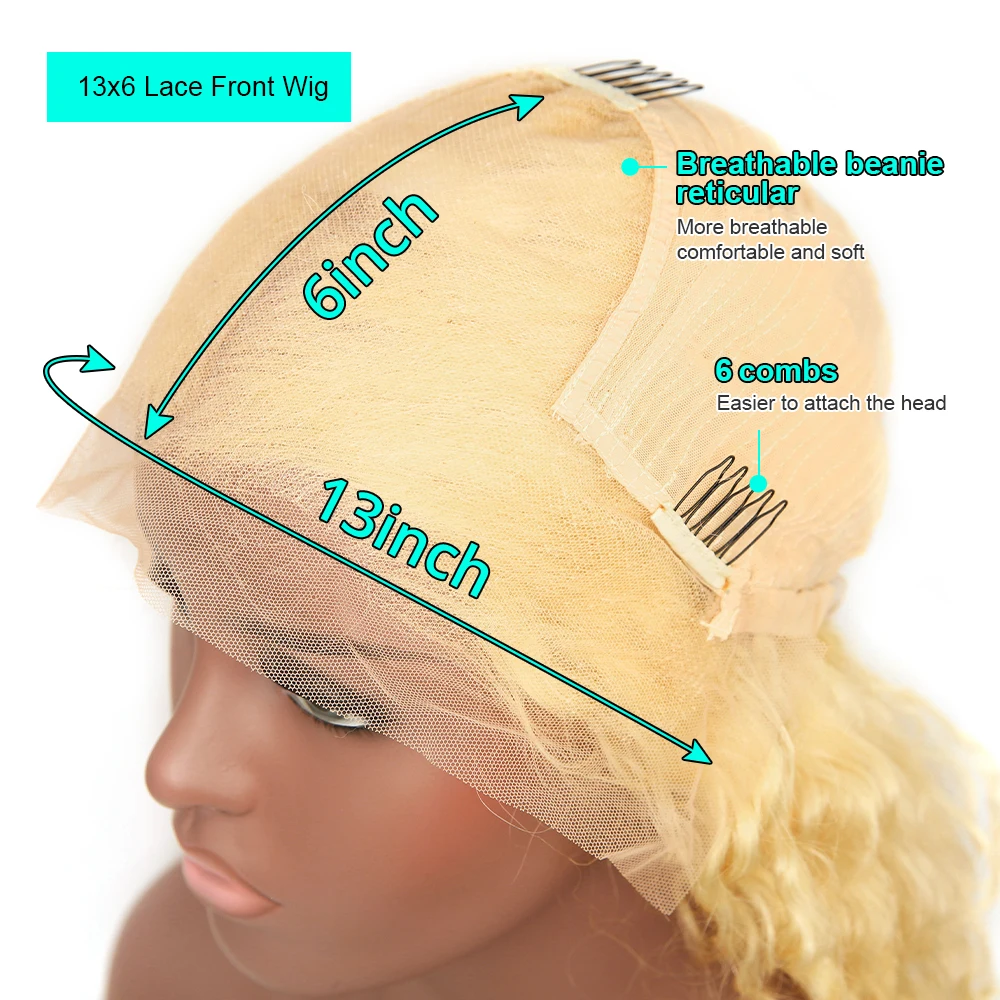 28 Inch Yellow Wig Human Hair Body Wave 13x6 HD Lace Frontal Wig Plucked 200% Density Colored Lace Wig Water Wave For Women