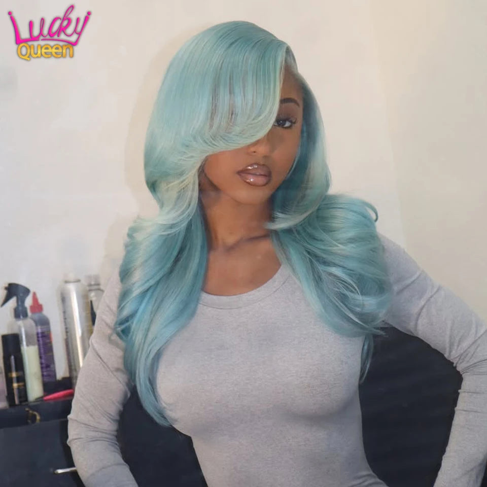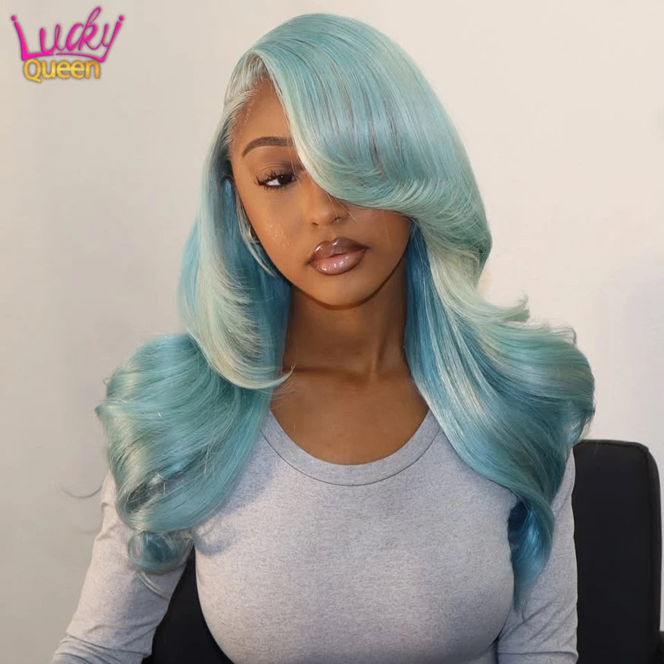 613 Colorful Wigs Light Haze Blue 180Density Pre Plucked Human Hair Transparent 13X4 Lace Front Frontal For Women 13X6 Body Wave