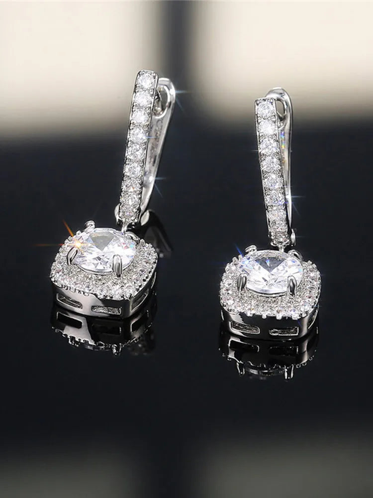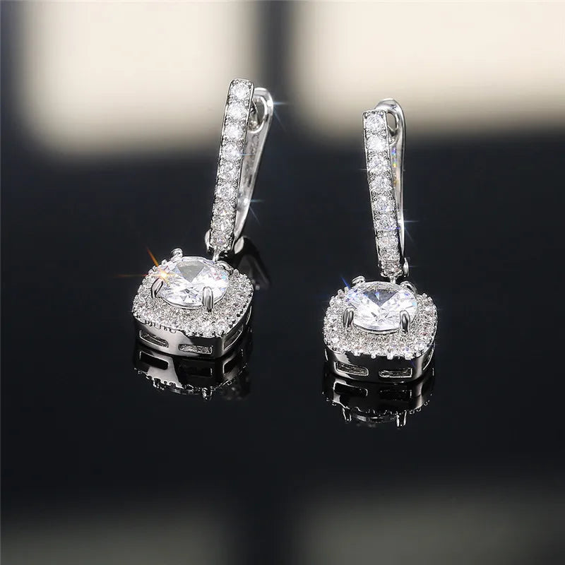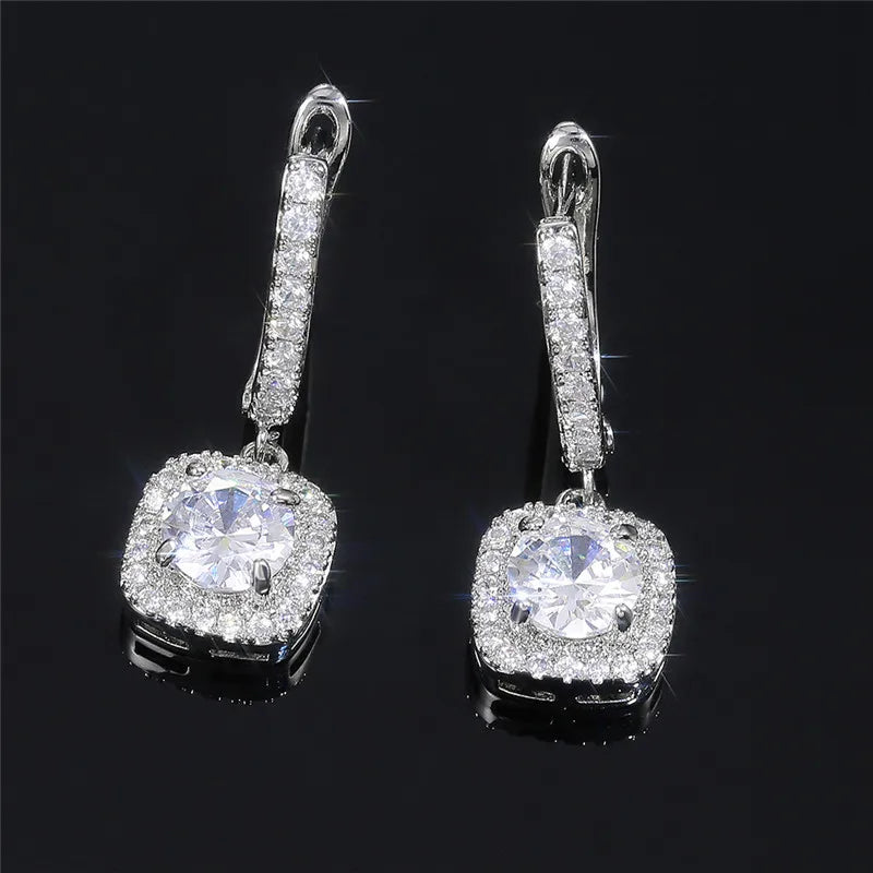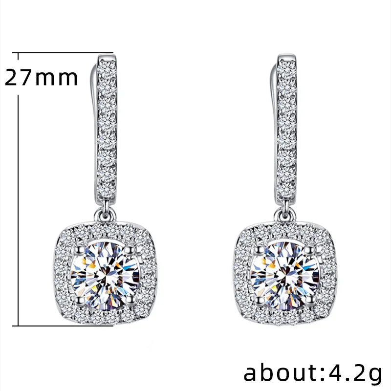 925 Sterling Silver Trendy Square Shape Drop Earrings Brilliant Bridal Engagement Wedding Jewelry Elegant Female Dangle Earring