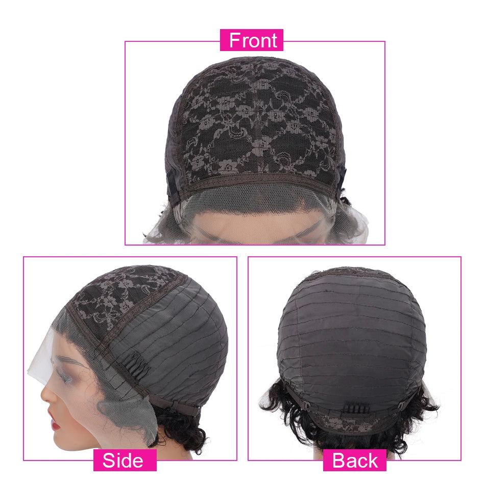 99j Red Short Curly Wigs Pixie Cut Lace Front Wigs 6 inch Human Hair 13X1 Pixie Burgundy Human Hair Wigs For Women Pixie Wig