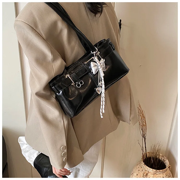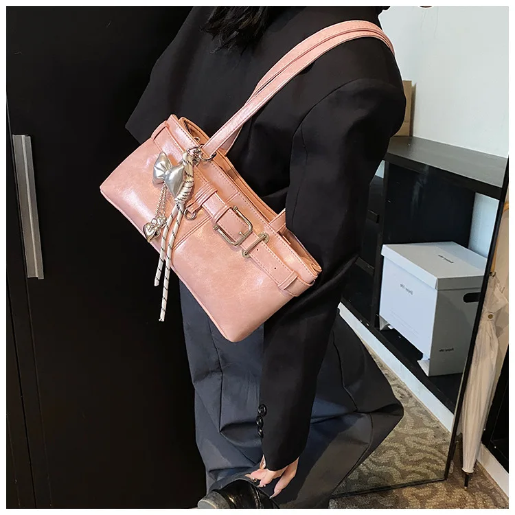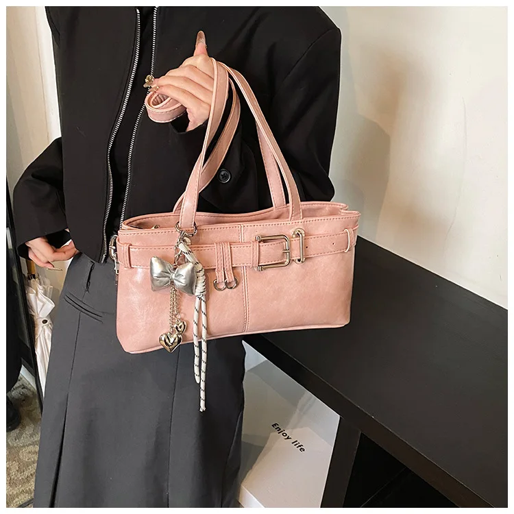 Belt Buckle Design Shoulder Satchels Bag for Women 2025 New in Luxury Designer Handbags Branded Fashion Totes with Pendant Сумка