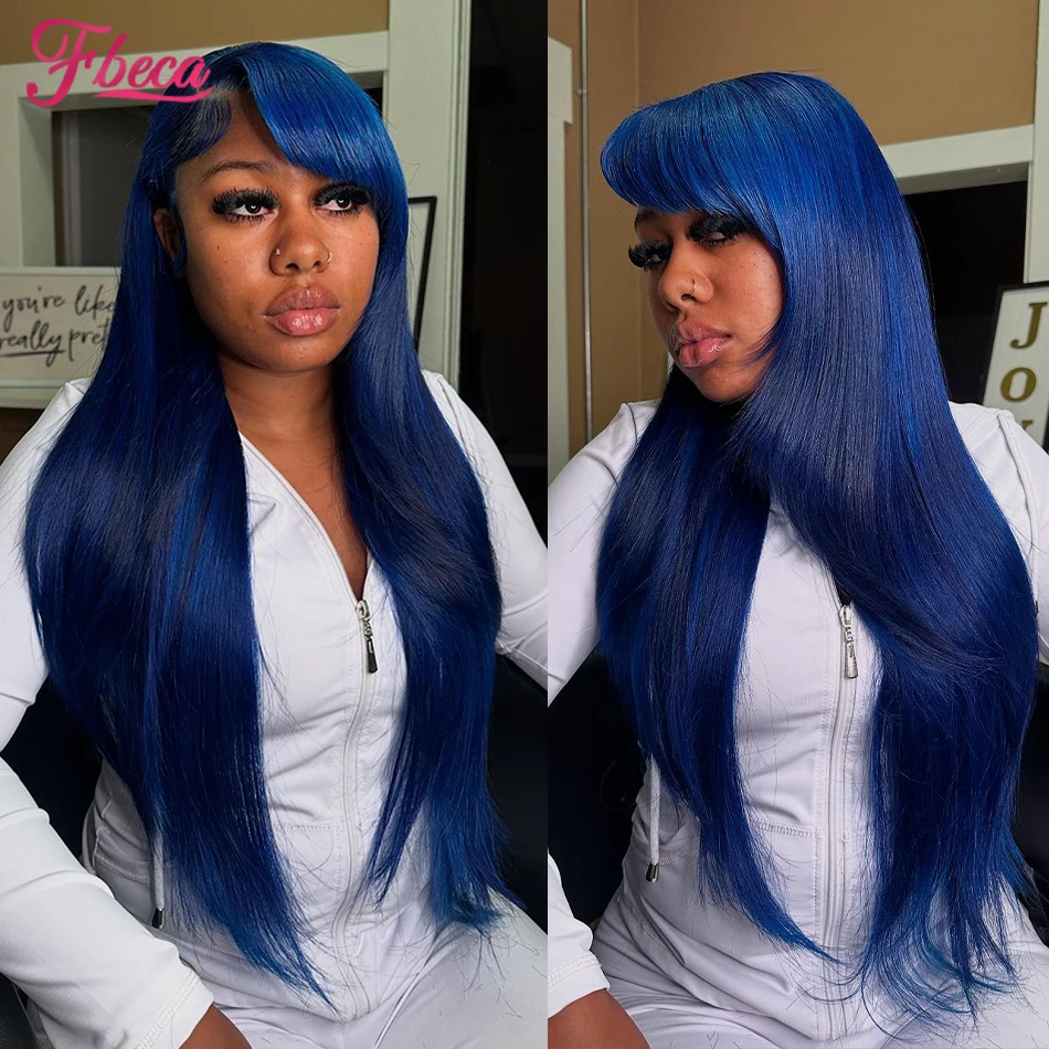 Blue Colored Human Hair Wig 13x4 Lace Frontal Wigs Straight Lace Front Human Hair Wig For Women Brazilian Remy Human Hair Wig