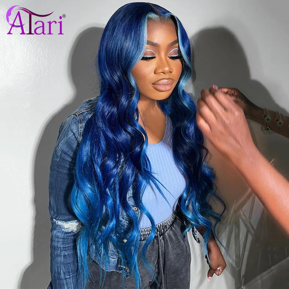 Blue Transparent 13x6 Lace Frontal Human Hair Wigs Brazilian Highlights Body Wave 13x4 Lace Front Wig Pre Pluck 5x5 Closure Wig