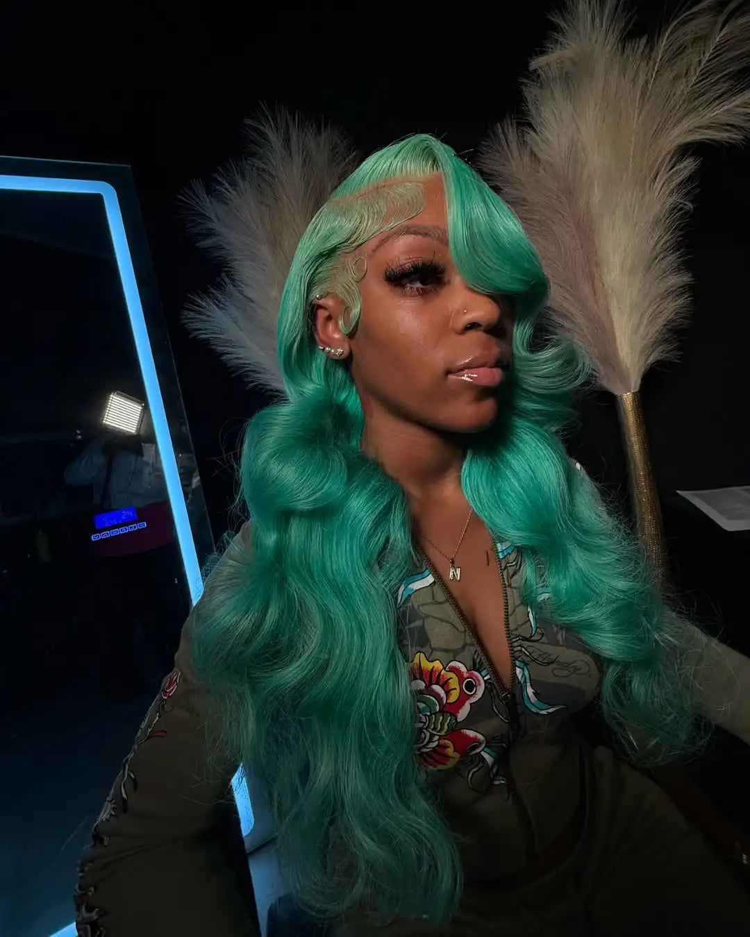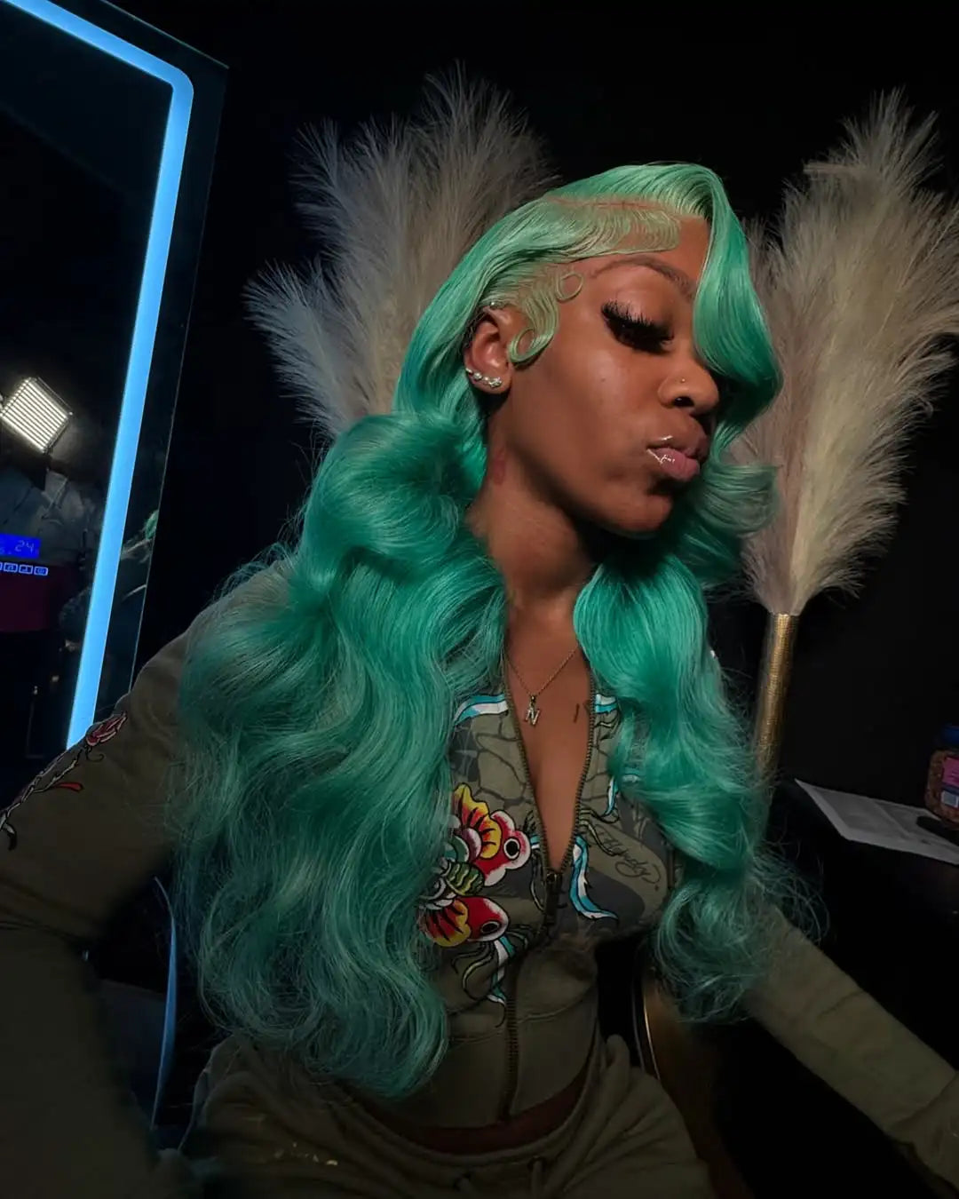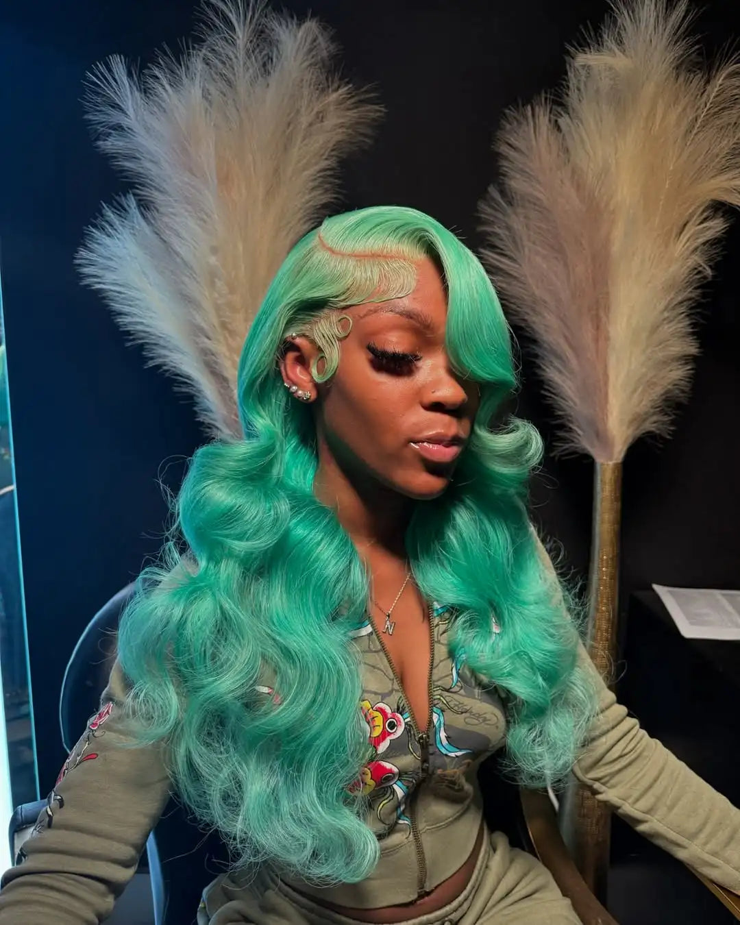 Brazilian Mint Green 30 Inch Body Wave 13x4 Lace Frontal Human Hair Wigs Colored 13x6 HD Transparent Lace Front Wig 200 Density