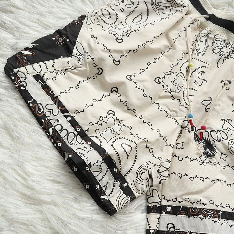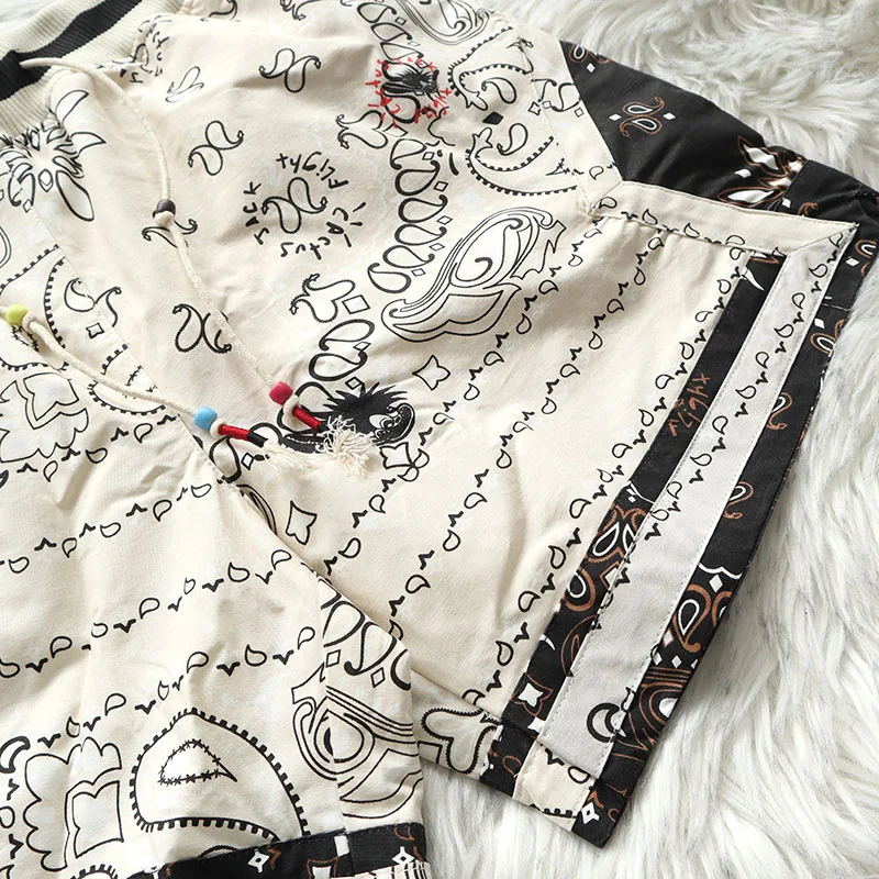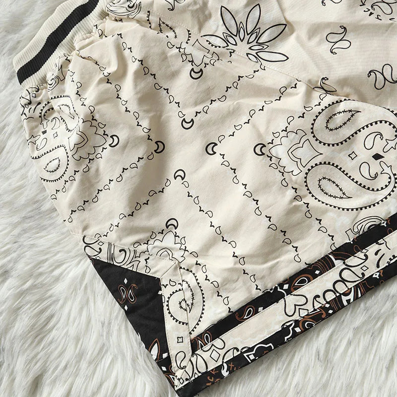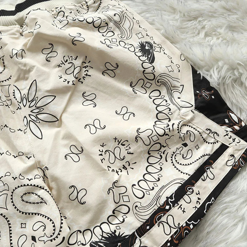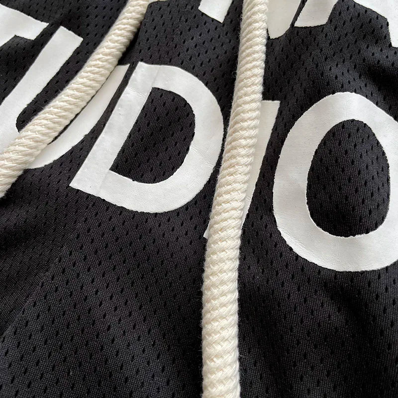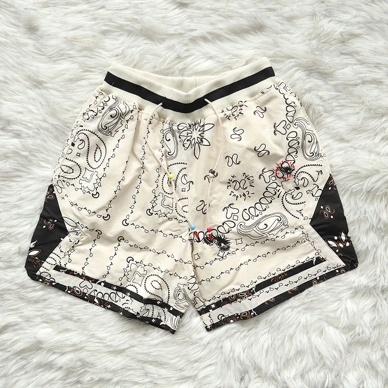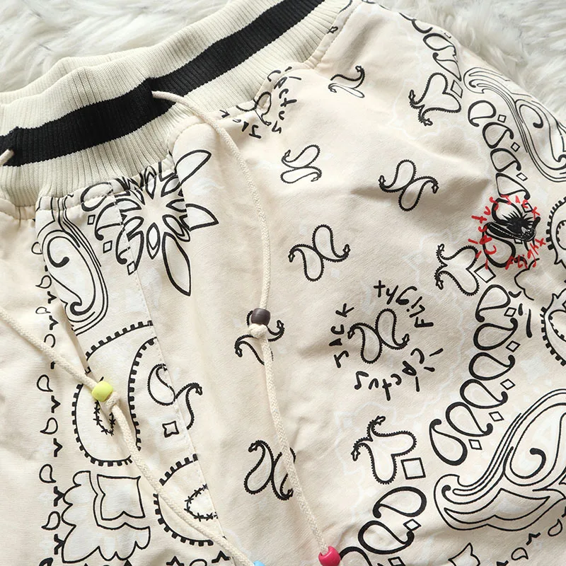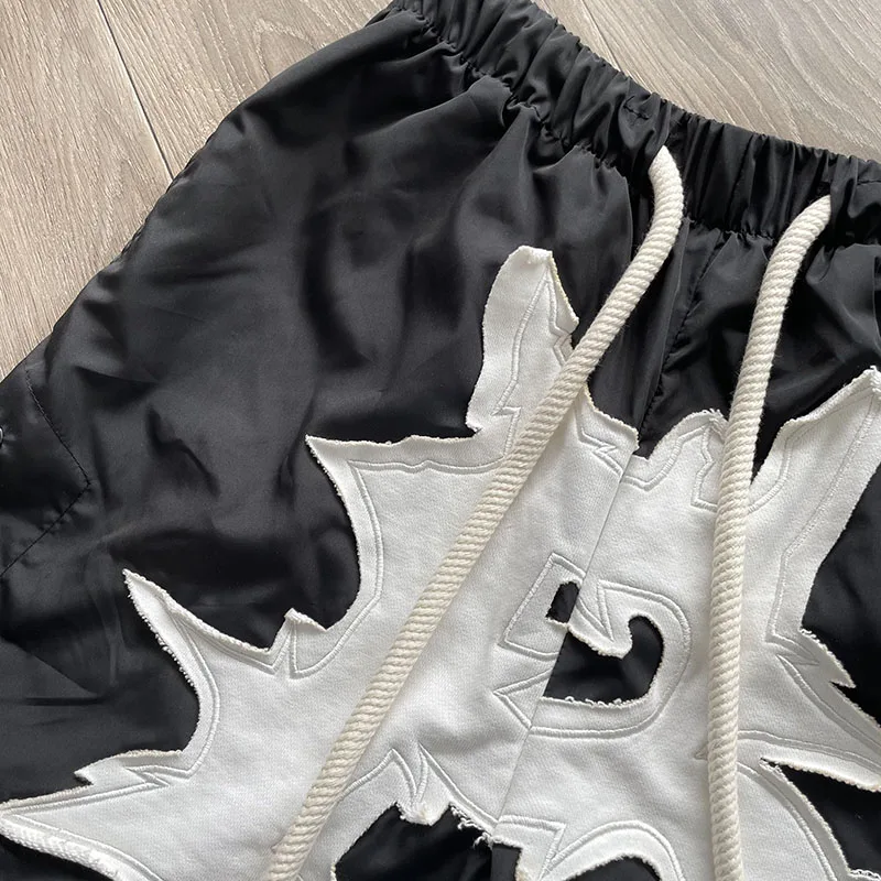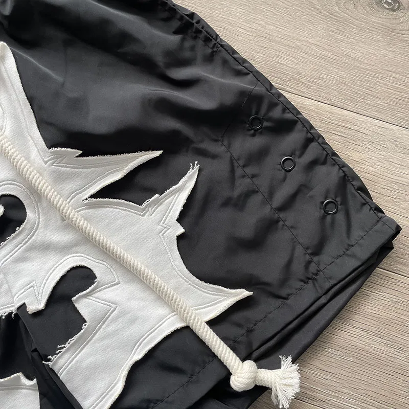Cactus Jack Shorts Fashion Casual Loose Color Blocking Patch Black Drawstring Elastic Waist Shorts Men Women Streetwear Pants