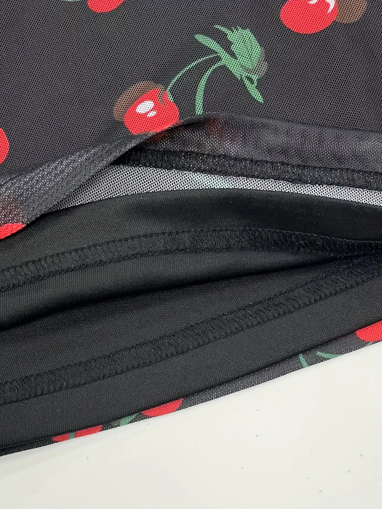 Cherry Printed Vintage Summer Dresses Y2kWomen Swing Robe Party Dress 2025 New Casual Vestidos Sexy Strapless A-Line Sundresses