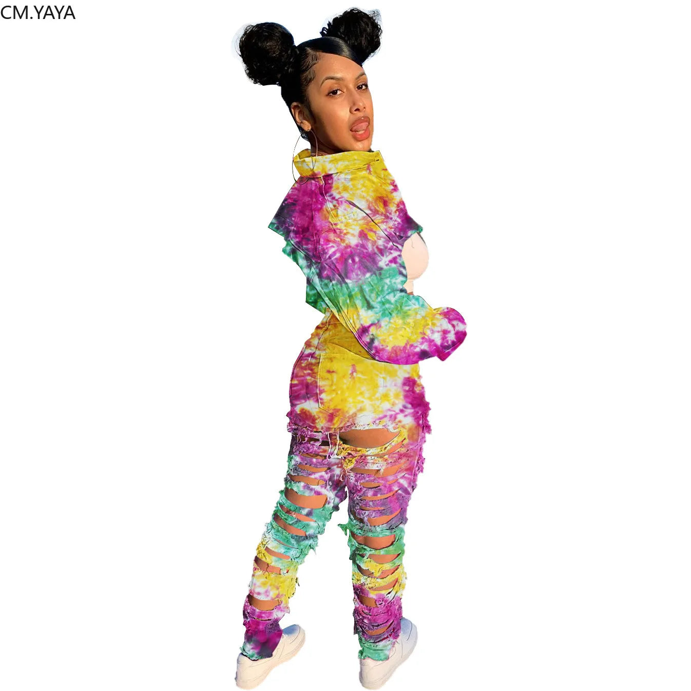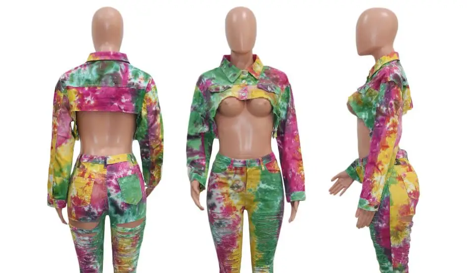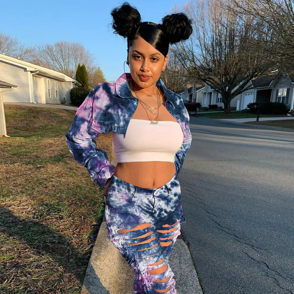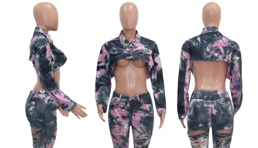 CM.YAYA Autumn Tie Dye Women Long Sleeve Mini jeans Coat Fashion Lady Jackets