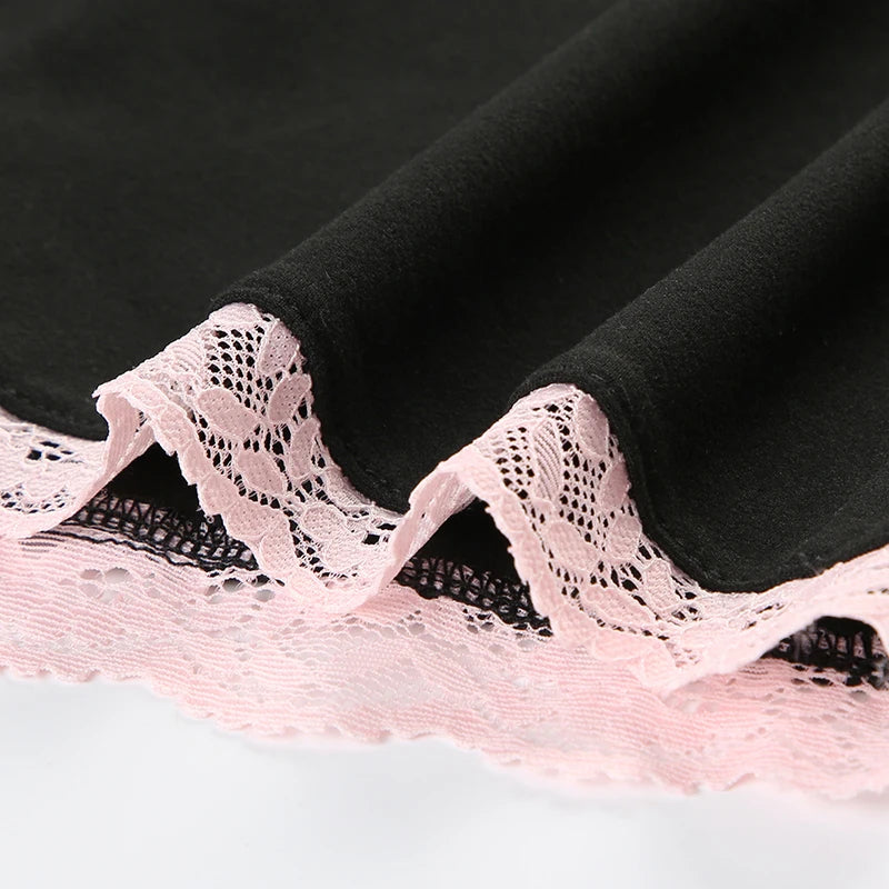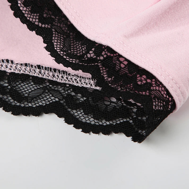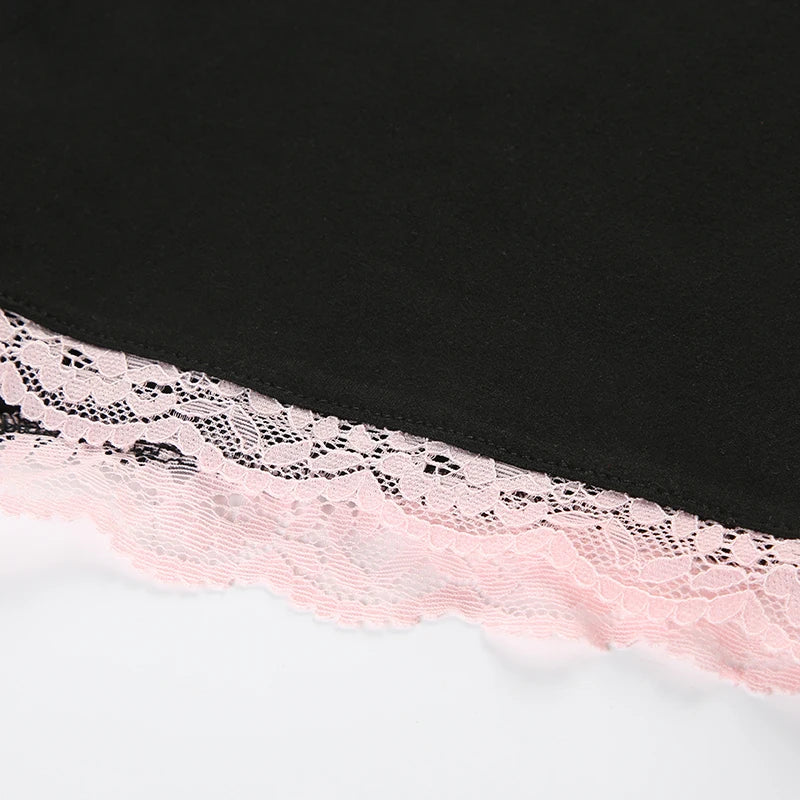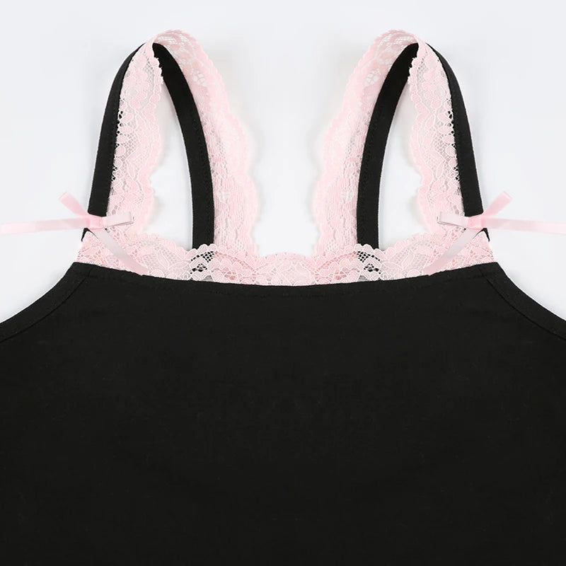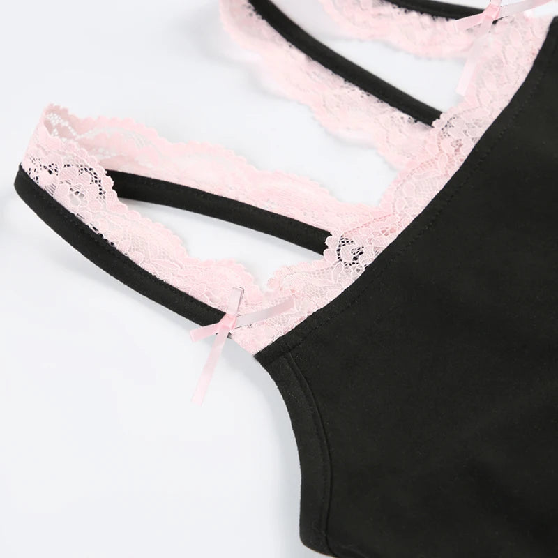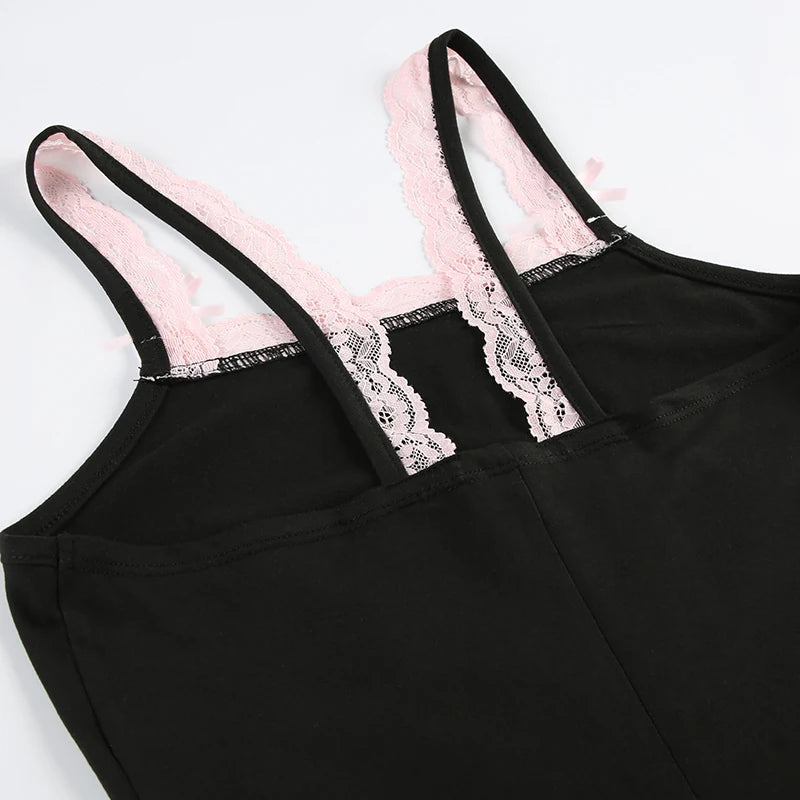 Contrast Lace Patchwork Square Collar Skinny Sexy Straps Rompers Playsuits Sweet Cute Y2K Clothing