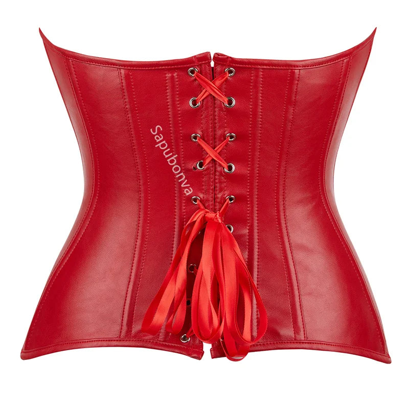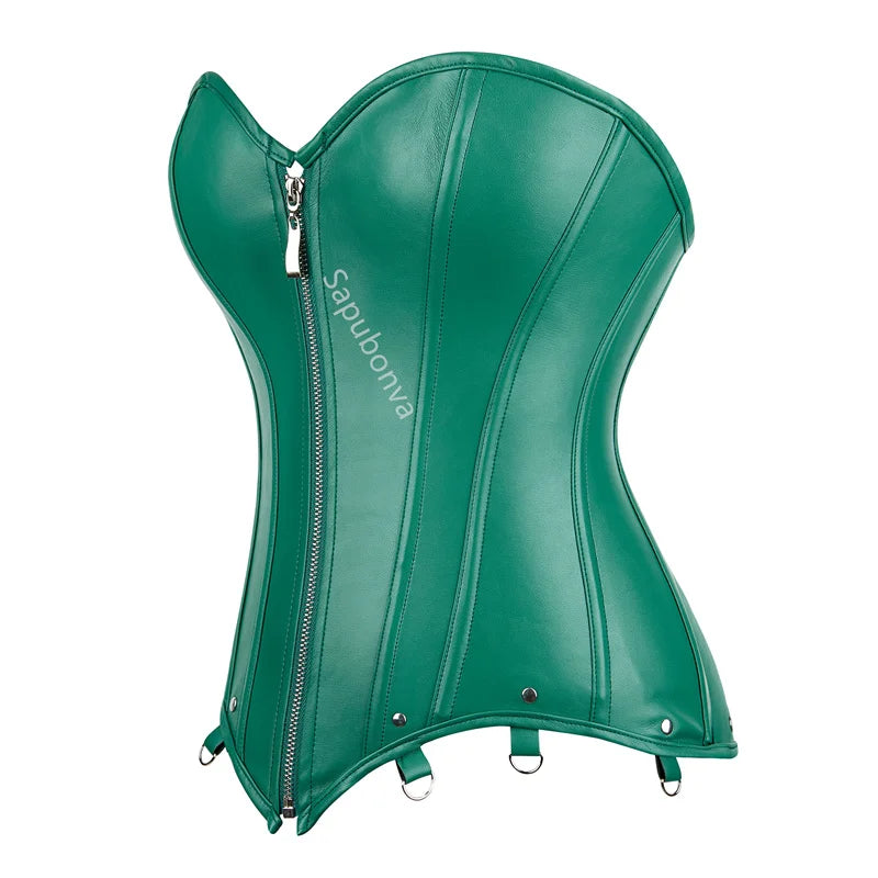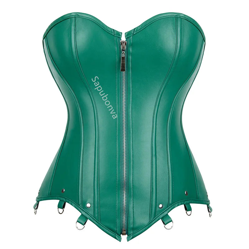 Corset Leather Zipper Plus Size Top Pirate Bustier Overbust Lingerie Burlesque Costumes Lace Up Sexy Women Black Red Green