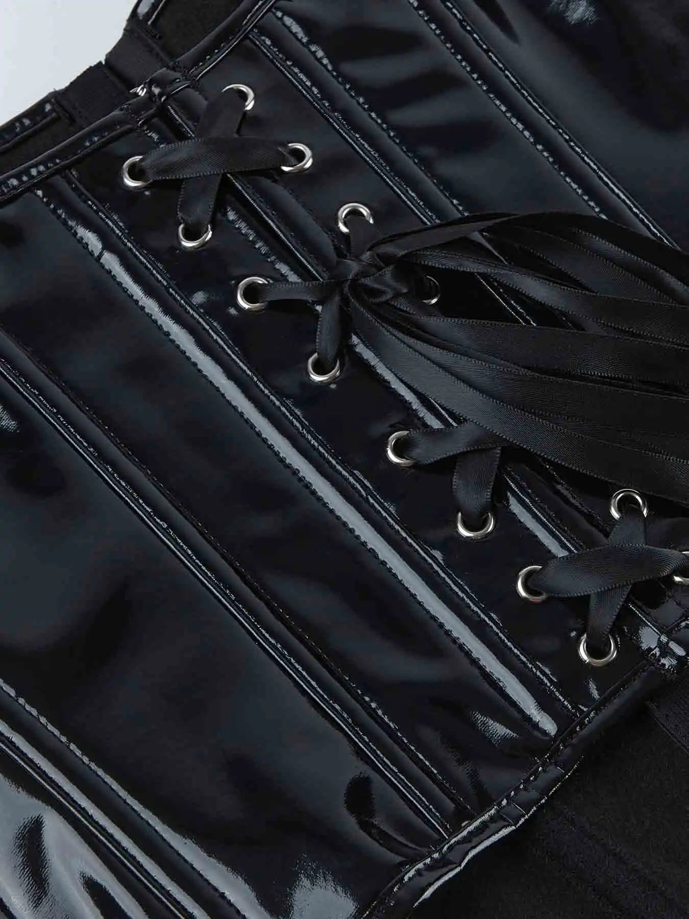 Corset with bright leather and breasted corset is fashionable and sexy. Wear a palace body-shaping coat outside the waist.