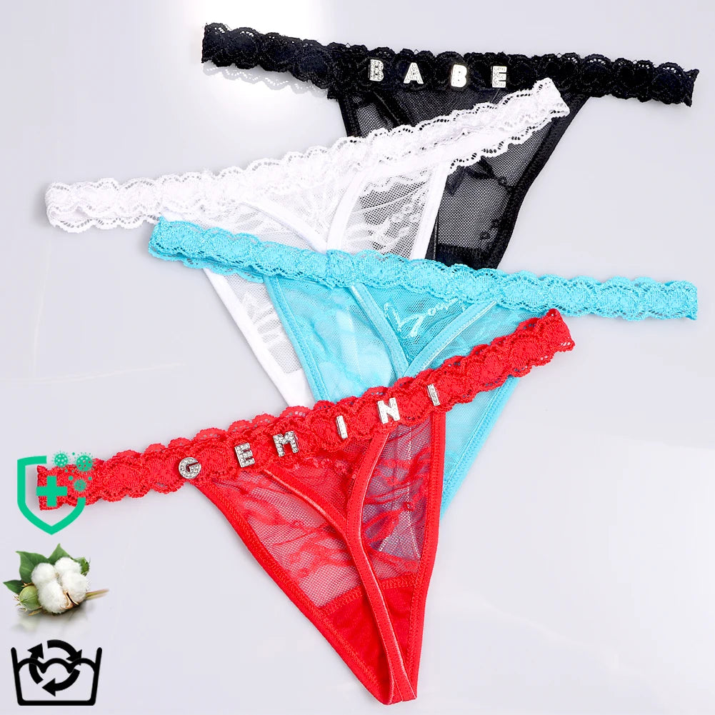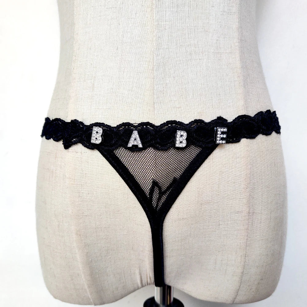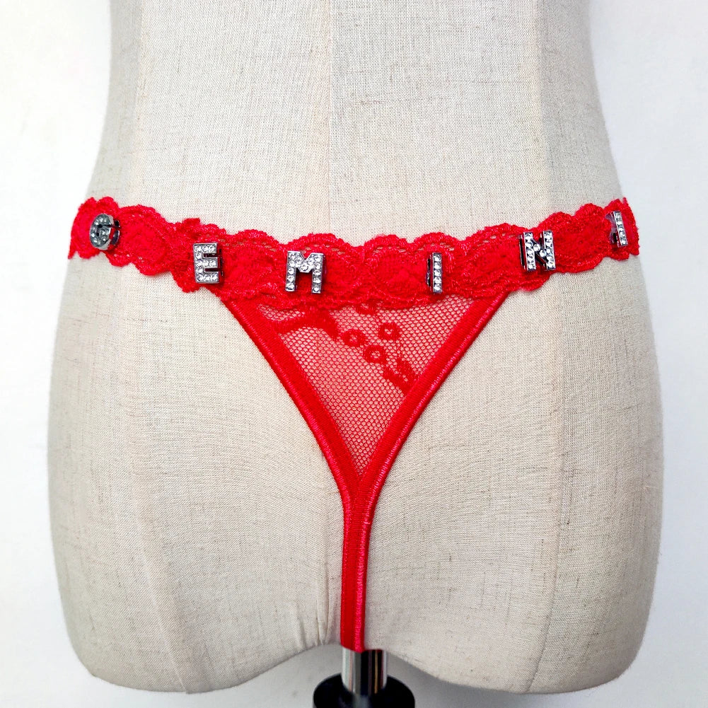 Customize Shine Crystal Name Letter Waist Chain Body Jewelry Women Sexy Lace G-String Panties Girl Valentine's Day Gift
