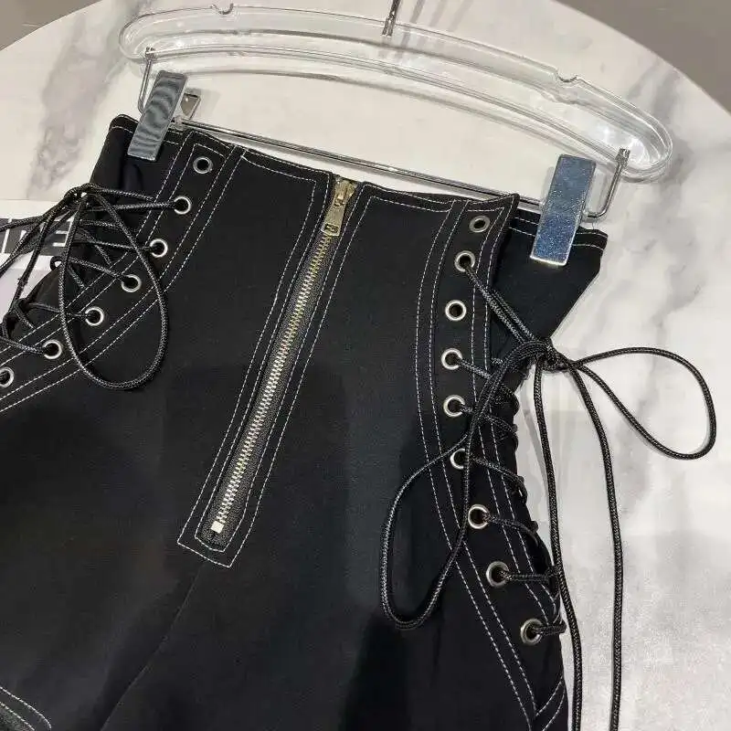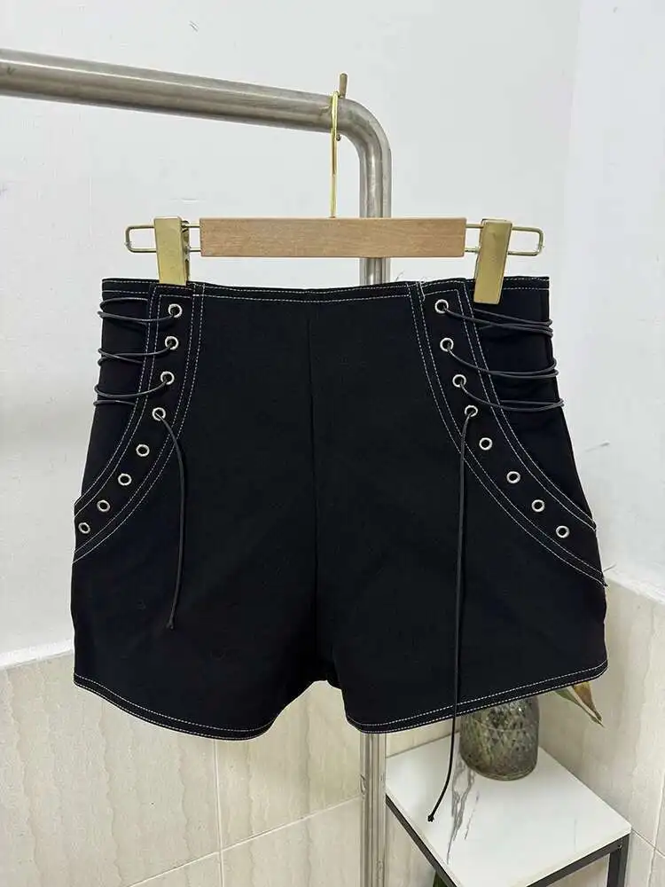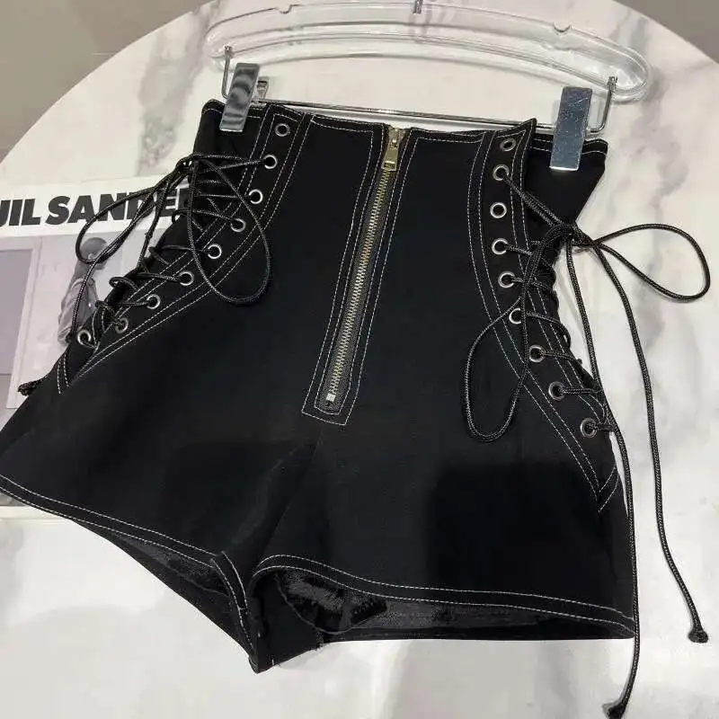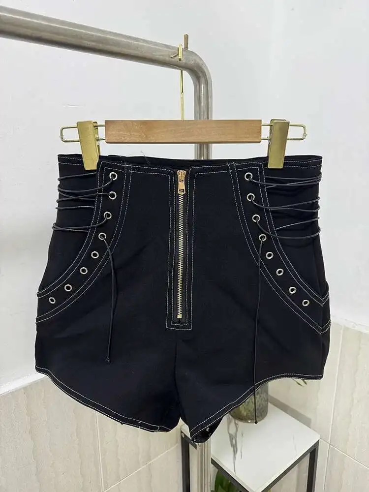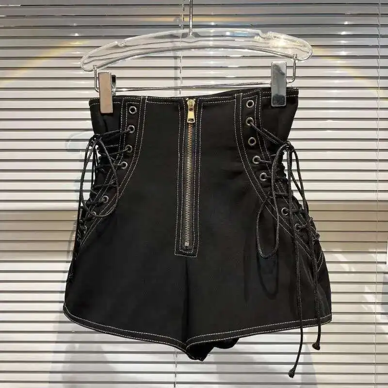 DEAT Women's Fashion High Waist Zipper Design Shorts Trendy Casual A-line Side Straps Short Pants Female Spring New 11A02658