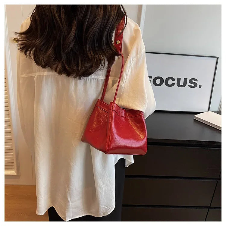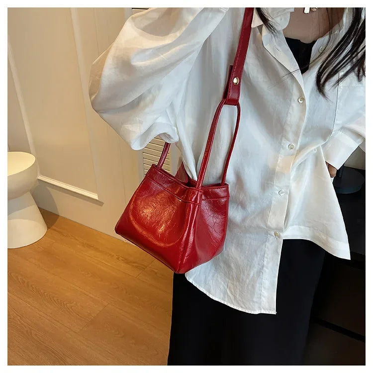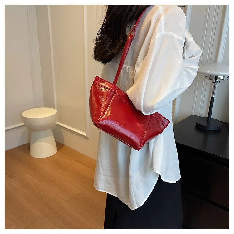 Design Sense Red Women New 2024 Fashion Texture Shoulder Bag Popular Popular Hand Tote Bags for Women Handbags Red Purse Bolsa