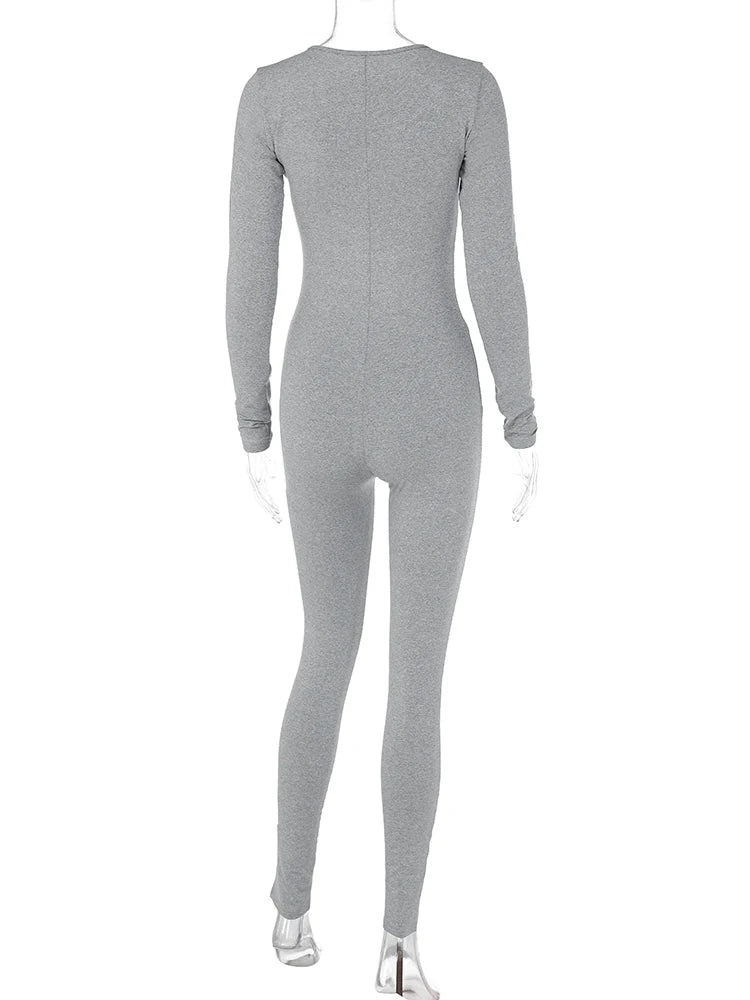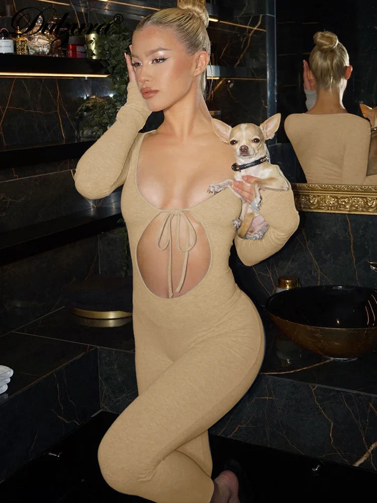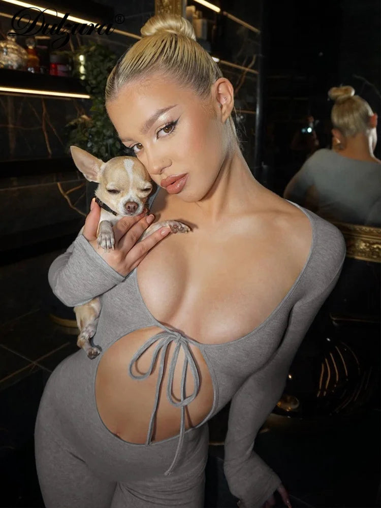 Dulzura Solid Pure Hole Hollow Out Straps Lace-Up Jumpsuit Long Sleeves 2023 Summer Autumn For Women Sexy Streetwear Wholesale