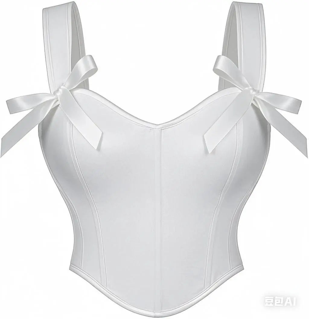 Elegant White Solid Satin Bow Strap Sexy Overbust Bridal Corset Crop Top XXL Victorian Gothic Wedding Bustier Lingerie For Women