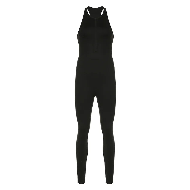 European American Sports Yoga Women's Solid Color Splicing Zipper Hollow Out Backless Tight Fitting Sleeveless Jumpsuit Pants