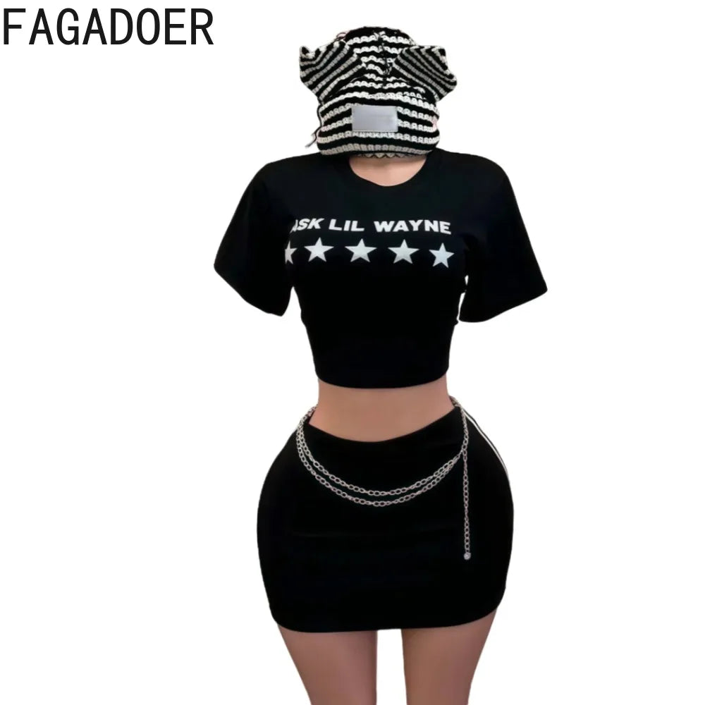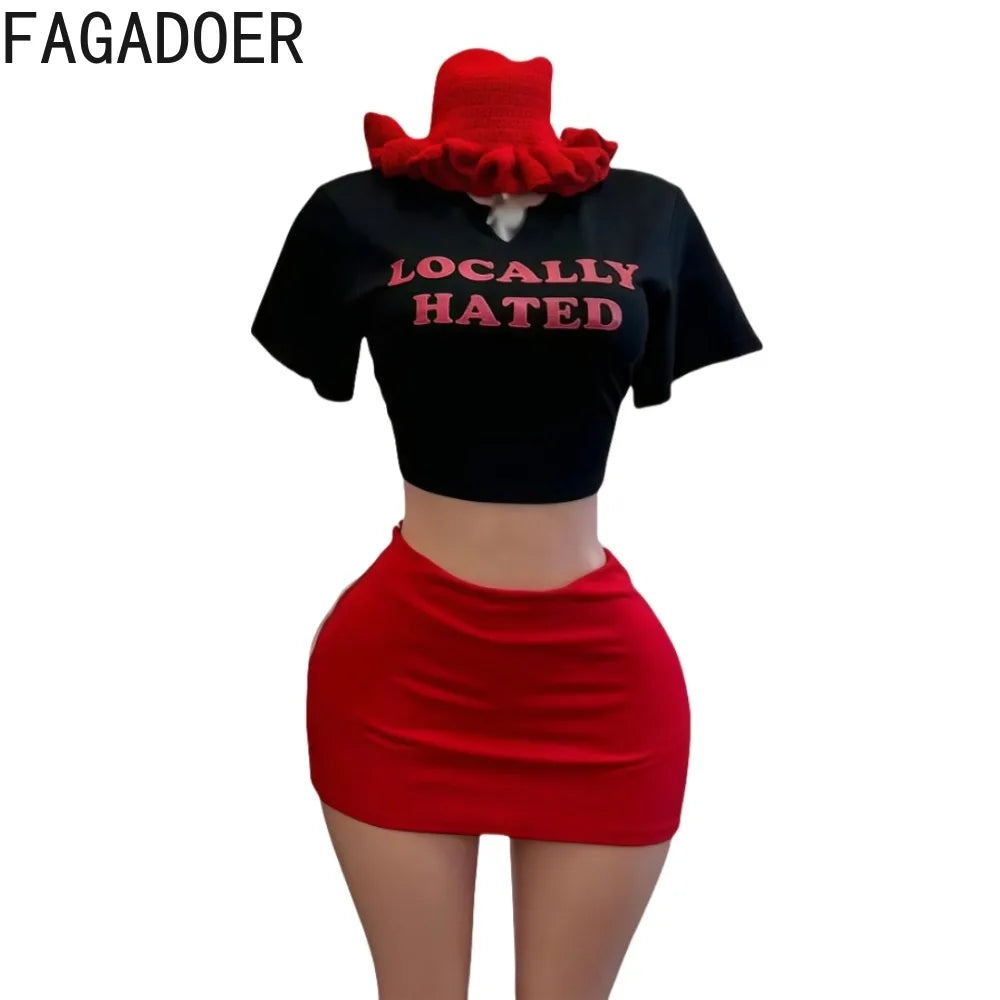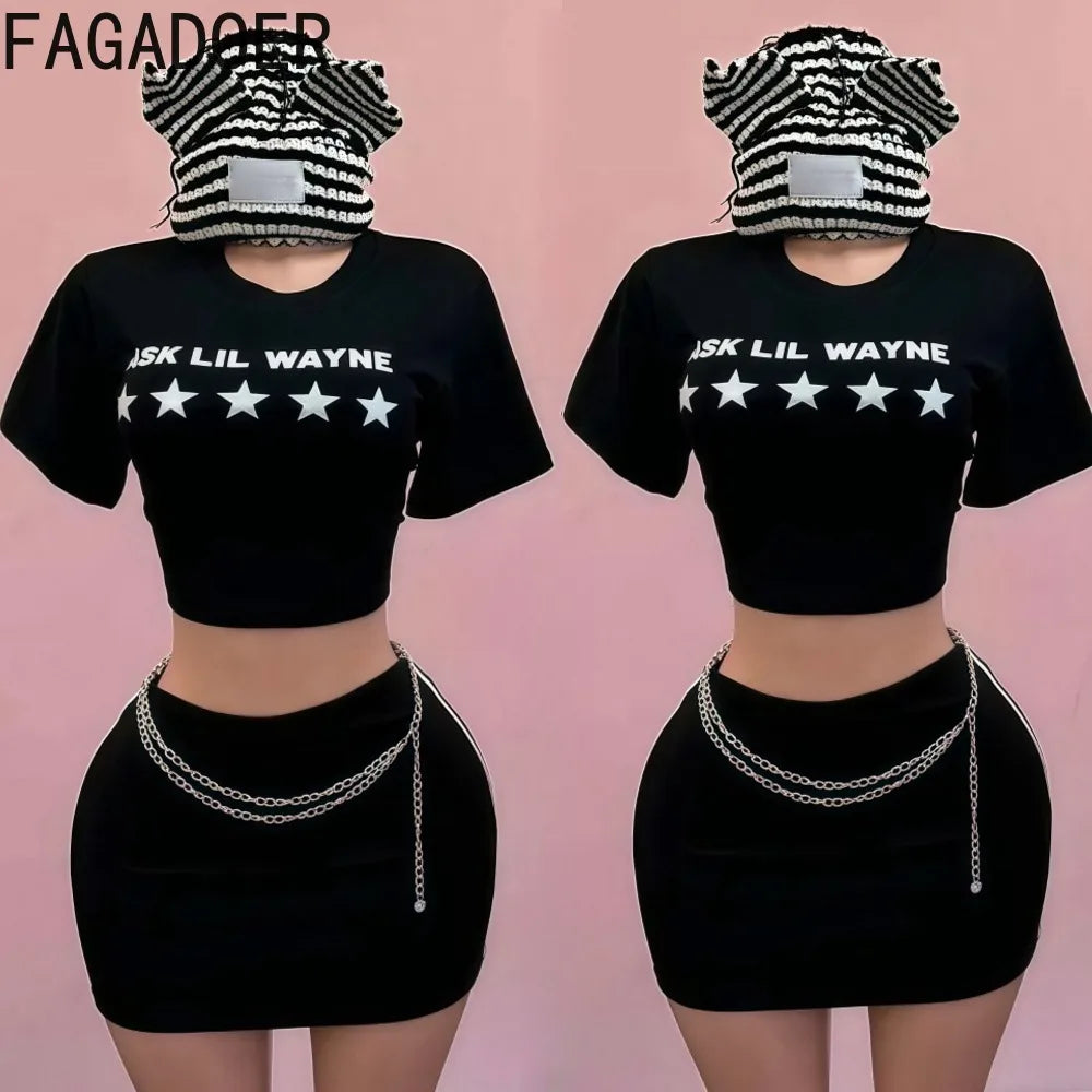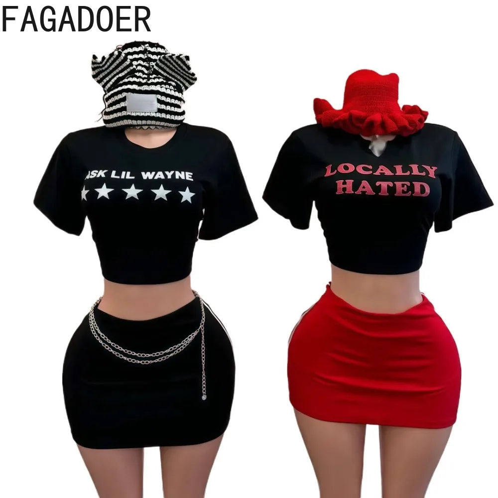 FAGADOER Sexy Women 2 Piece Set Outfit Letter Print Crop Tops + Bodycon Mini Skirts Suit Hot Girl Streetwear Clothing Spring New