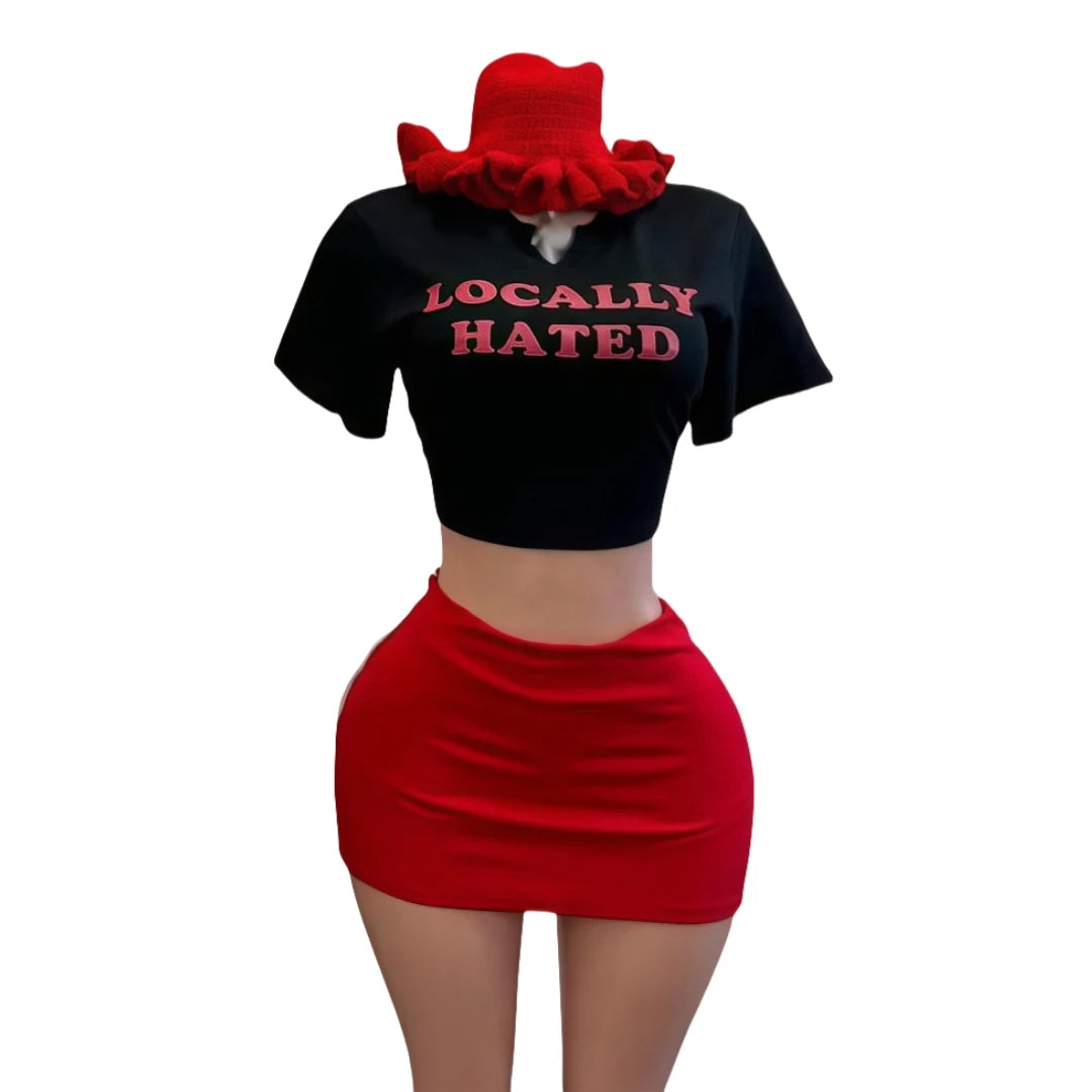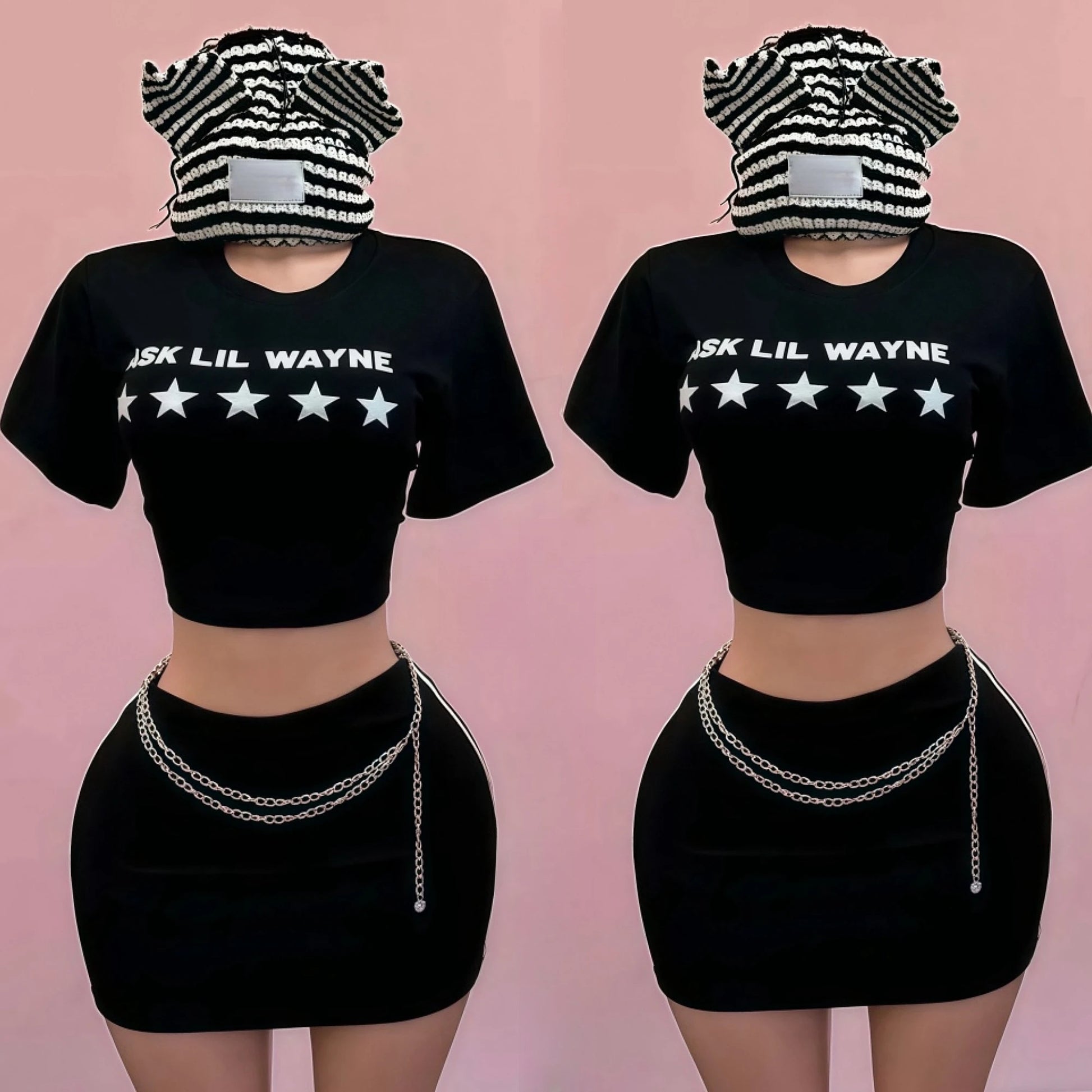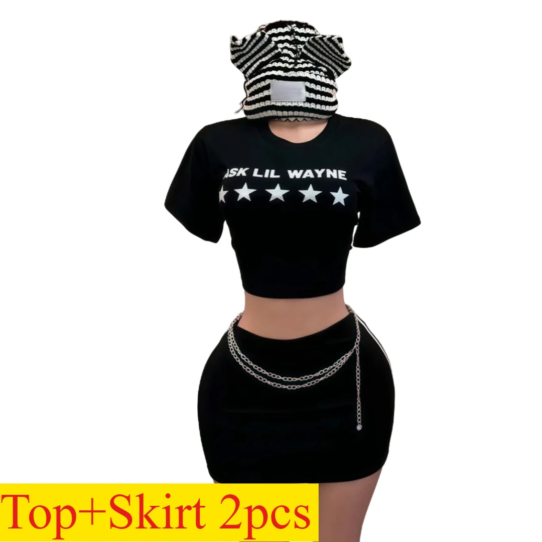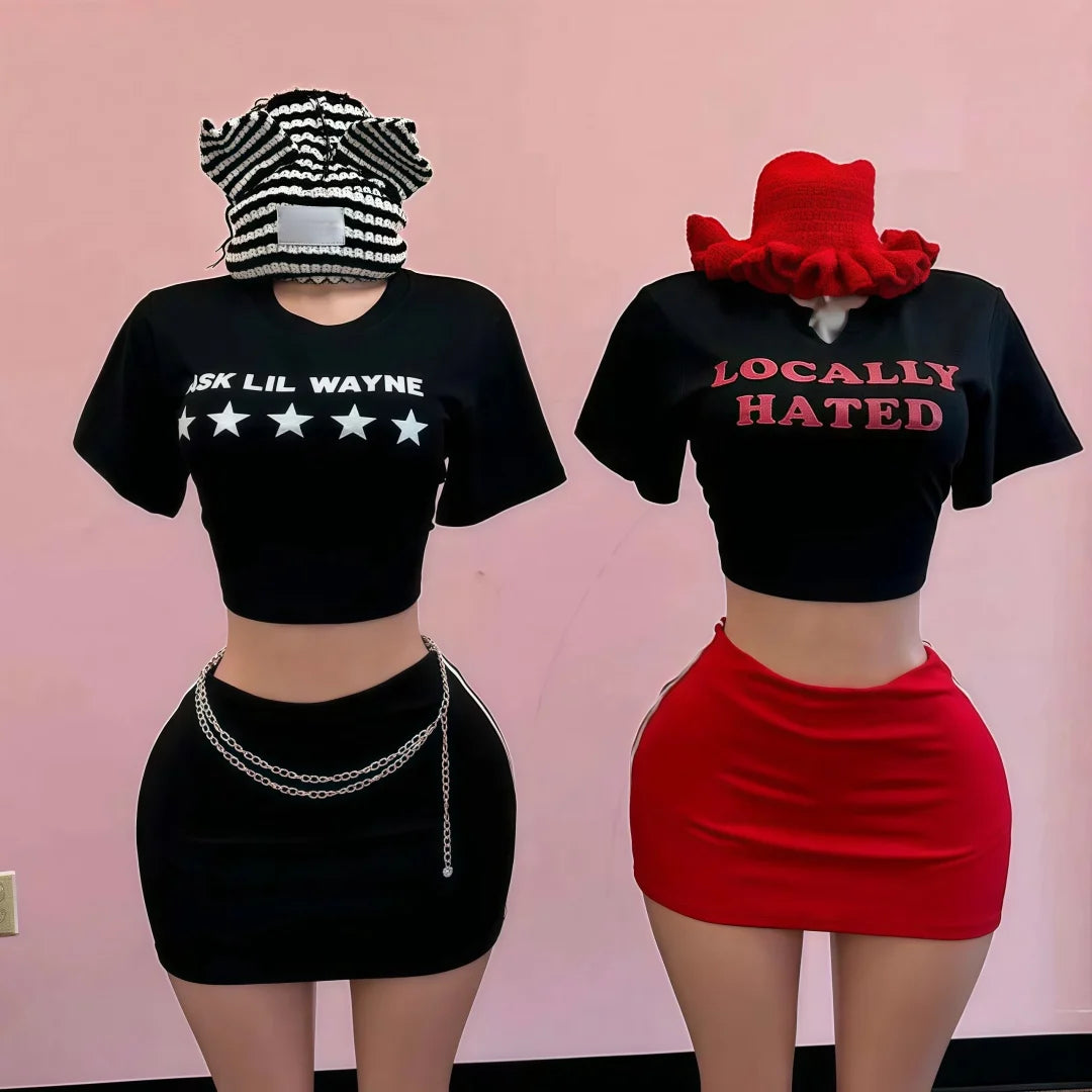 FAGADOER Sexy Women 2 Piece Set Outfit Letter Print Crop Tops + Bodycon Mini Skirts Suit Hot Girl Streetwear Clothing Spring New