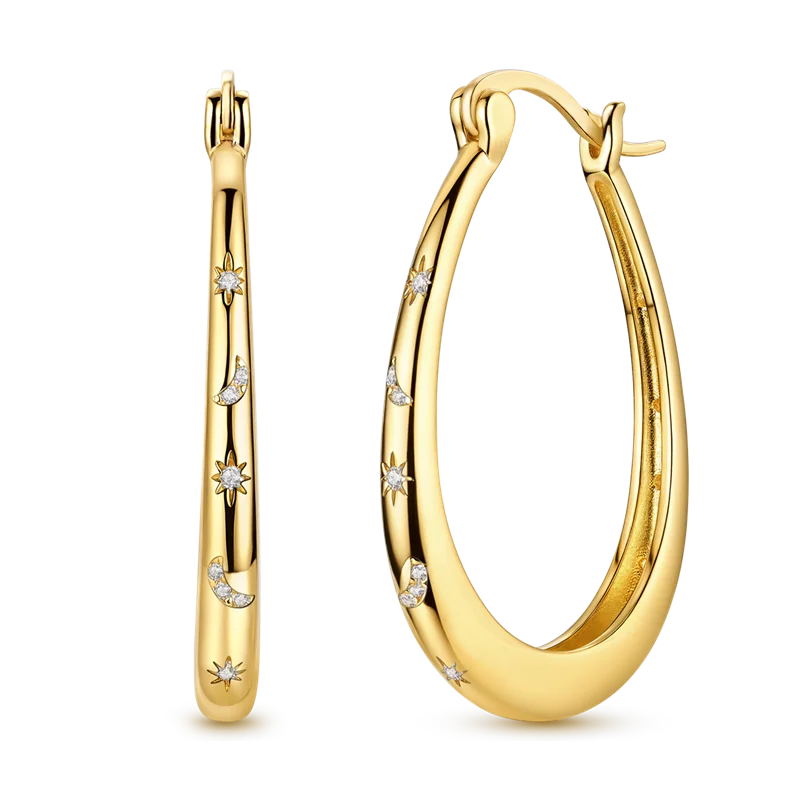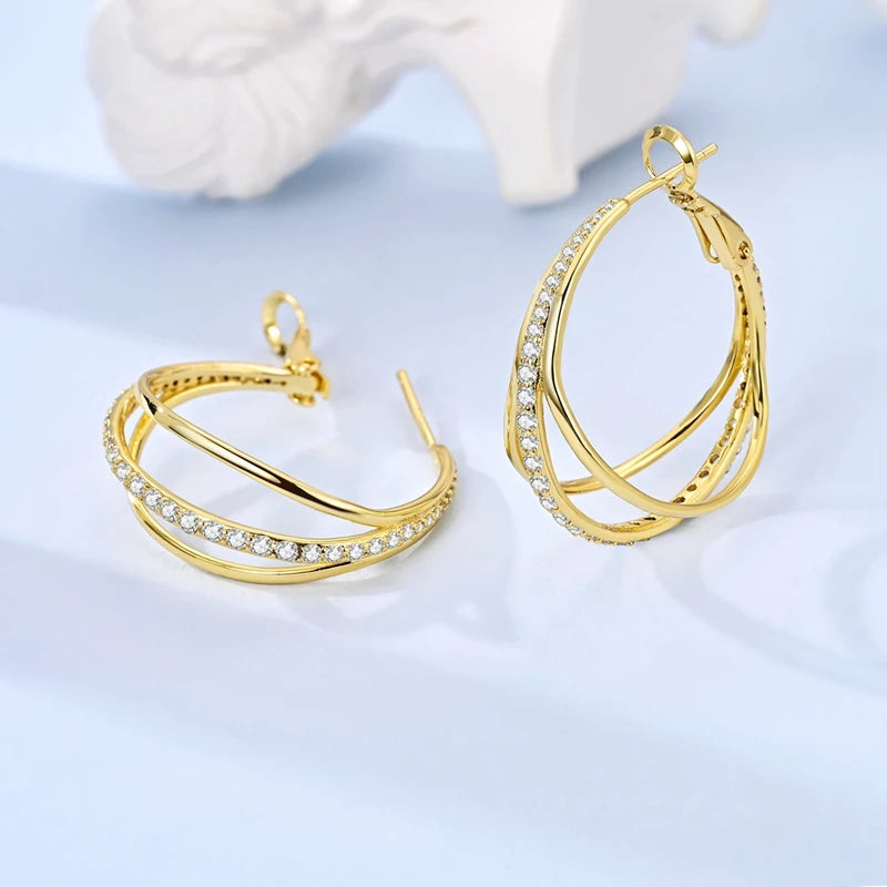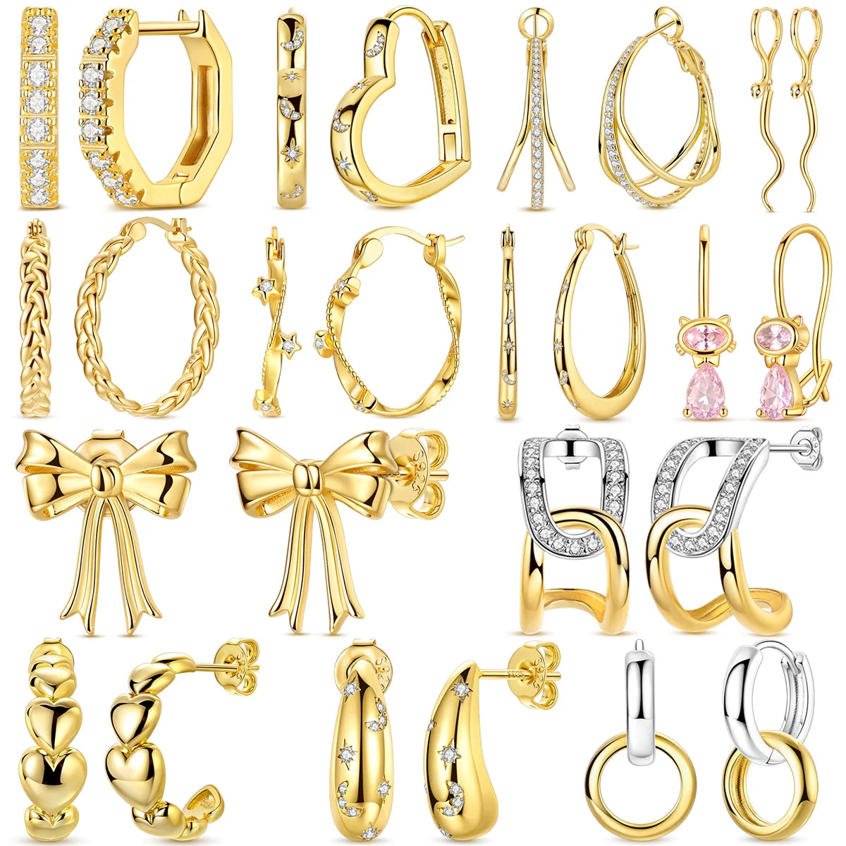 Fashion Gold ladies Hoop Earring 925 Sterling Silver Sparkling Zircon Round Ear Stud Earrings Fine Jewelry Lover Anniversary Gift