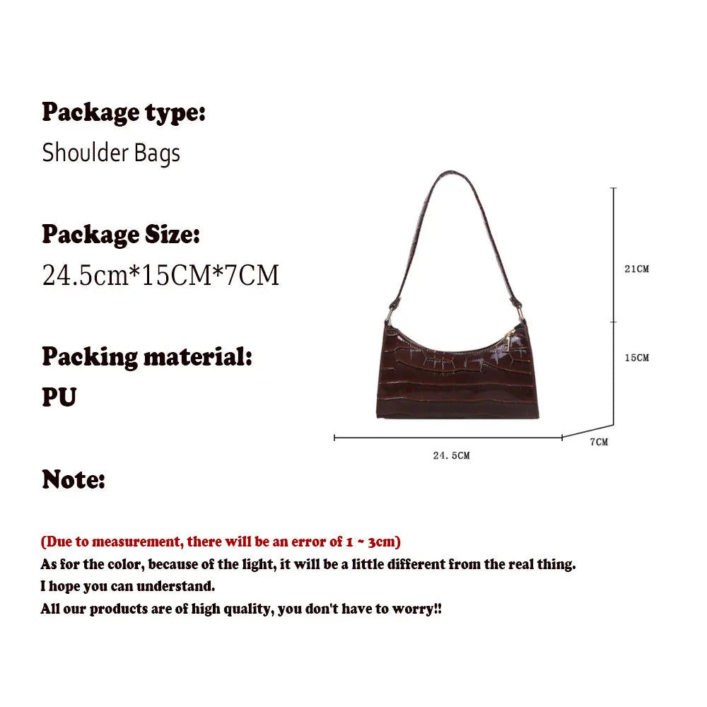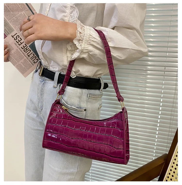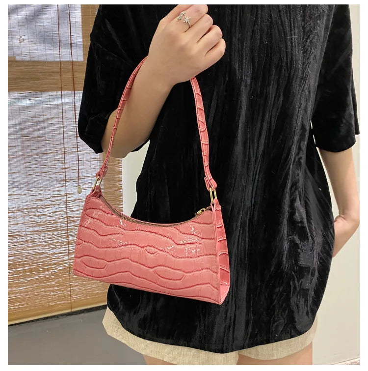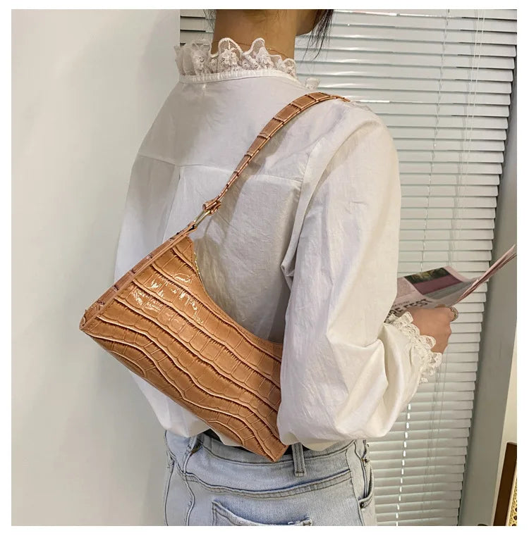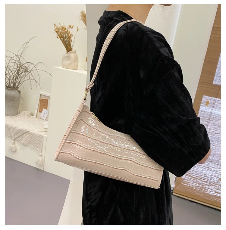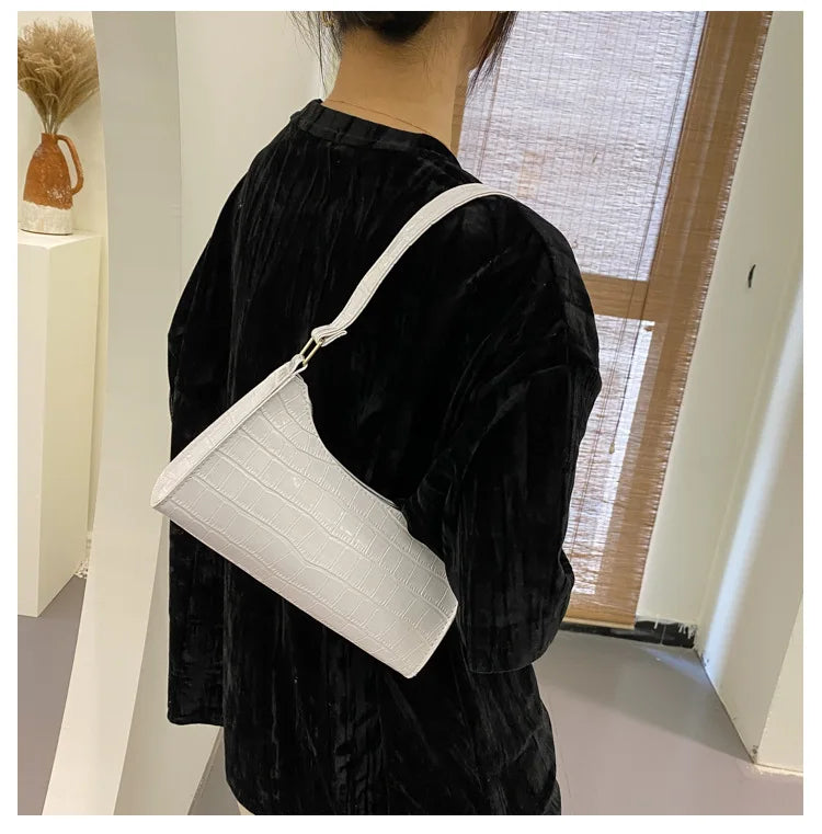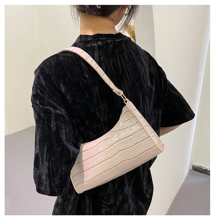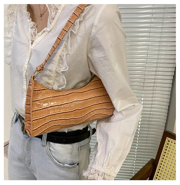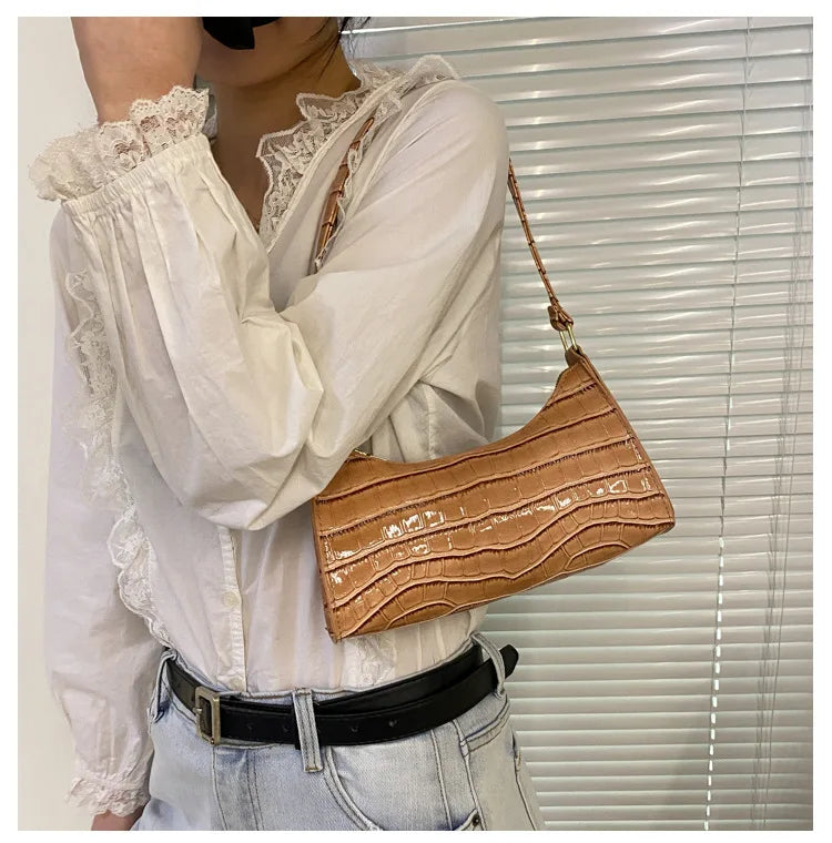 Fashion PU Leather Bags for Women Alligator Pattern Armpit Handbag Female Small Underarm Messenger Bag Purse Shoulder Handbags