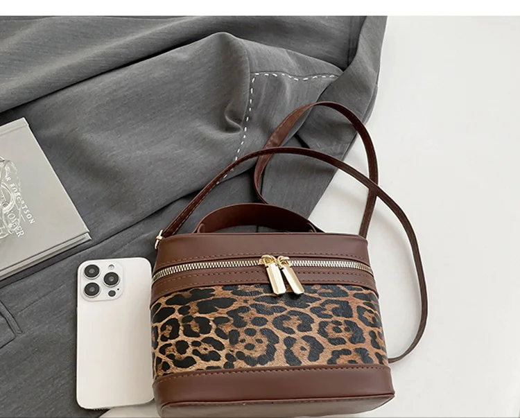 Fashion Round Bucket Bags For Women's Daily Used, Leopard Pattern Crossbody Shoulder Bag For Commuting, Casual Ladies Handbags
