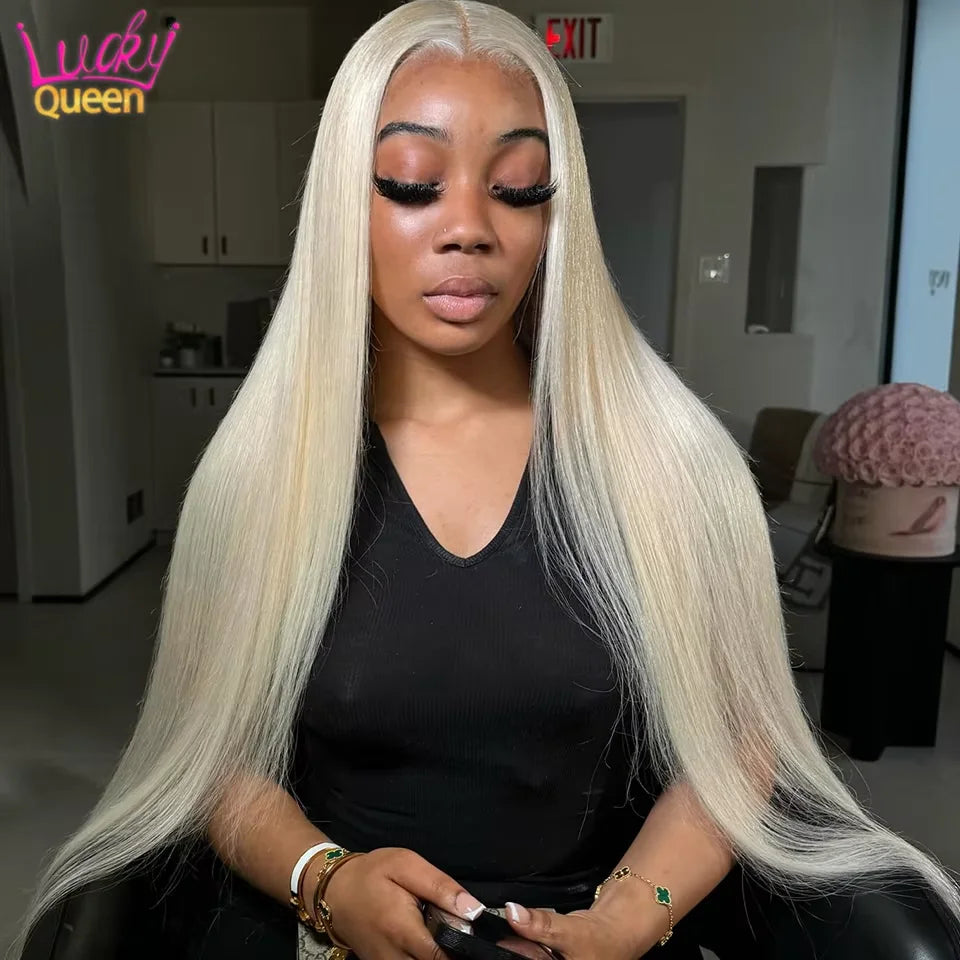Fluorescent Green Bright 13x6 Frontal 613 Colorful Straight Human Hair Wigs For Women 180 Density Pre Plucked Transparent Lace