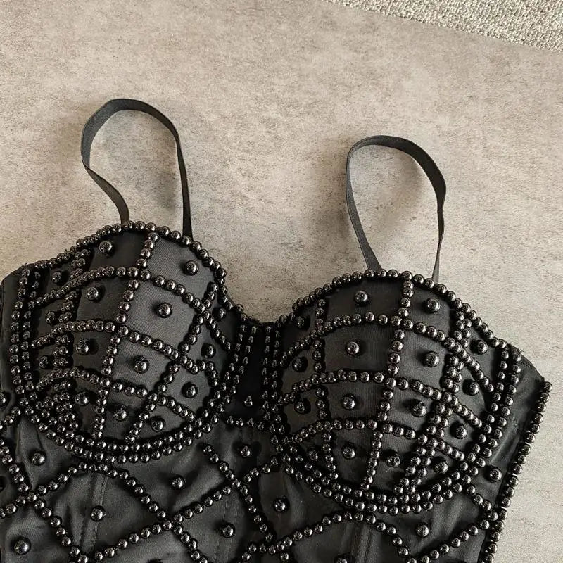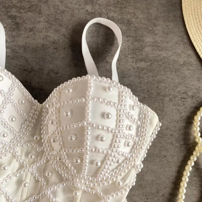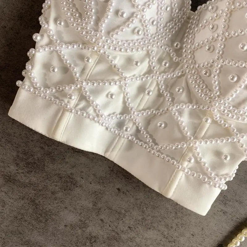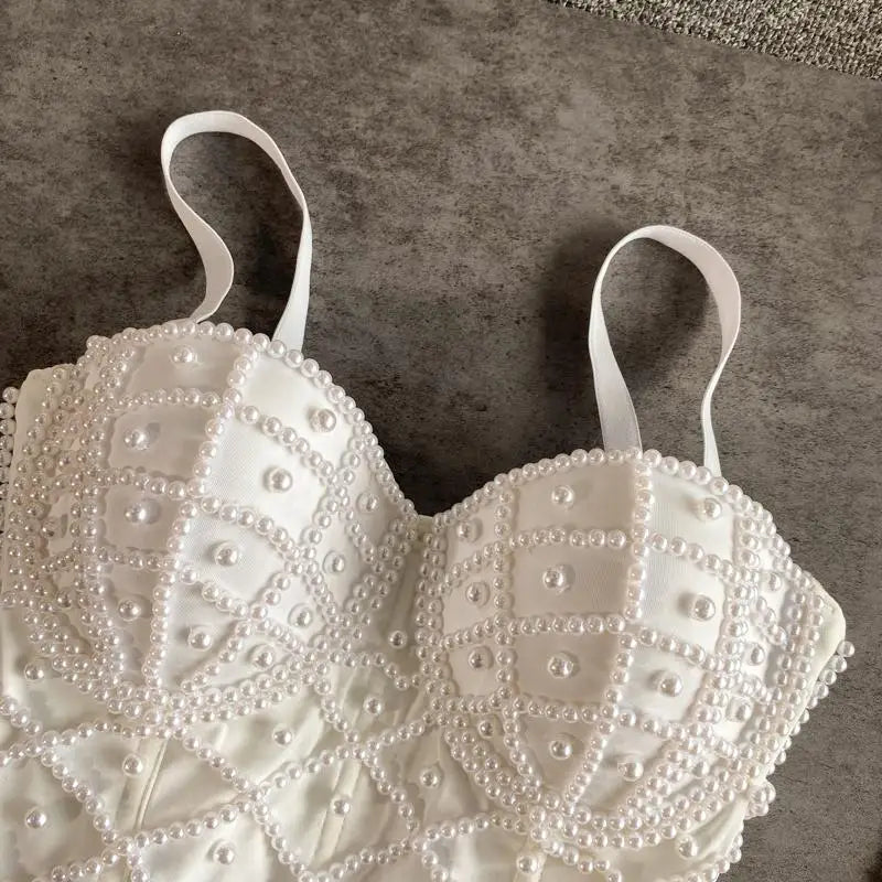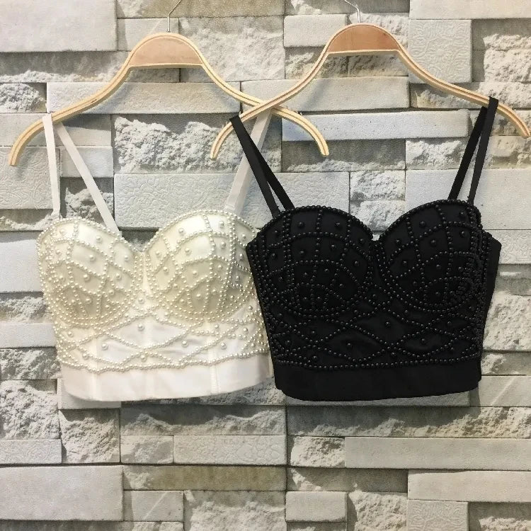 Full Beads Female Corset Top Women Camis Nightclub Pearls Short Chest Binder Sexy Camisole Mujer Lingerie Tube Bra Debardeur
