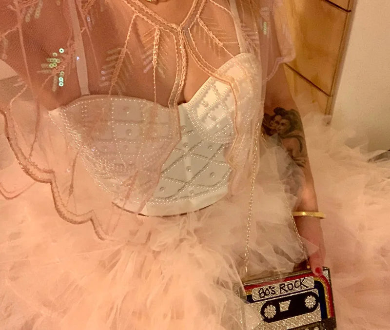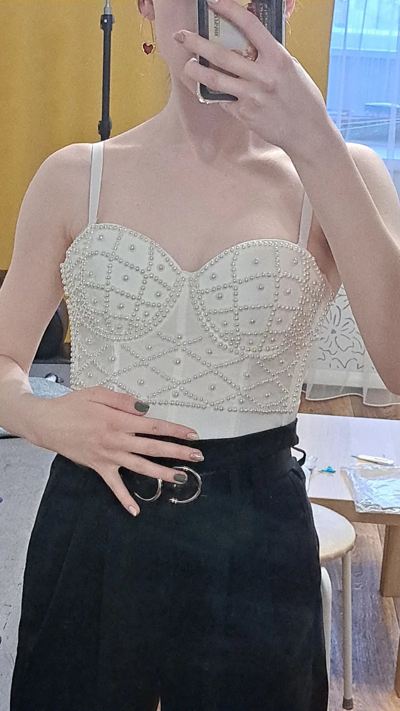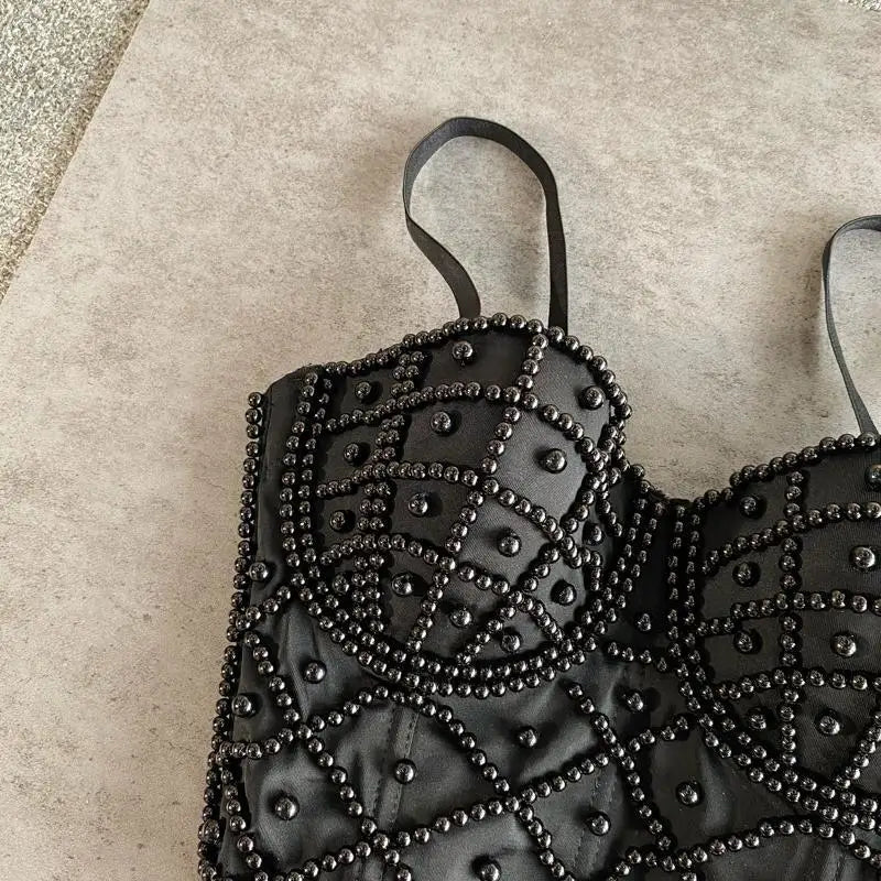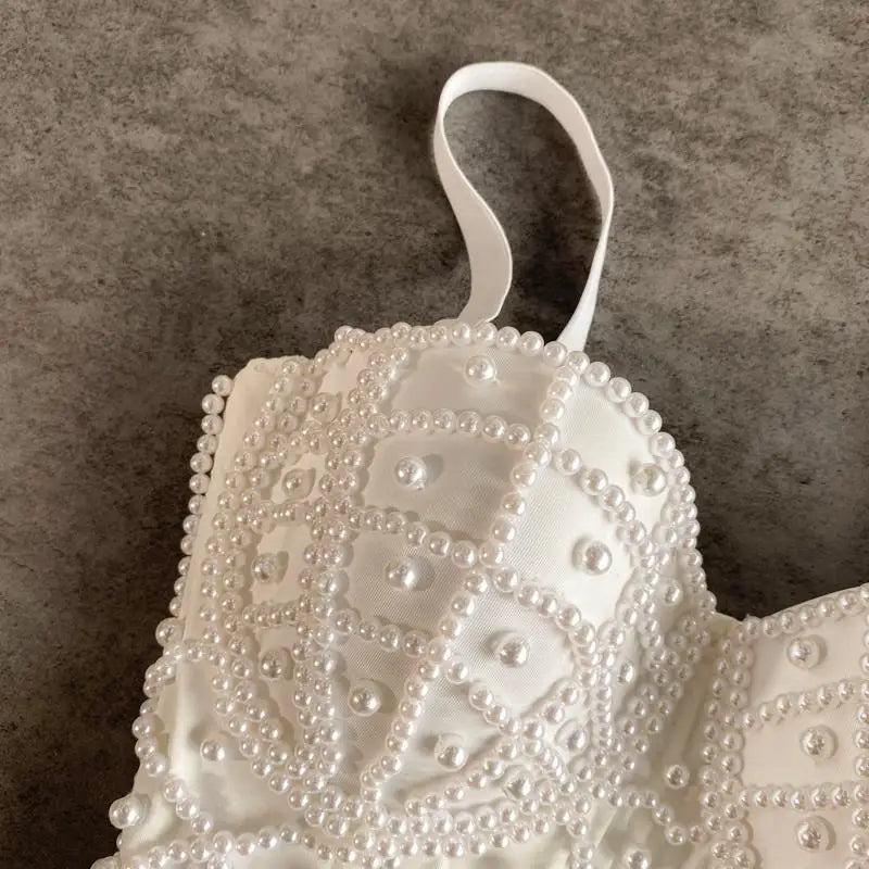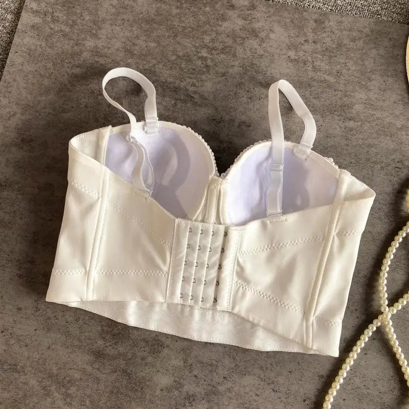 Full Beads Female Corset Top Women Camis Nightclub Pearls Short Chest Binder Sexy Camisole Mujer Lingerie Tube Bra Debardeur