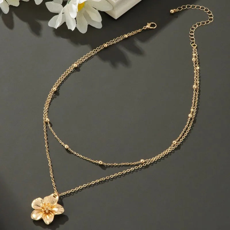 Golden Dopamine Style Flower Pendant Necklace for Women 2025 New Trend Wrinkled Choker Wedding Gifts Accessories