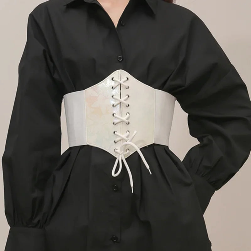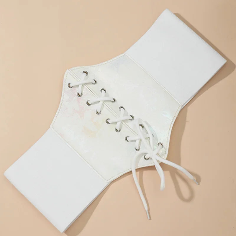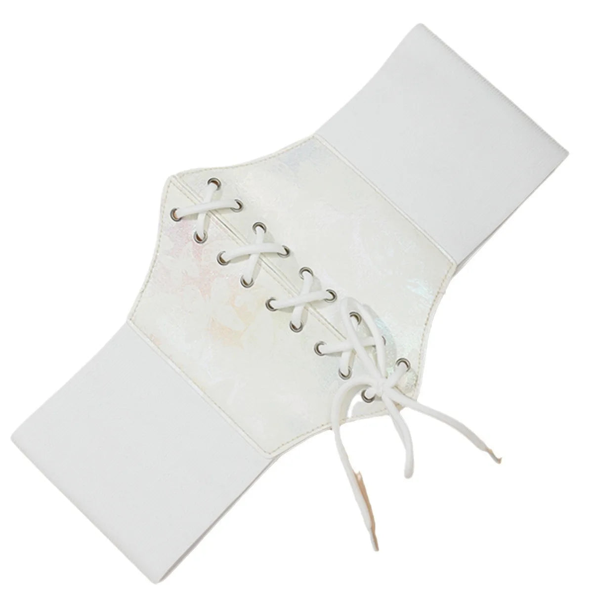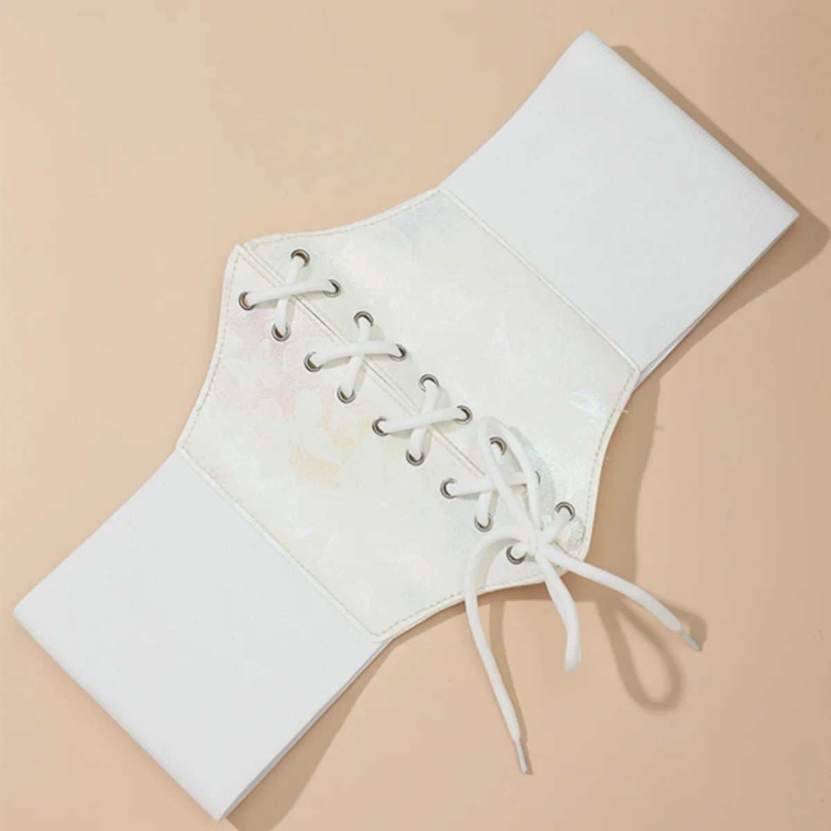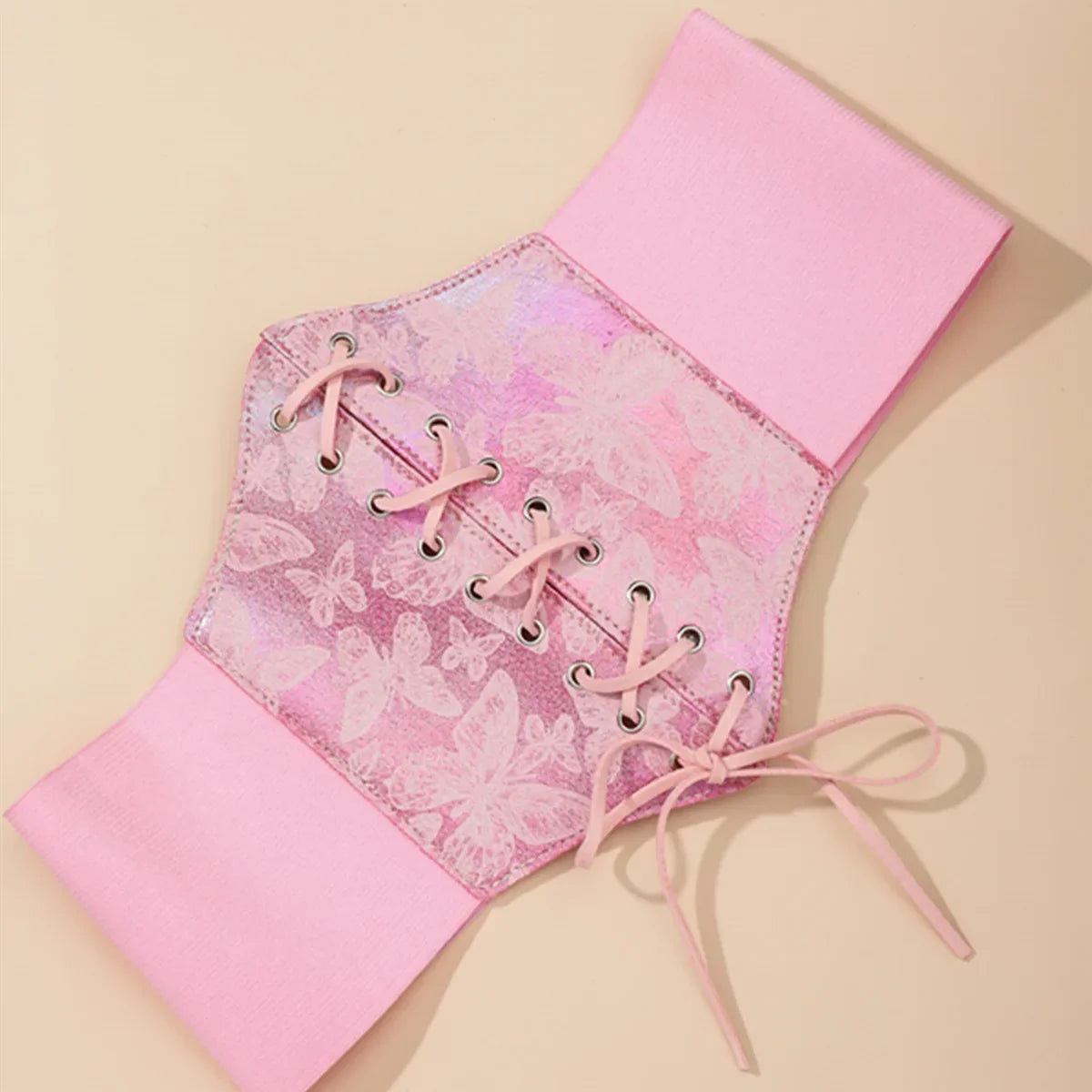 Gothic Wide Elastic Underbust Butterfly Printed Corsets for Women PU Leather White Pink Gorset Belt Top Waist Trainer Y2k Belt